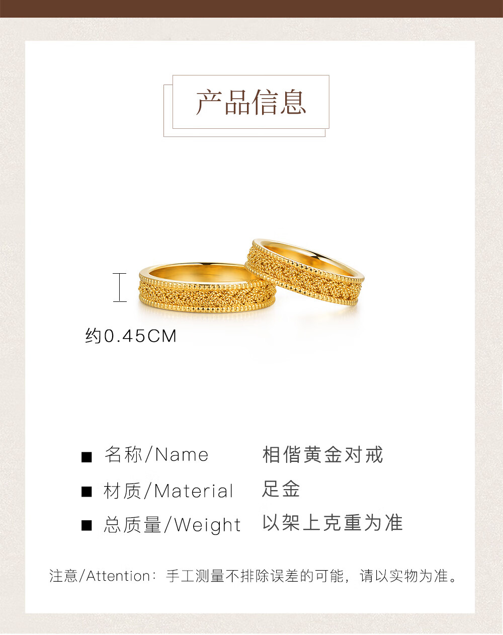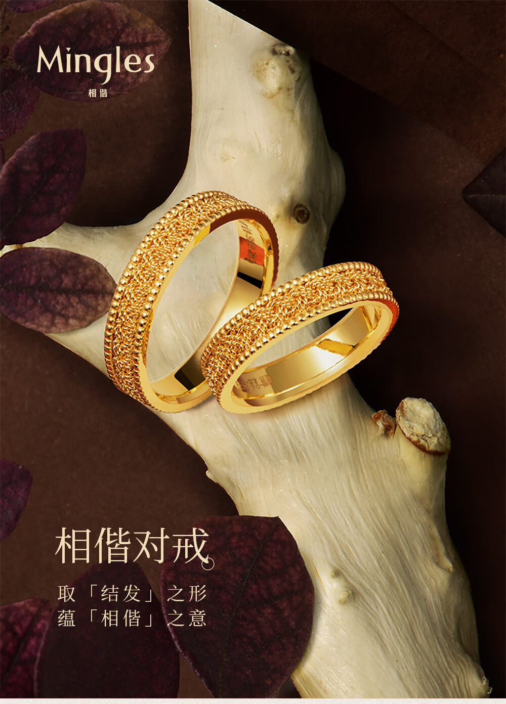 Ming brand jewelry gold ring pure gold Mingles braided couple ring gift for men and women AFM0117 labor cost 450 pure gold ring No. 10, about 6.57 grams