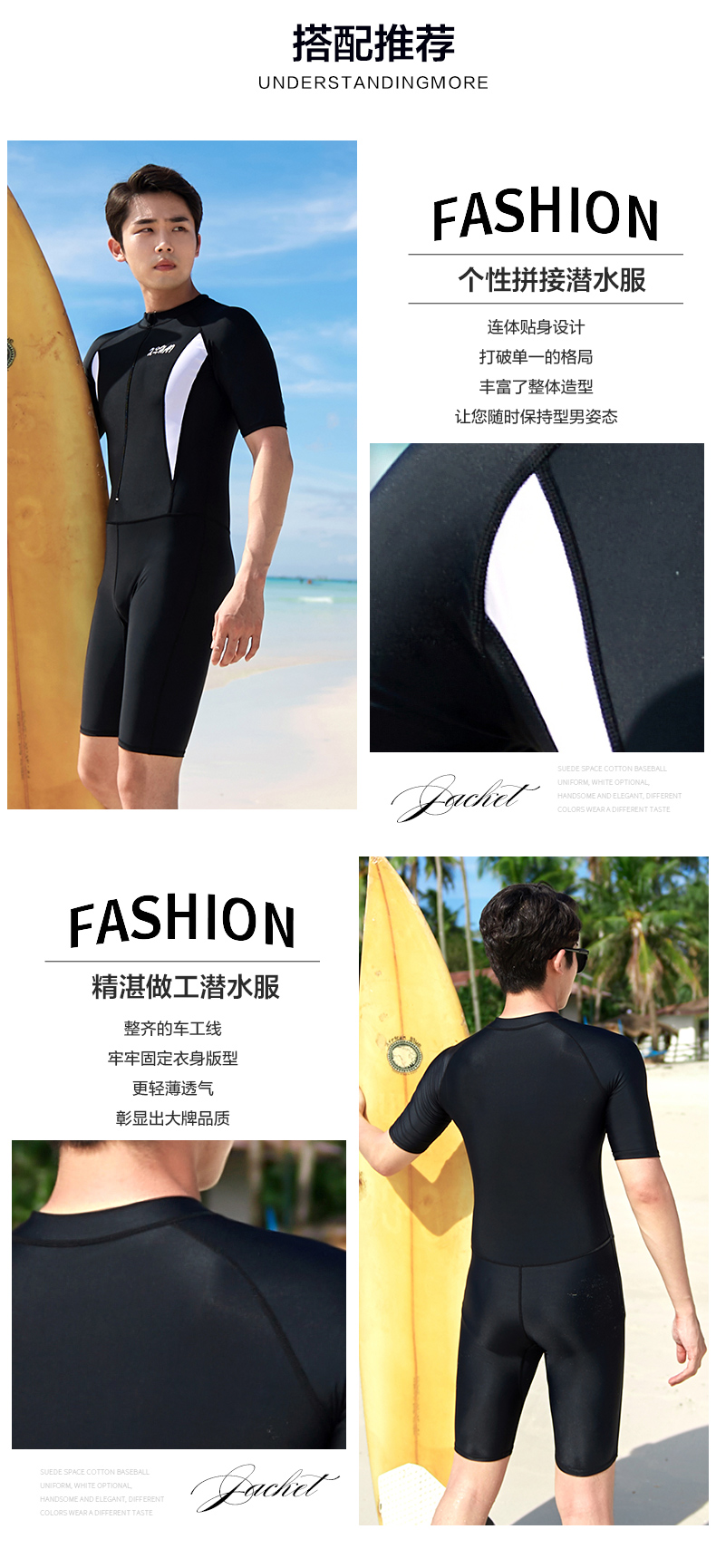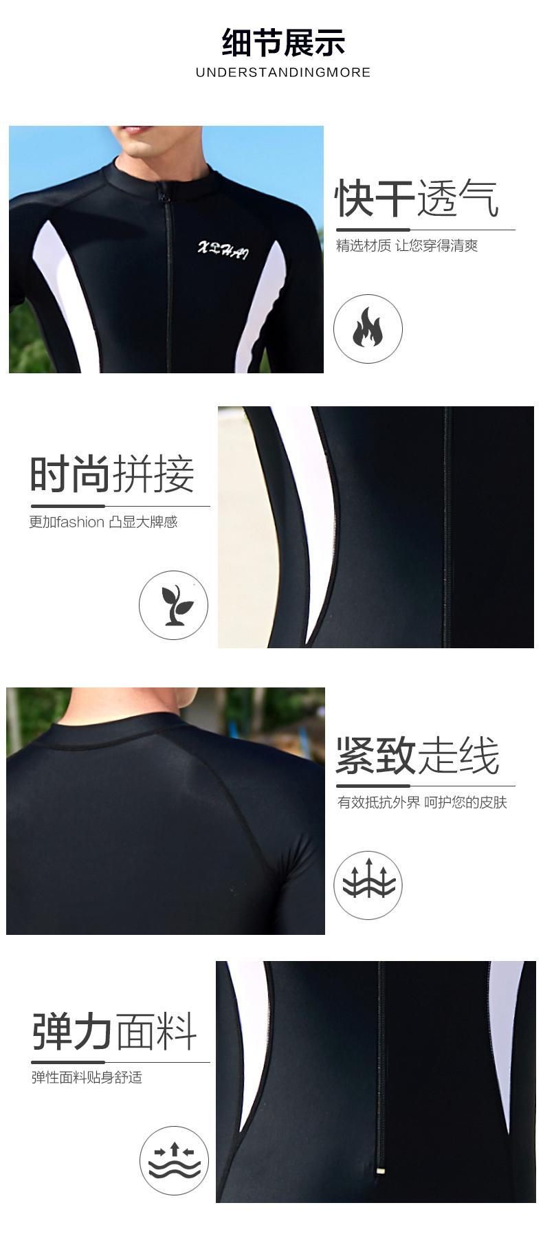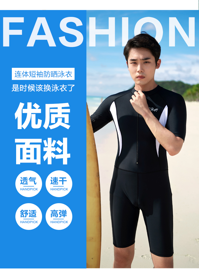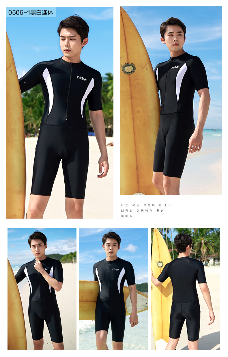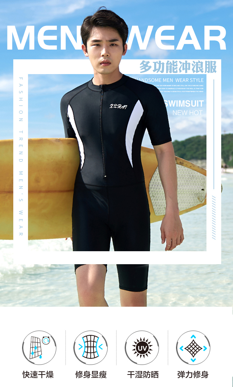 Xuanhai one-piece swimsuit men's full body sun protection quick-drying snorkeling surfing wetsuit large size men's swimsuit suit jellyfish suit black one-piece short-sleeved mid-pants XL