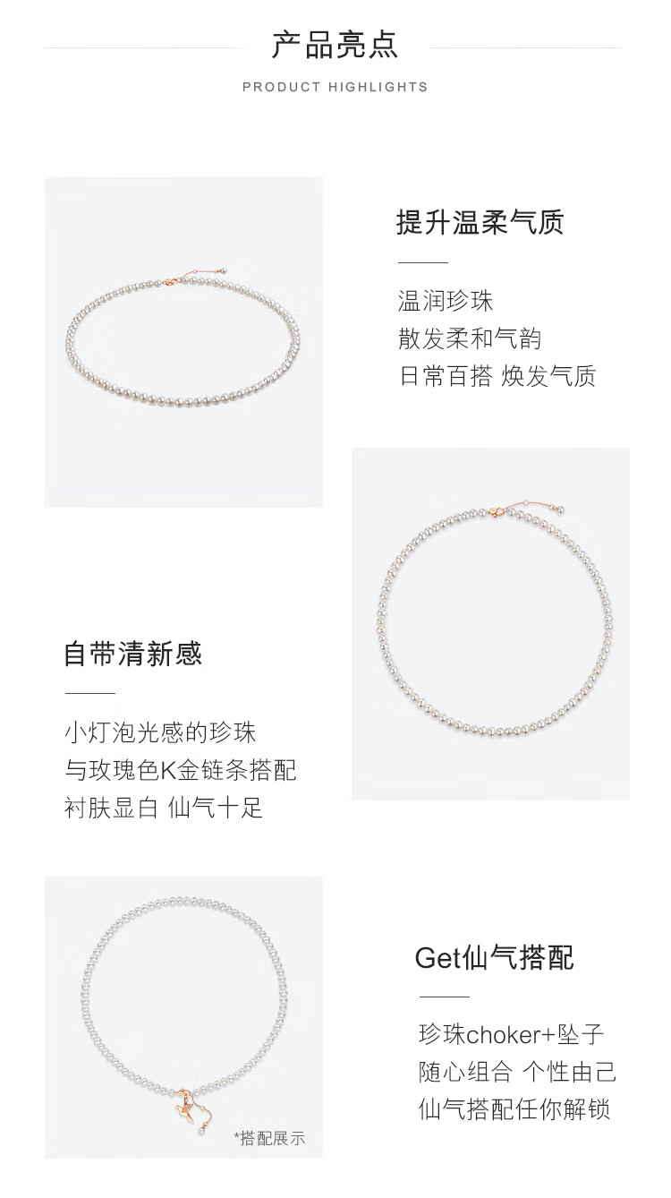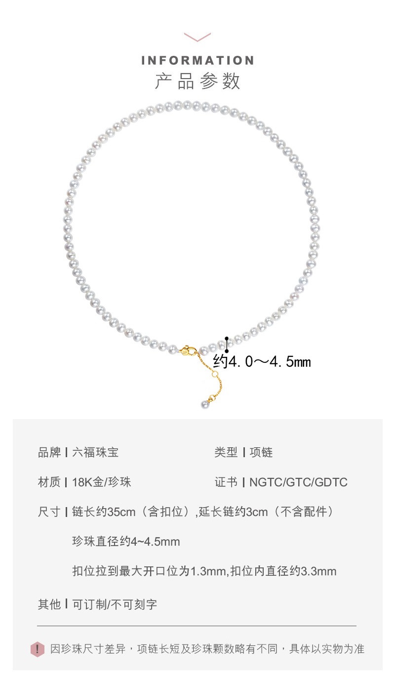 Lukfook Jewelry 18K gold mipearl series freshwater pearl necklace F87KNTB003R total weight 9.52g yellow special buckle