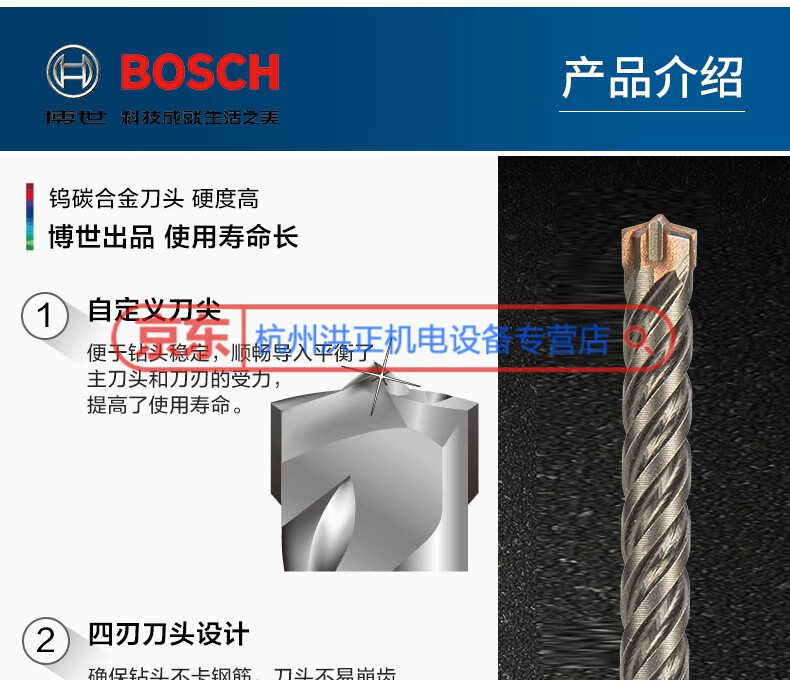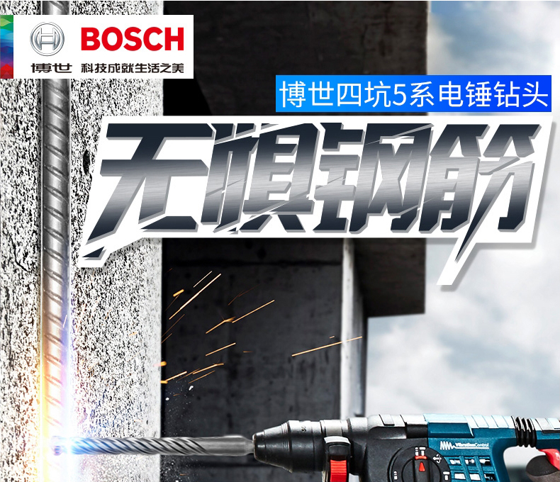 Bosch (BOSCH) four-pit electric hammer 5 series four-edged drill bit round shank impact drill bit can drill reinforced wall concrete round shank 5X50X110MM