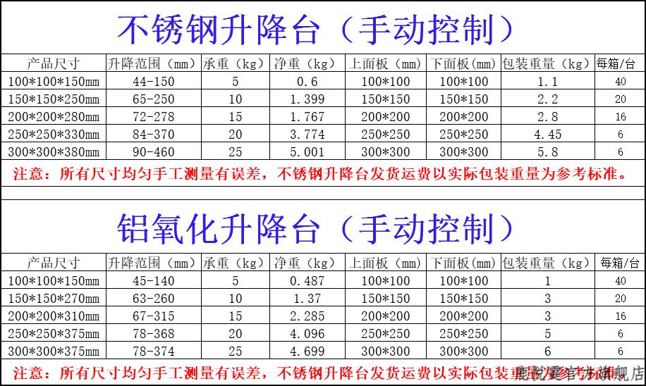 Lu Yueting small stainless steel lifting table laboratory manual lifting table micro lifting small platform manual lifting platform aluminum oxidation 200*200