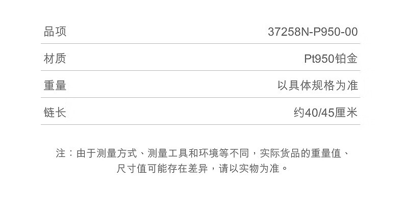 Chow Sang Sang Pt950 Platinum Necklace Versatile White Gold Necklace Plain Chain Clavicle Chain 37258N Price 45cm - 6.34g (including labor cost 480 yuan)