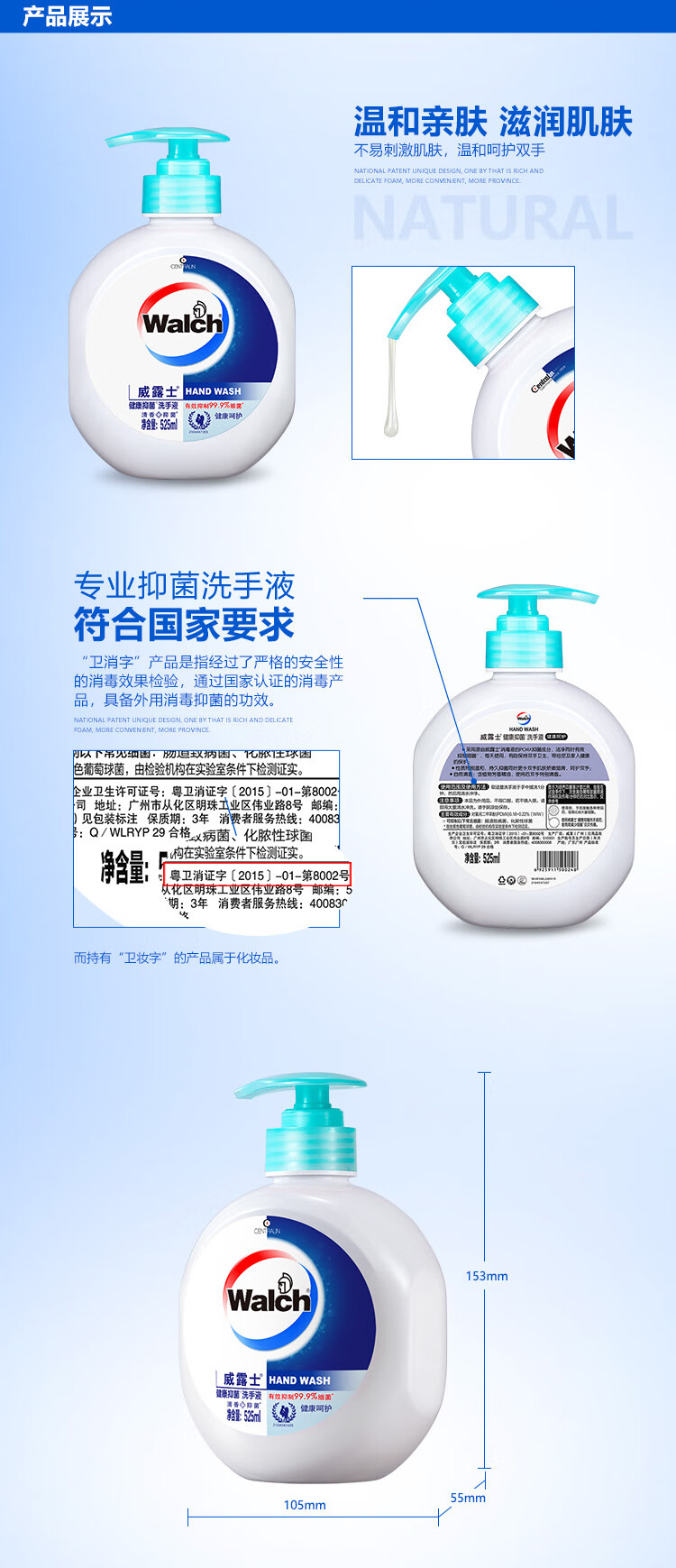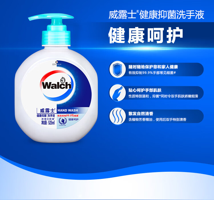 Walch Healthy Cleansing Antibacterial Hand Sanitizer 525ml Effectively inhibits 99.9% of bacteria. Universal for babies, children and adults. Protects and moisturizes.