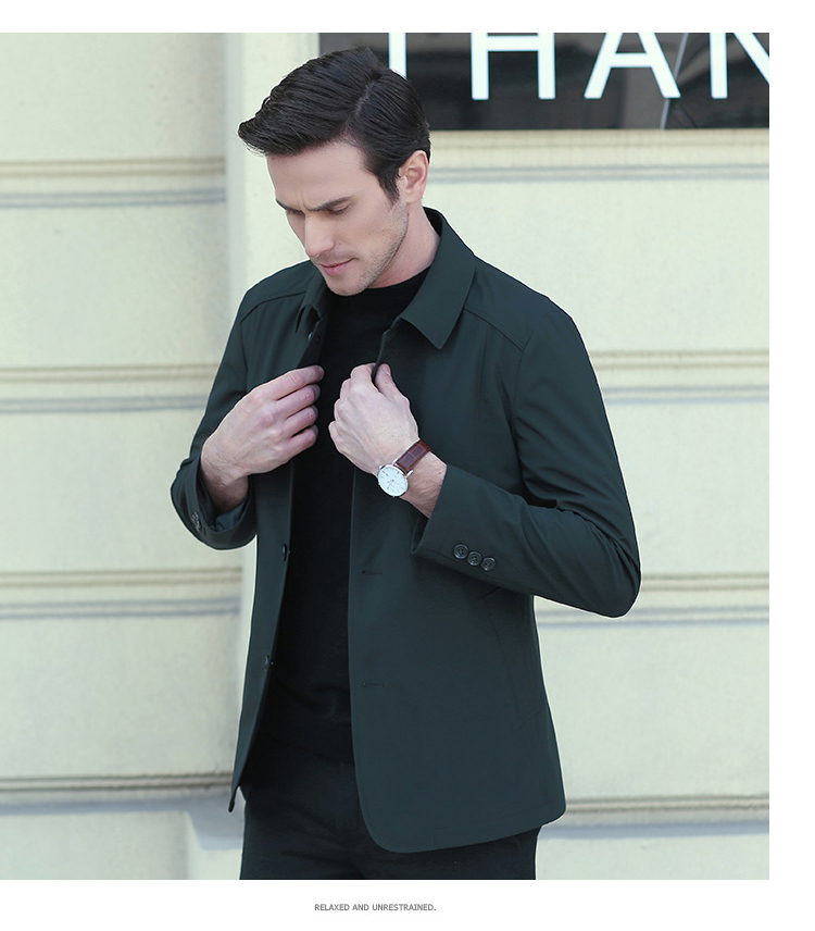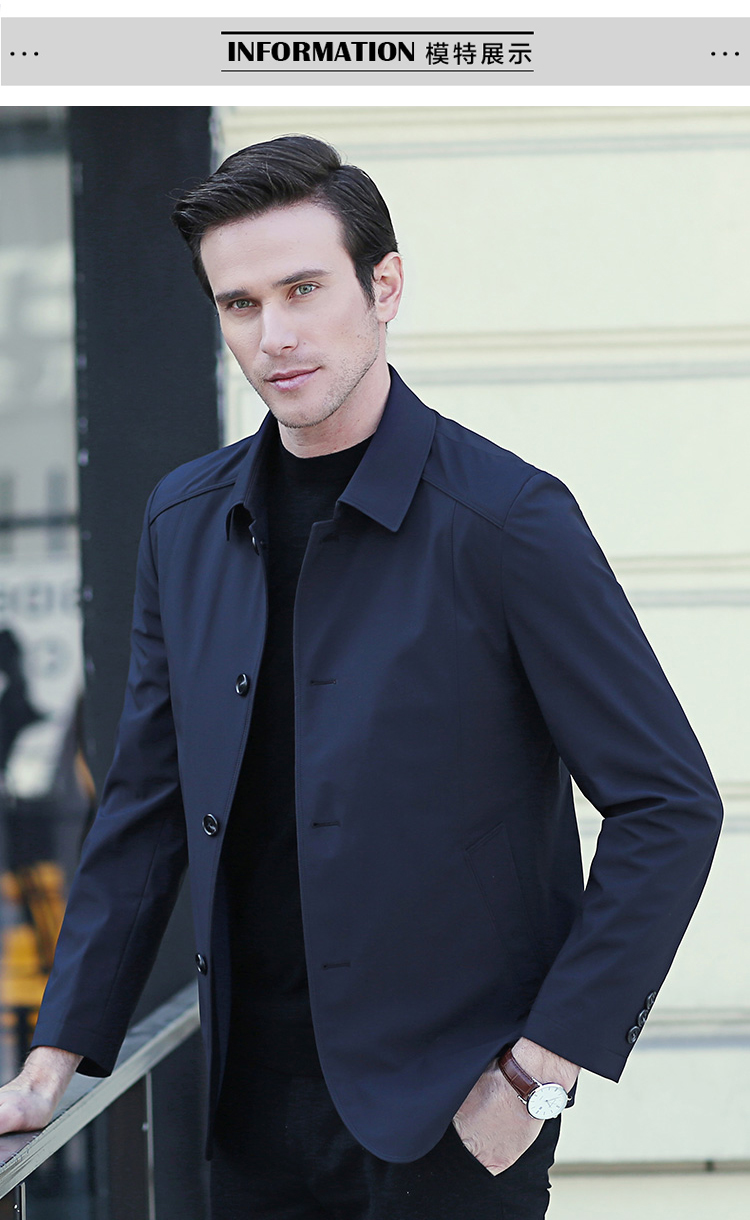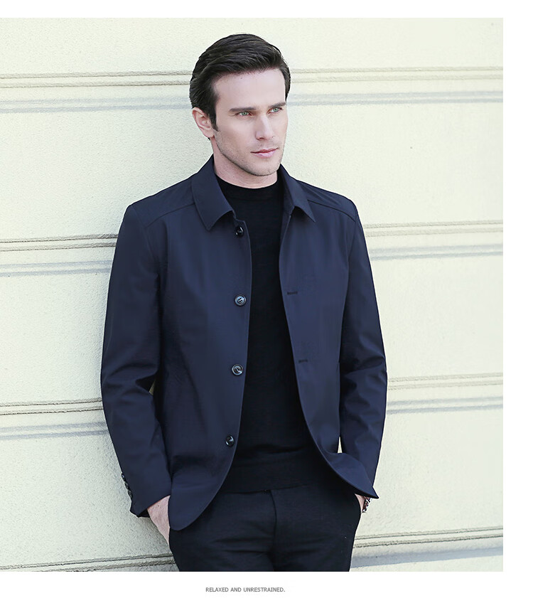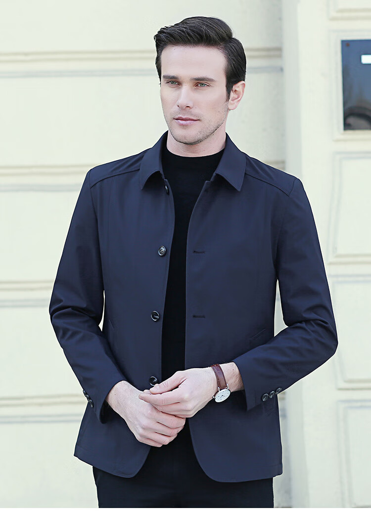 Pierre Cardin New Spring and Autumn Men's Jackets Men's Jackets Middle-aged Business Lapel Jackets Casual Jackets Executive Wear Tops Men Dark Blue L/175