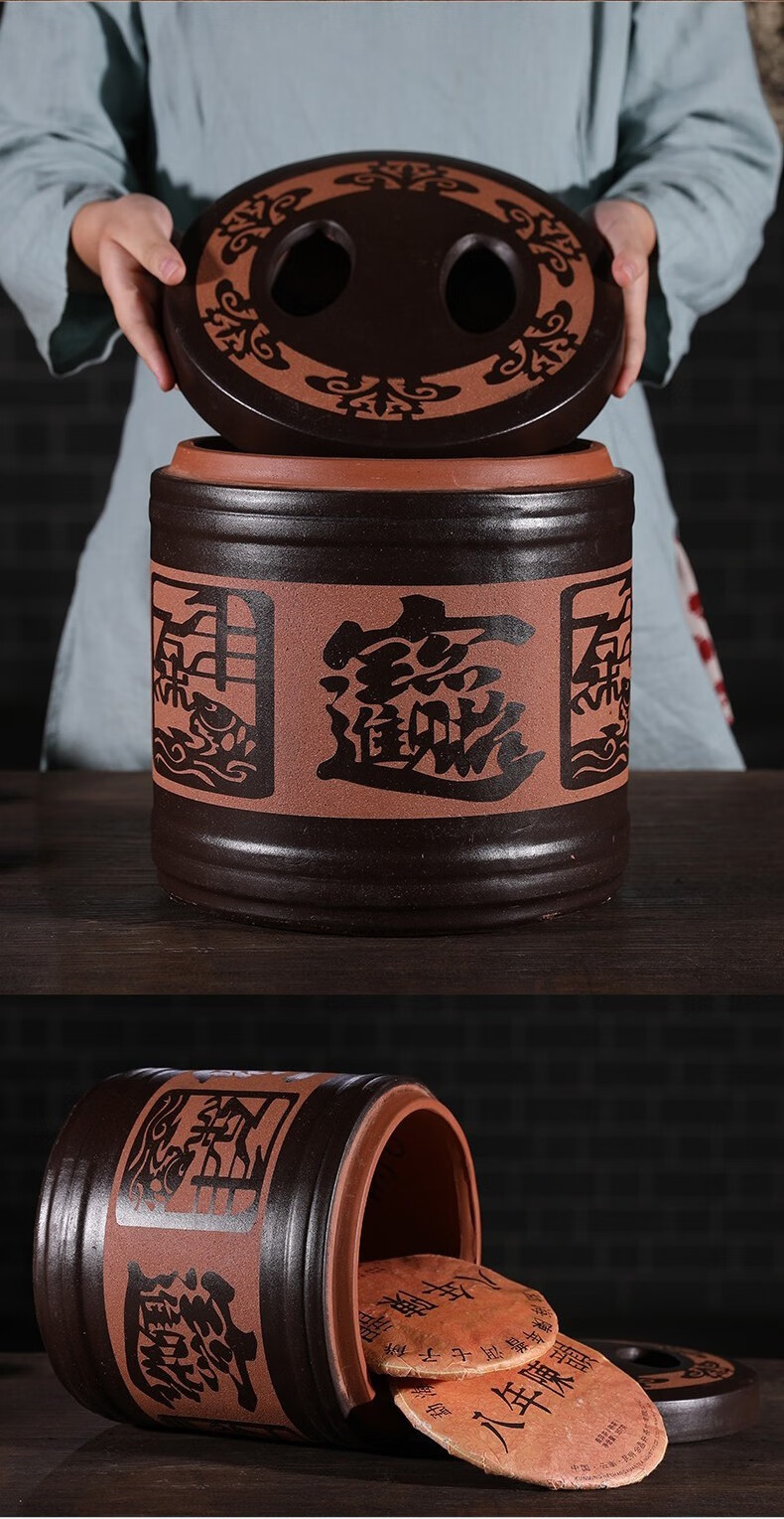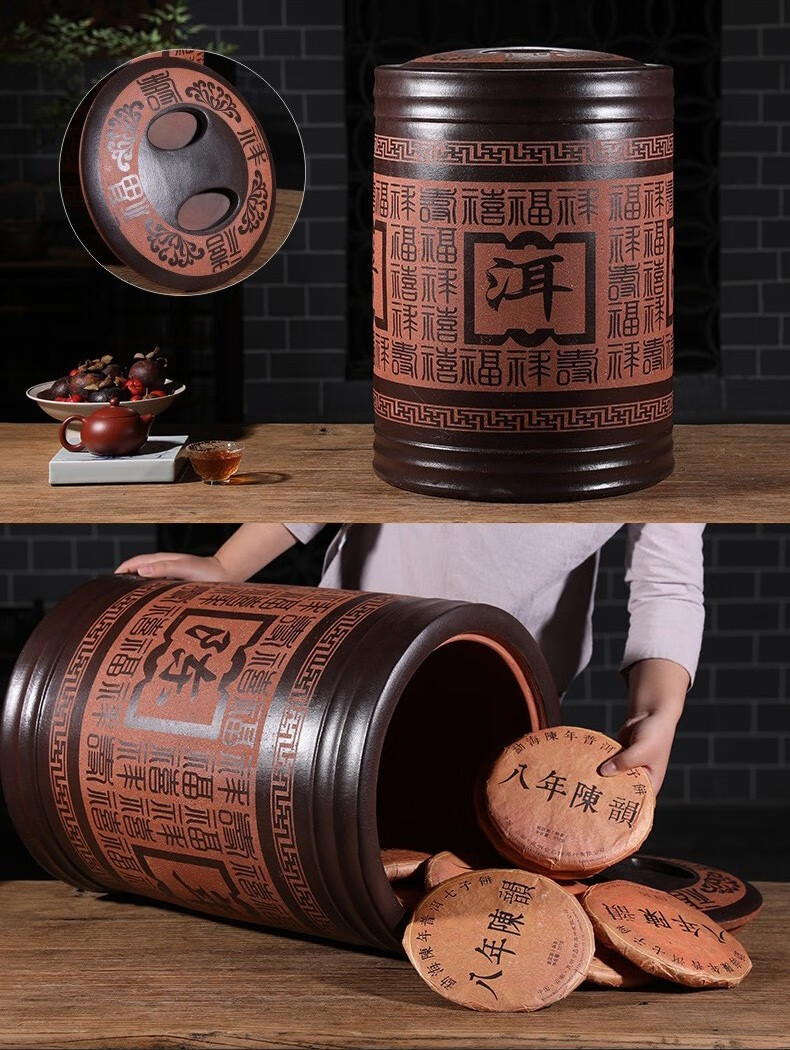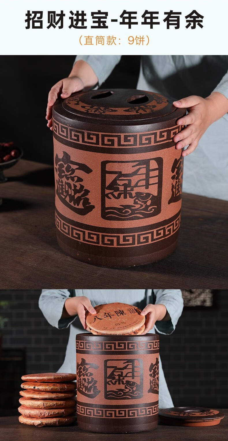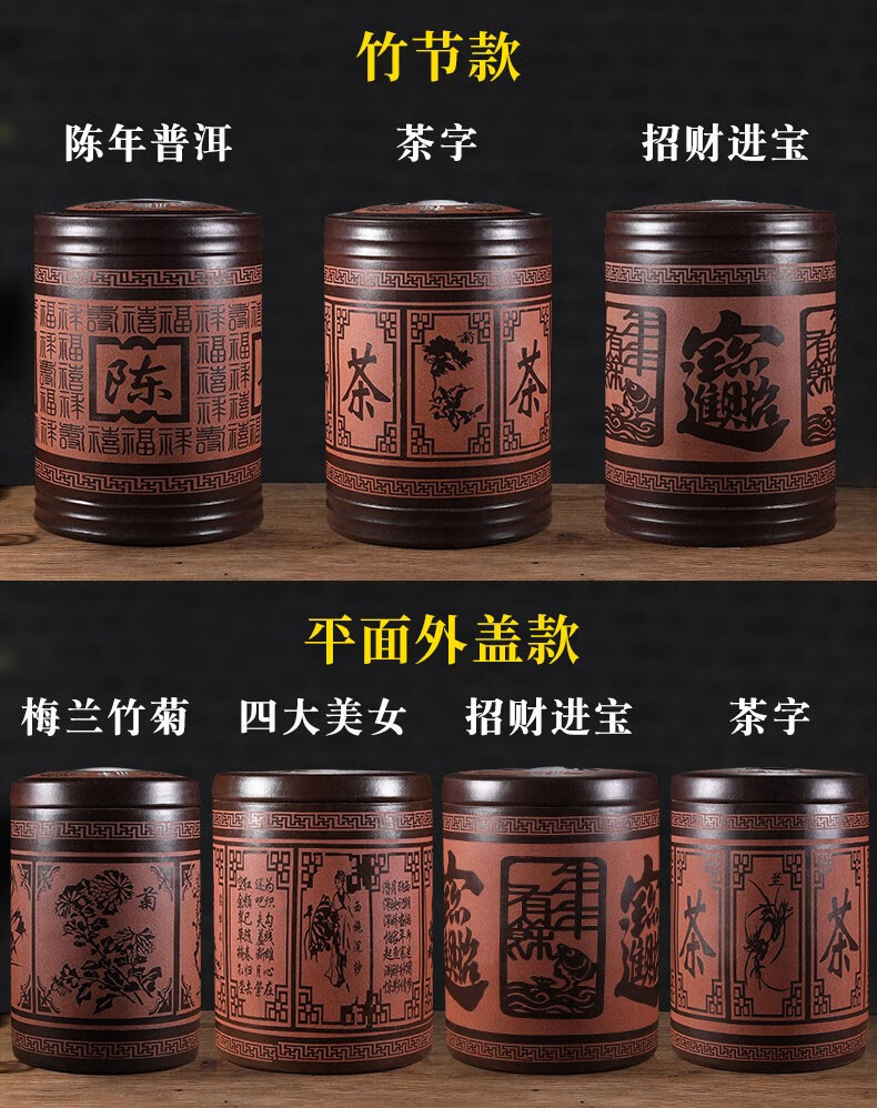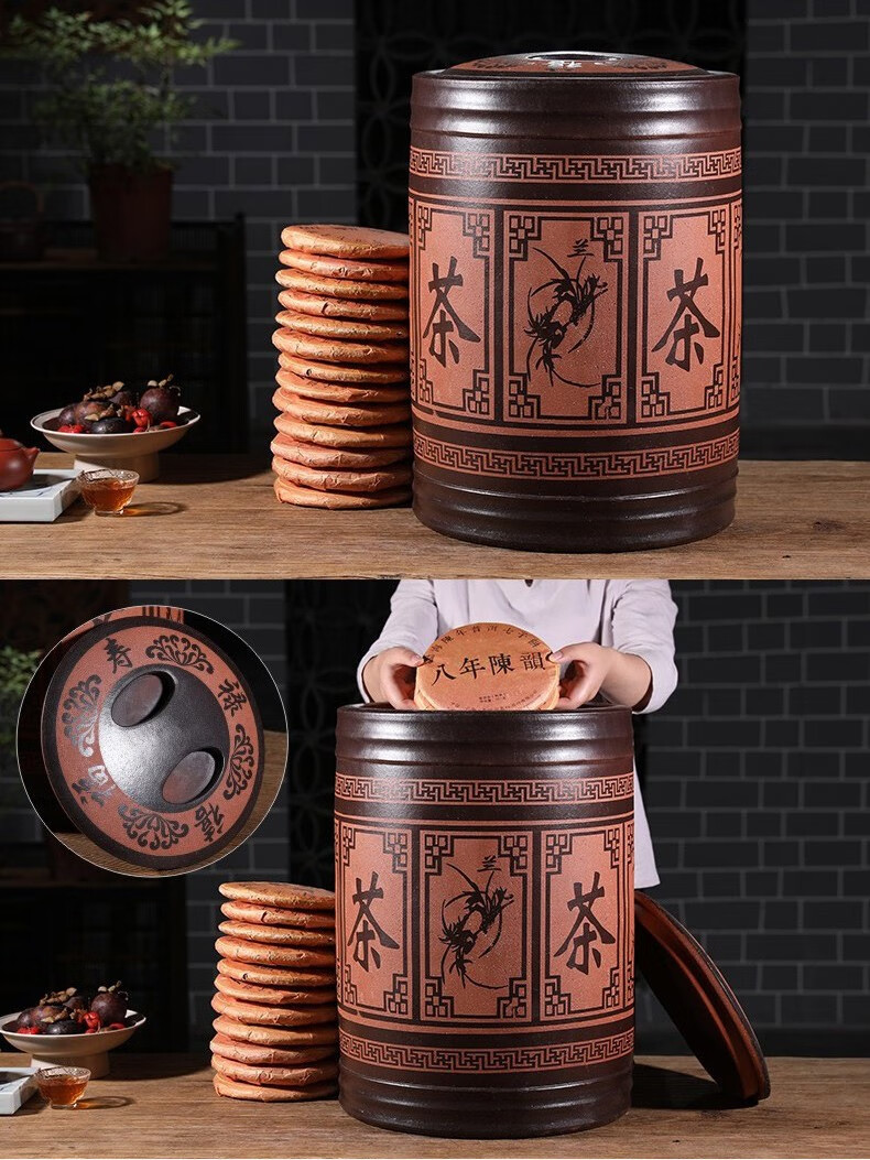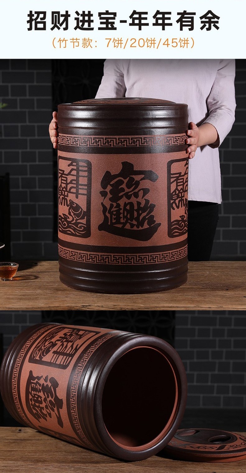 Song of the Pot Yixing Zisha Tea Can Large Tea Storage Can Pu'er Tea Cake Sealed Tea Can Extra Large Tea Bucket Storage Can Bamboo Engraving/Plum, Orchid, Bamboo and Chrysanthemum 23 Cake