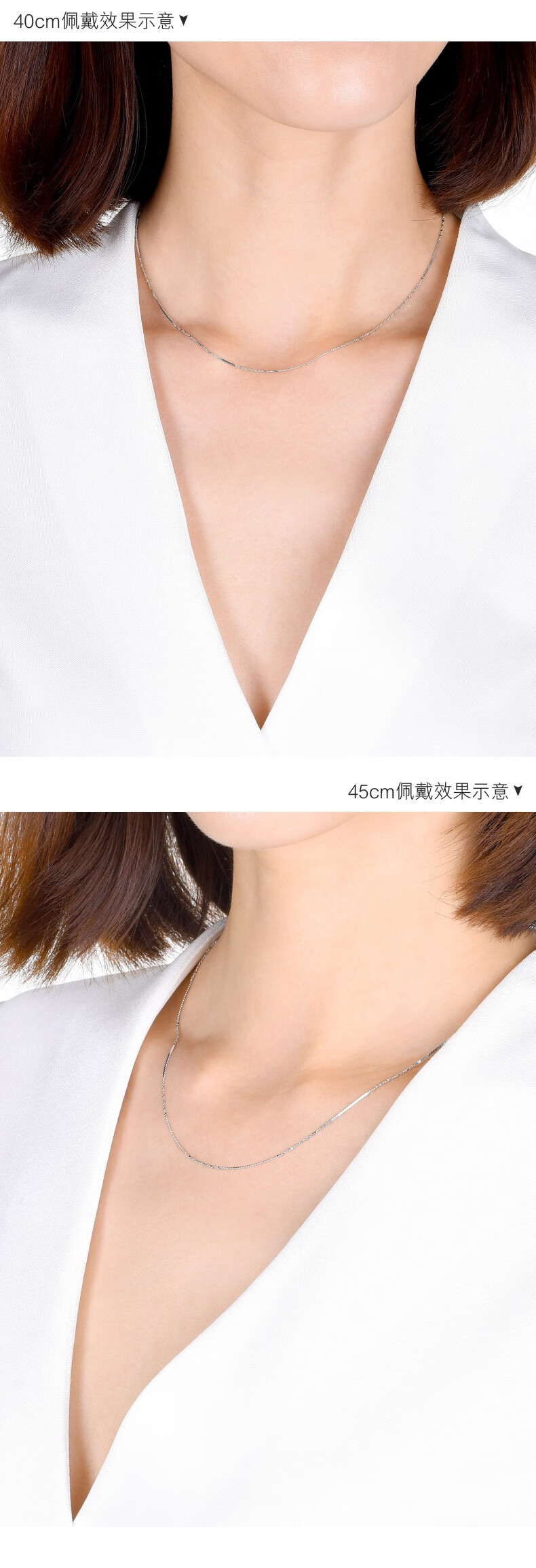 Chow Sang Sang Pt950 Platinum Necklace White Gold Versatile Necklace Plain Chain Men and Women Model 04805N Price 40cm - 2.41g (including labor cost 350 yuan)
