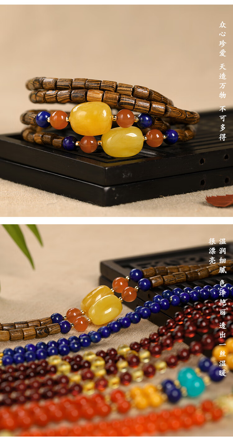 Ouchini Beeswax Water Drop Pendant with Chain Amber Necklace Beeswax Chain Lanyard Small Accessories Duobao Accessories Does Not Come with Certificate Style 3 Blood Amber + Gold Amber, Rainbow Chain Style