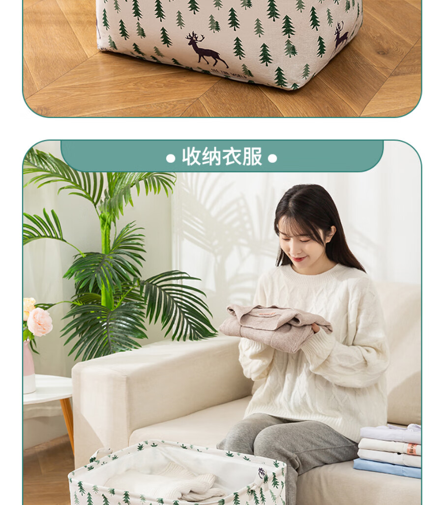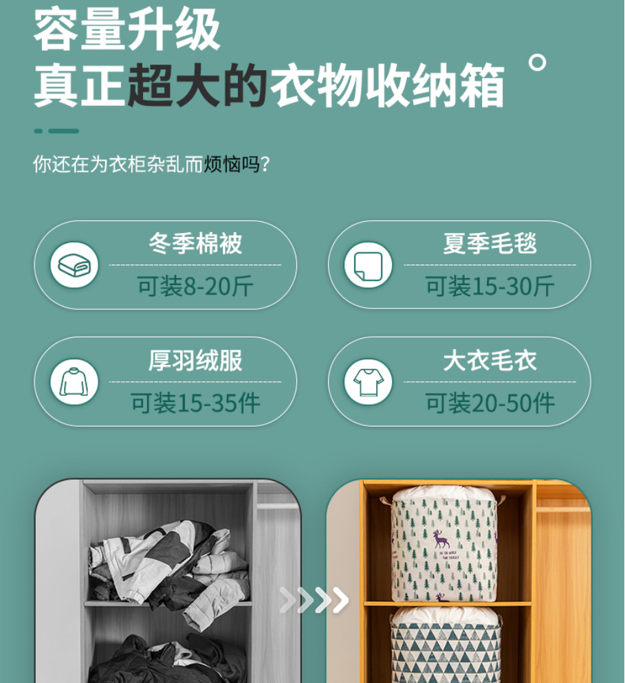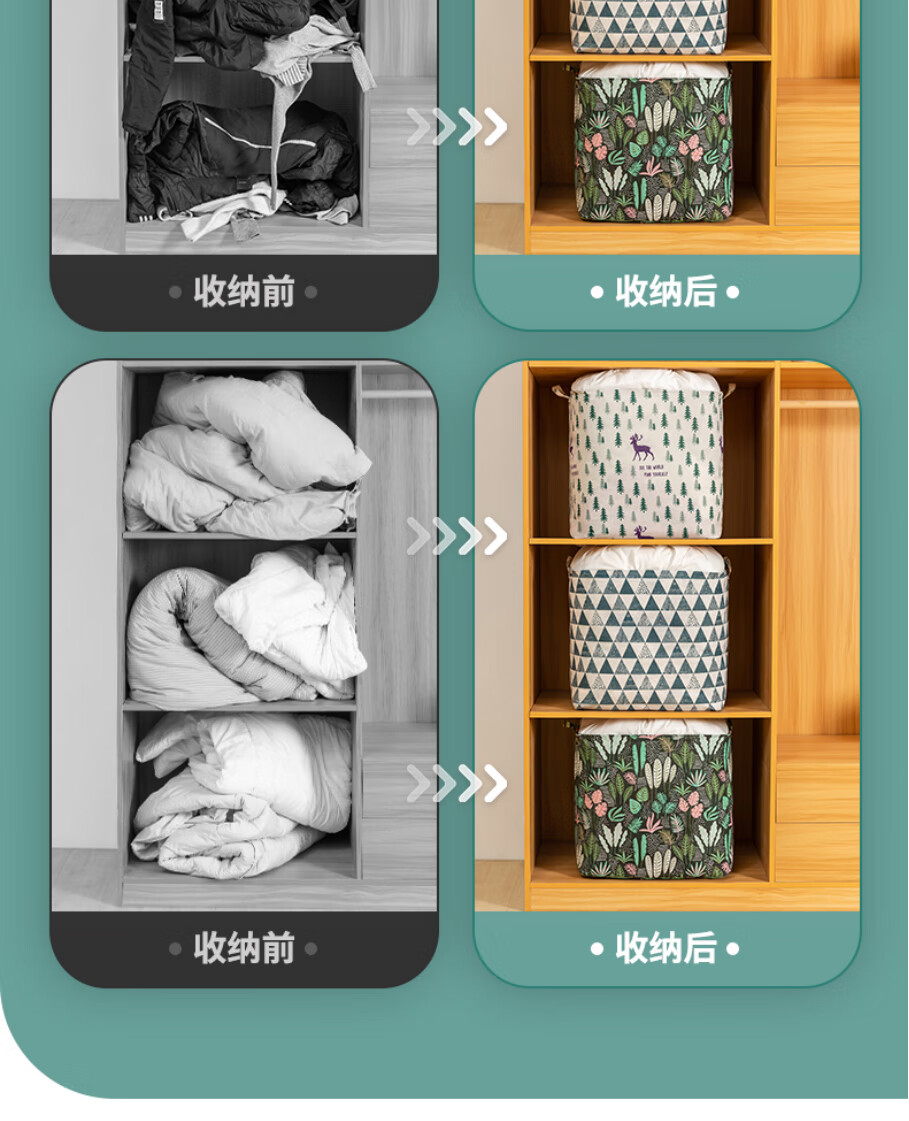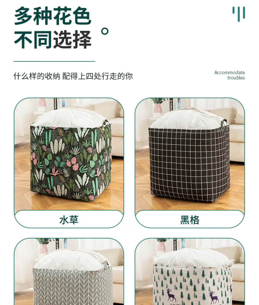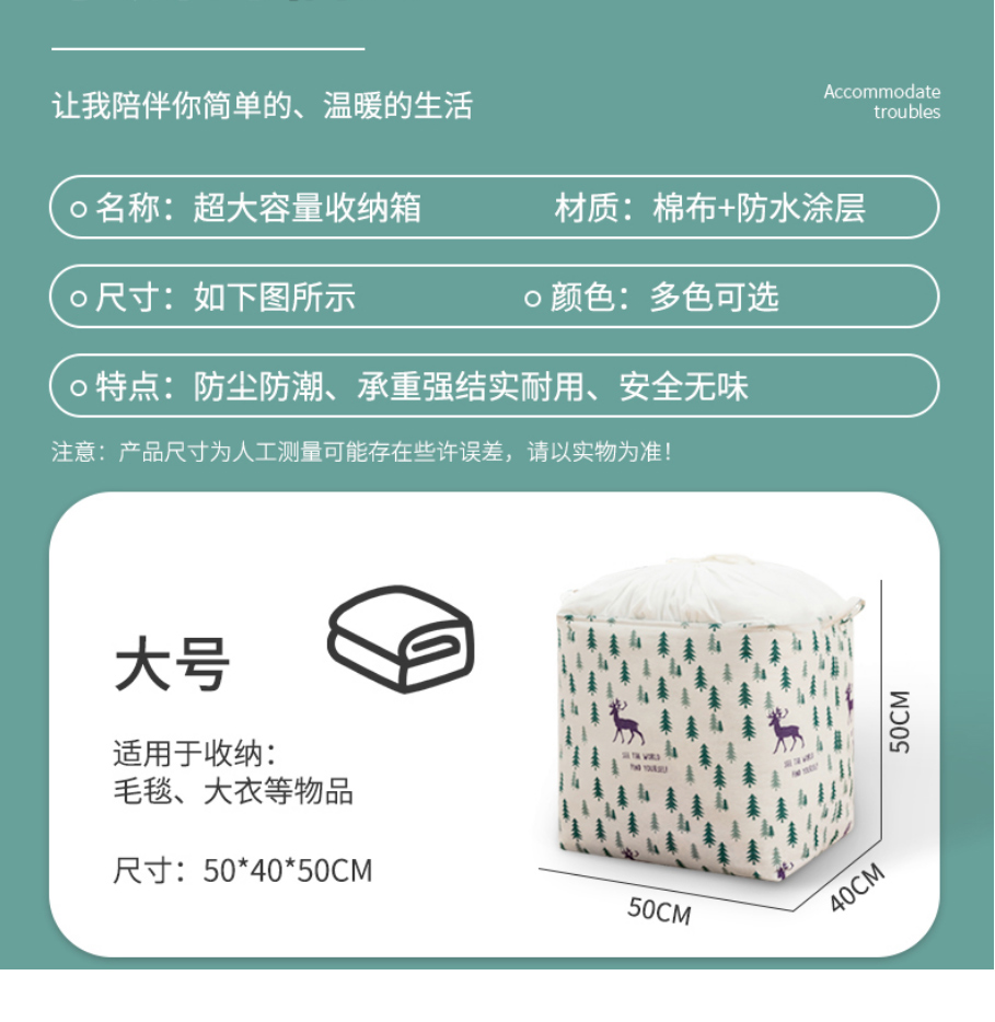 Rui Liya quilt and clothes storage bag clothes and quilt storage bag moving artifact quilt storage artifact moving packing bag green water plant girdle storage basket 100L 50*40*50cm