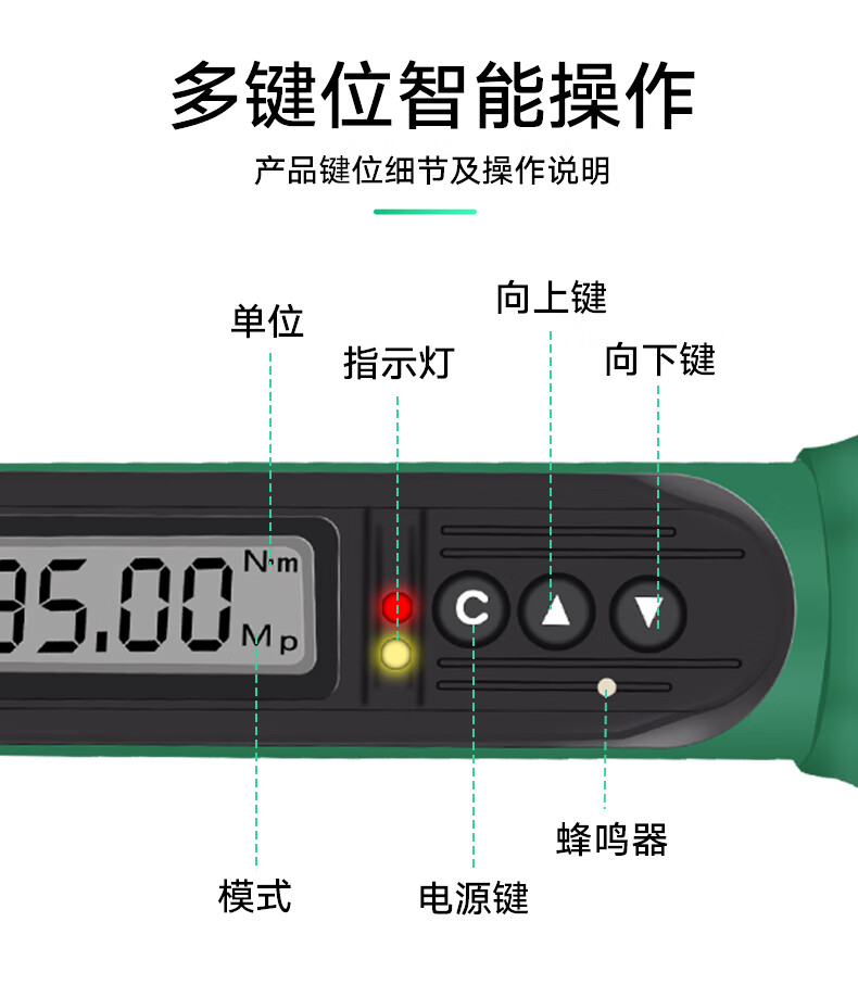 PLARZ wrench digital display torque wrench high precision torque wrench industrial grade automotive kilogram electronic torque wrench adjustable Zhongfei 3/8 torque 6.8-135Nm accuracy 2%