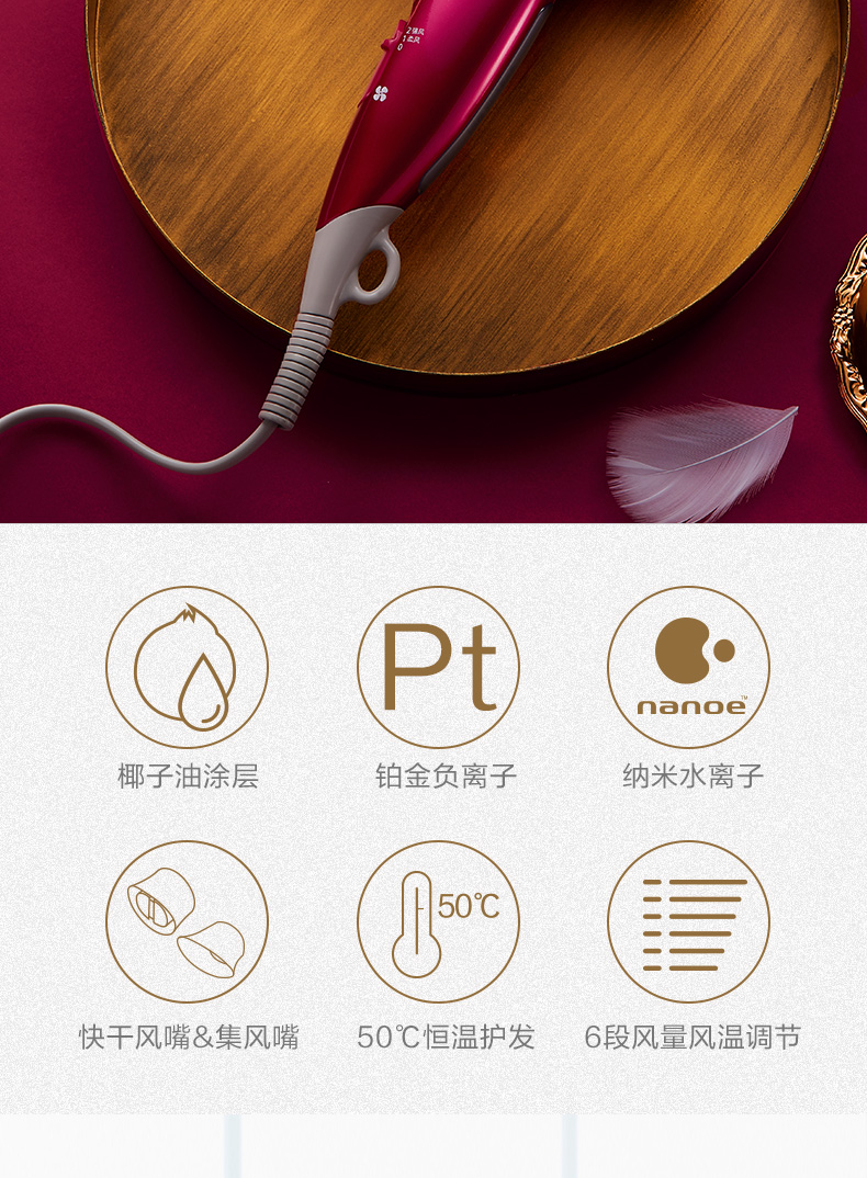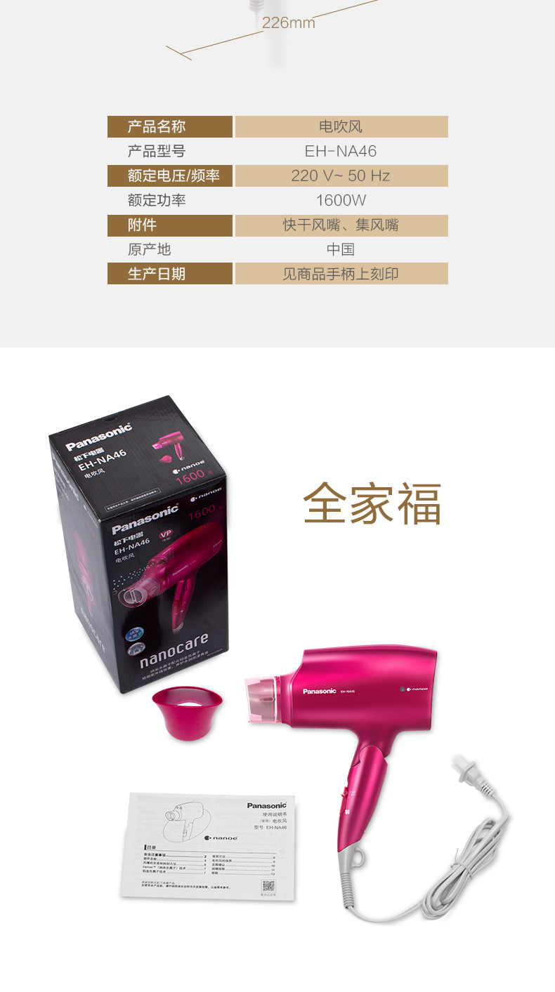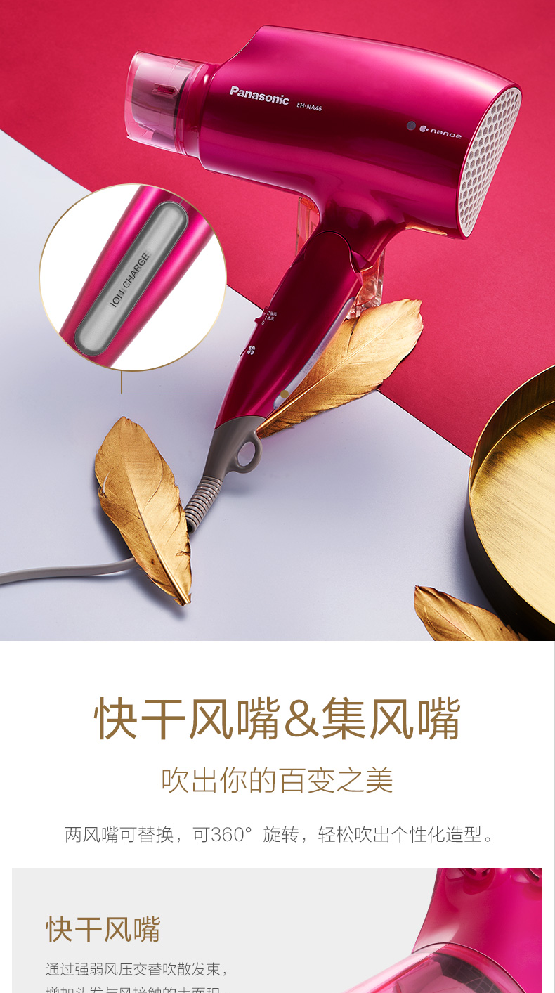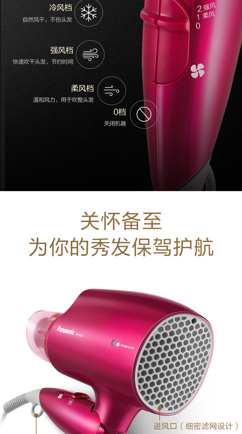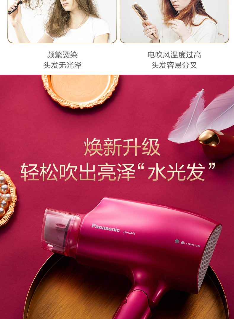 Panasonic hair care machine Nanoyi hair care constant temperature hair care air water film hair dryer hair dryer constant temperature hair care EH-NA46VP rose red