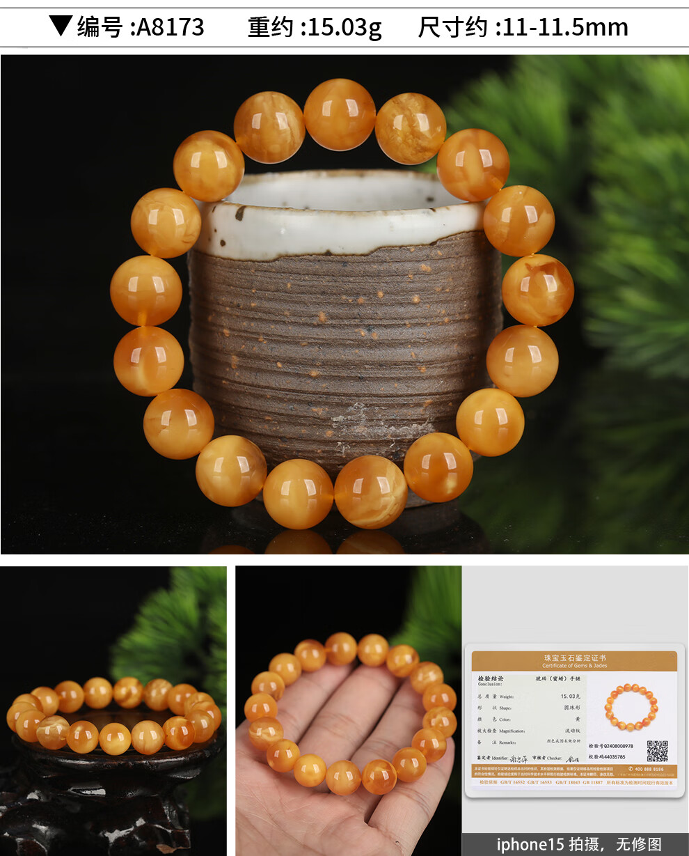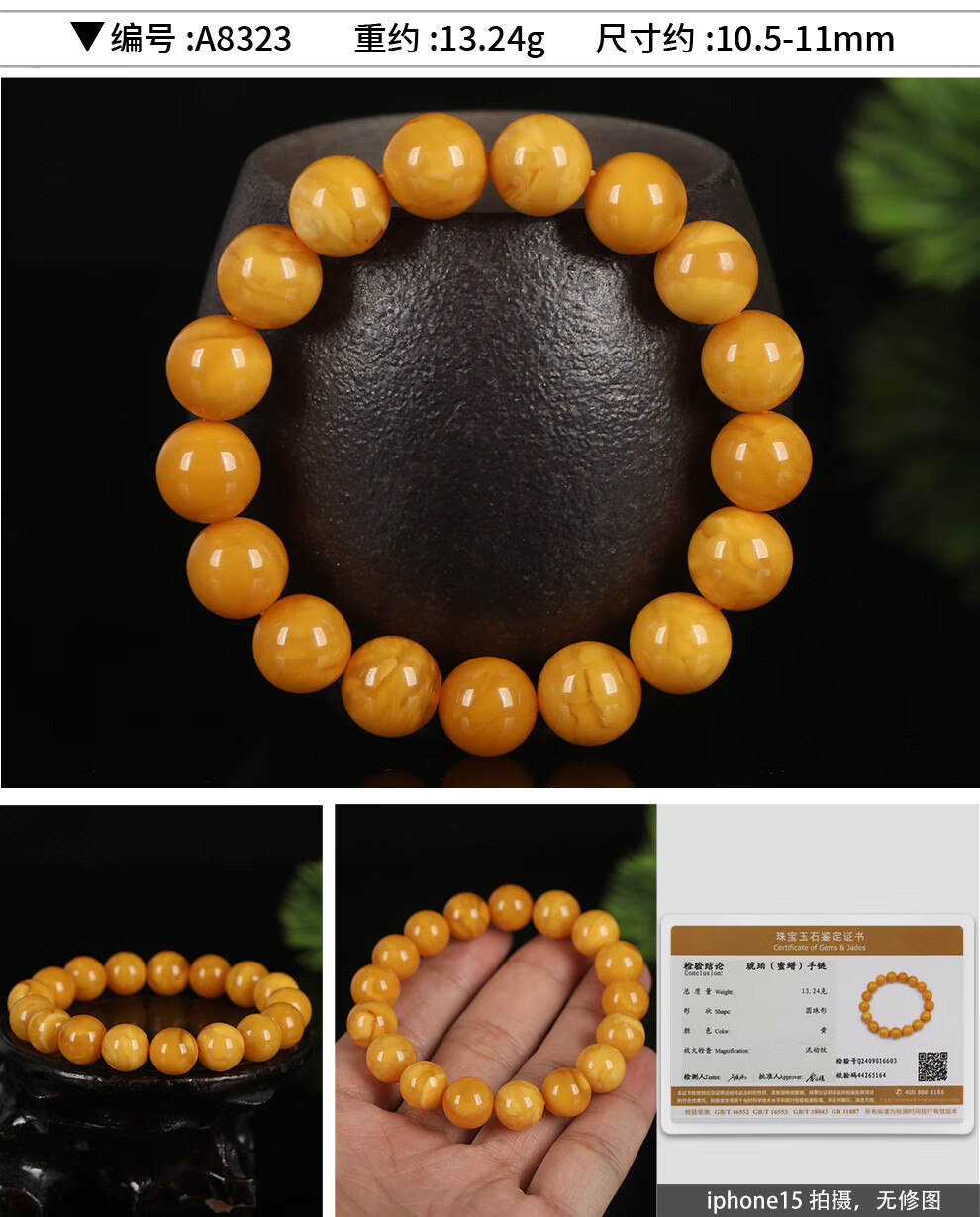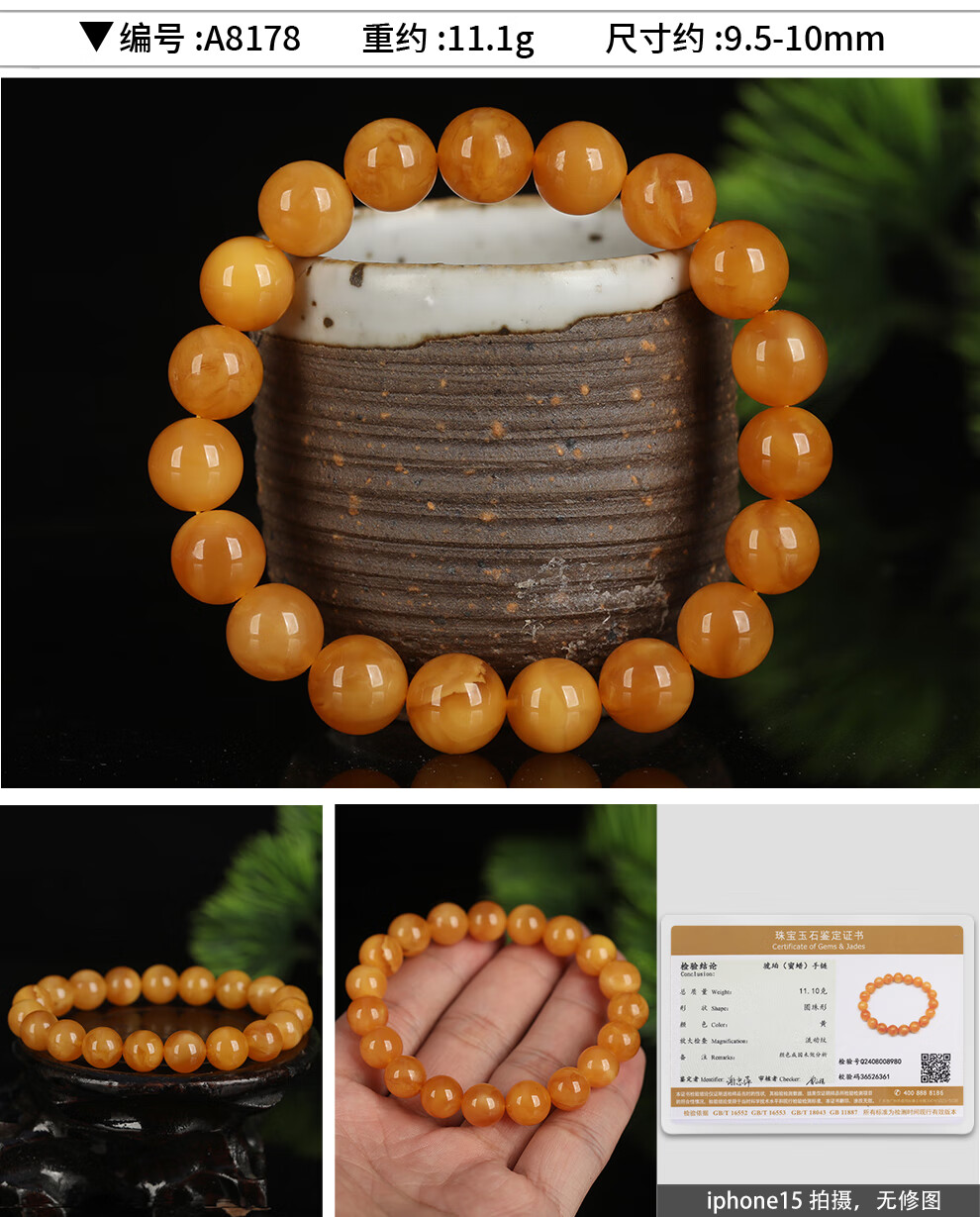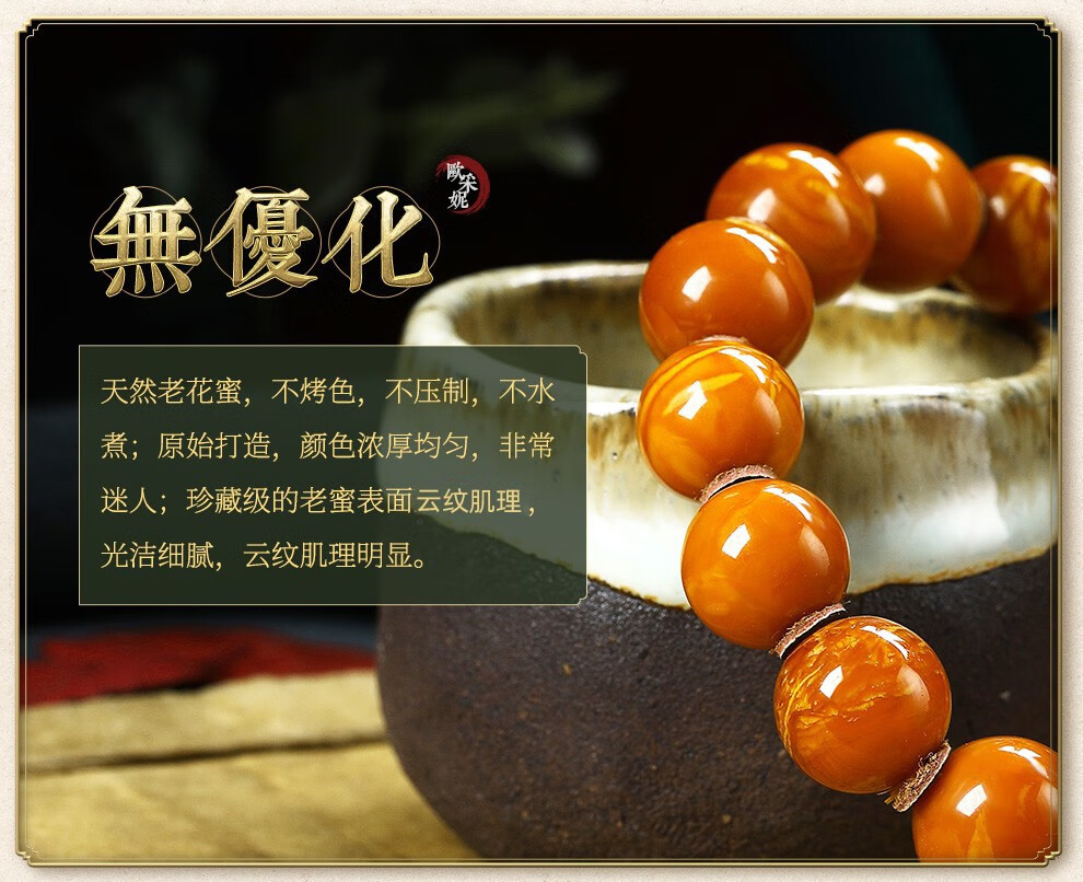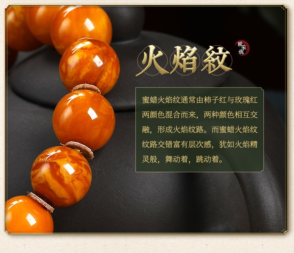 OUCERNY collectibles old wax flower wax flame pattern beeswax bracelet loose beads natural chicken fat yellow full honey single circle amber bracelet for women 8mm + old flower wax bracelet selected for delivery