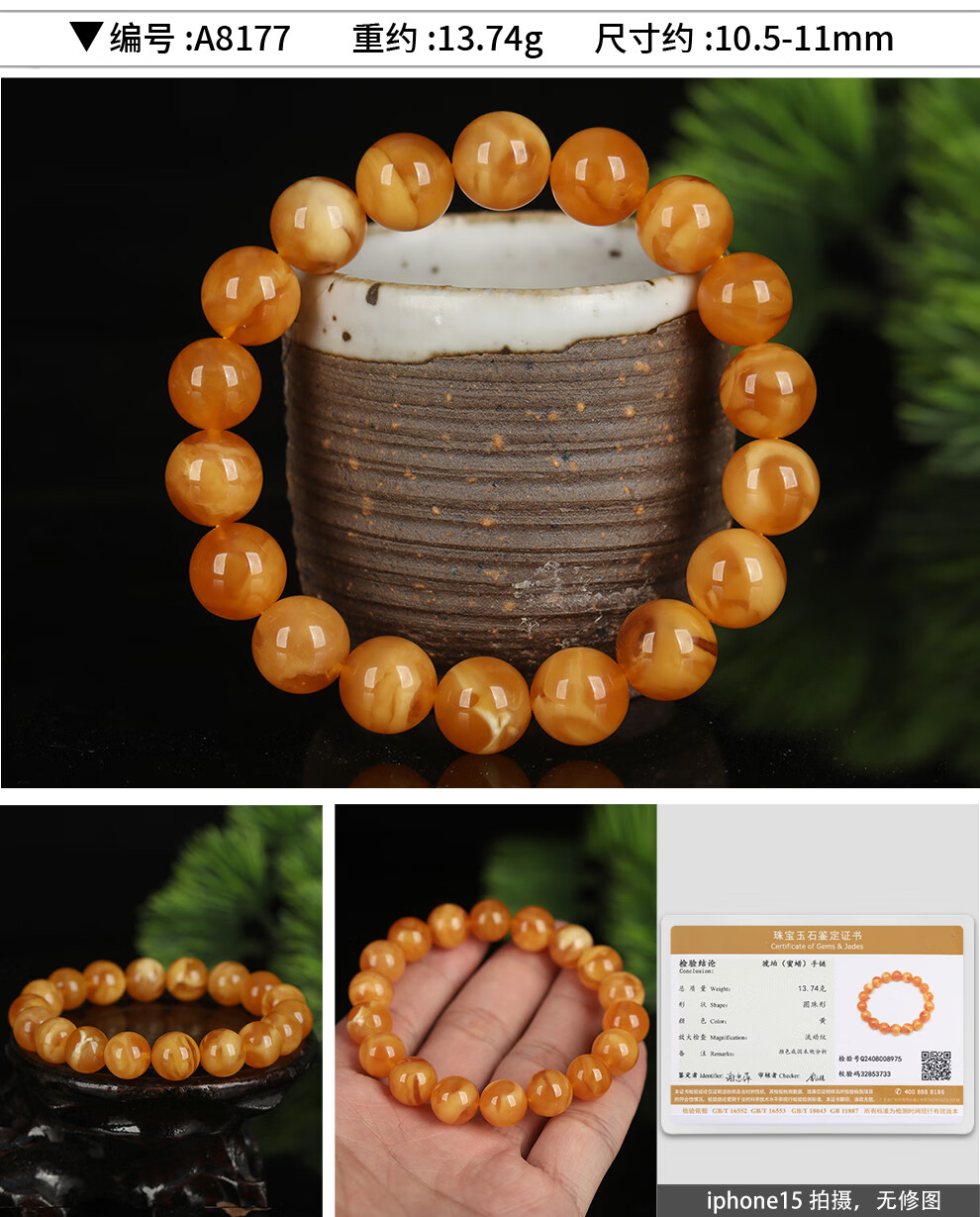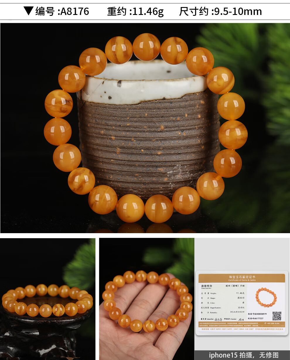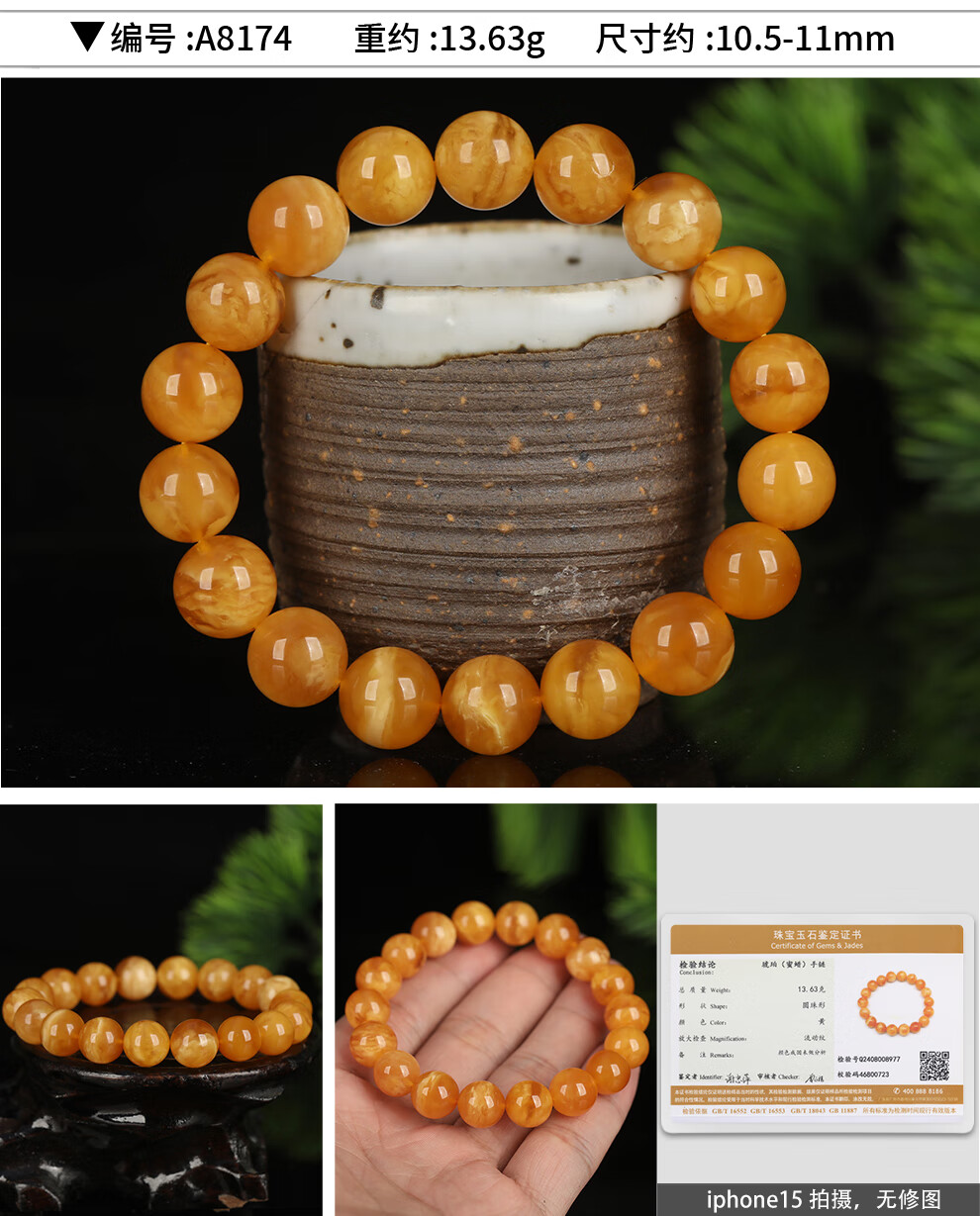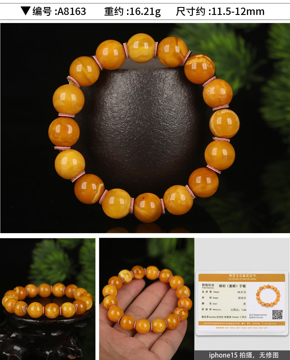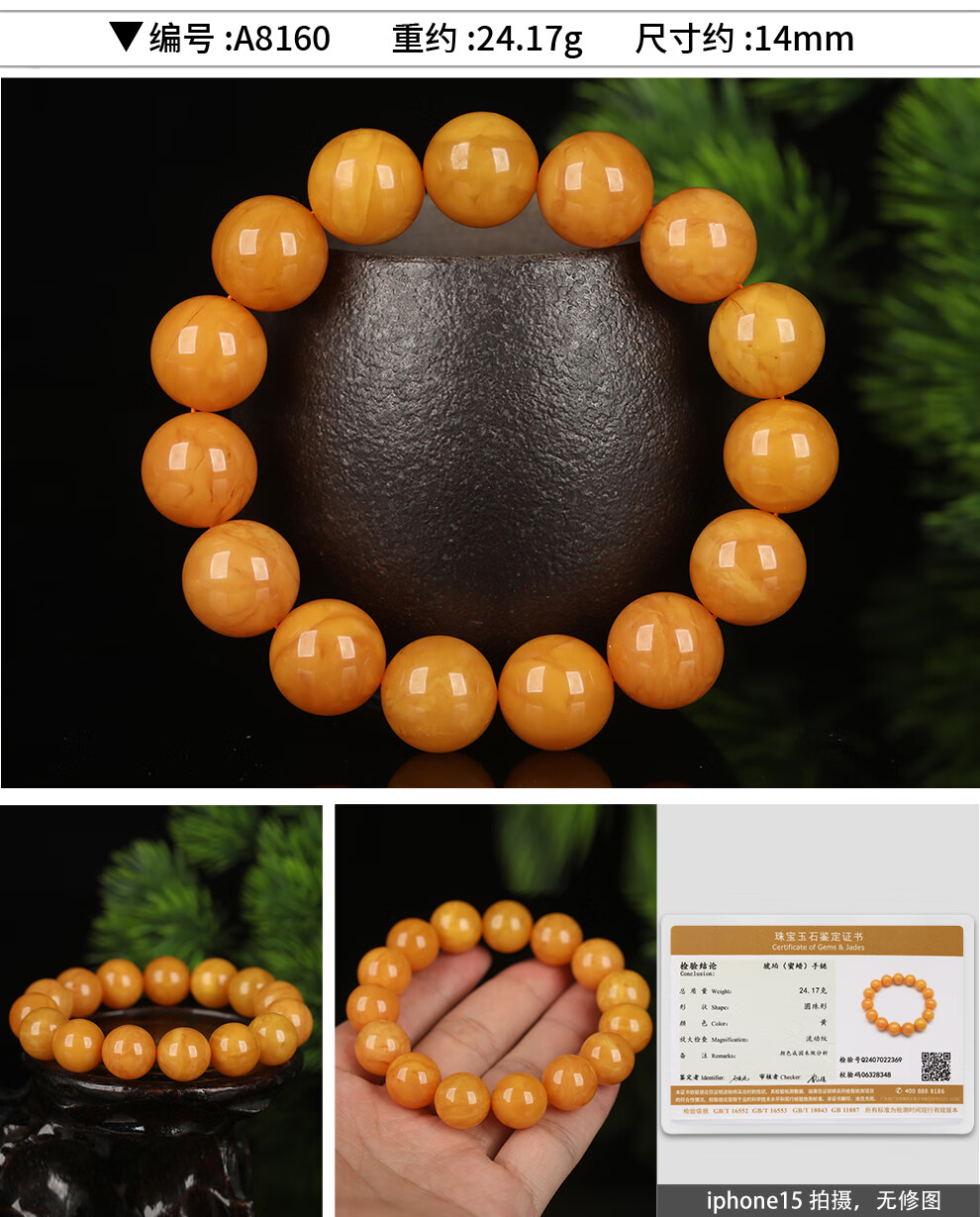 OUCERNY collectibles old wax flower wax flame pattern beeswax bracelet loose beads natural chicken fat yellow full honey single circle amber bracelet for women 8mm + old flower wax bracelet selected for delivery