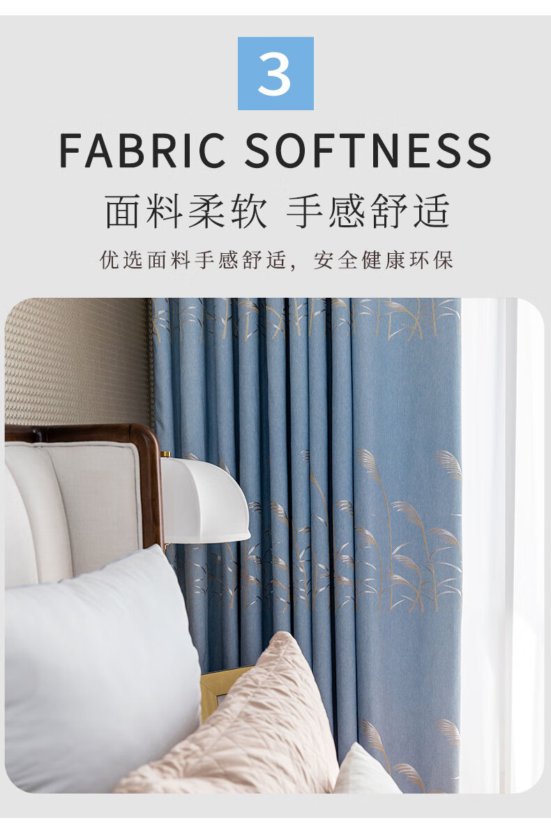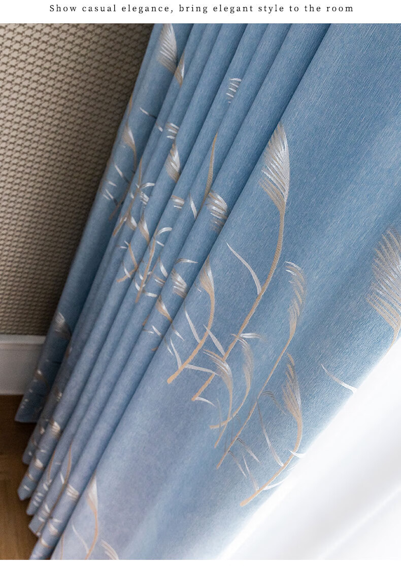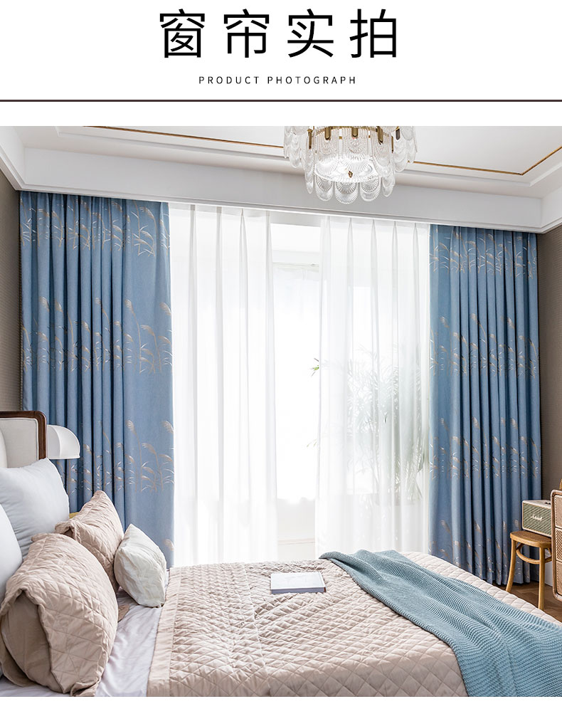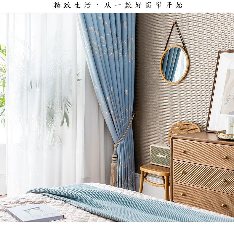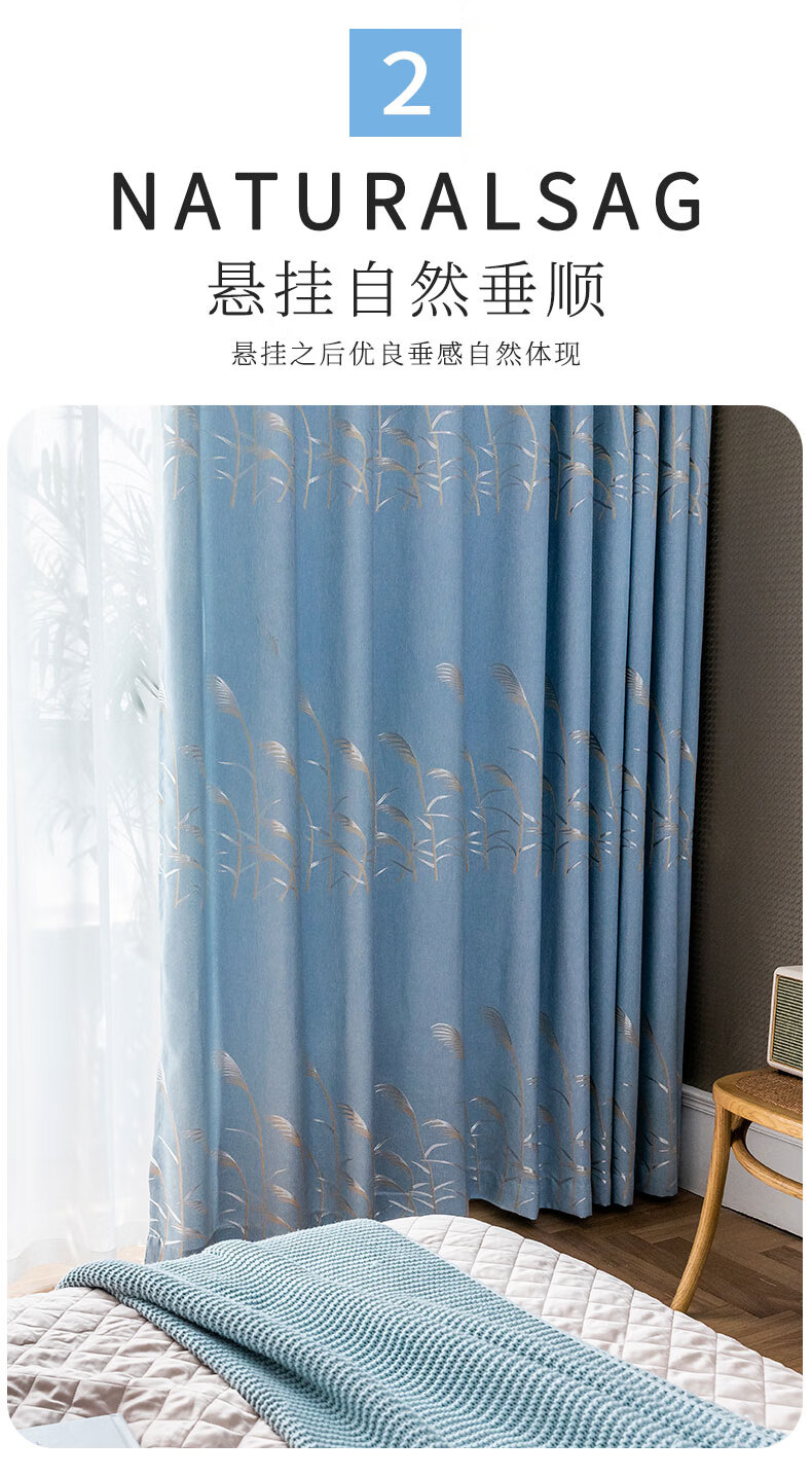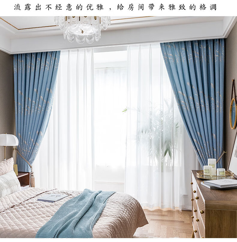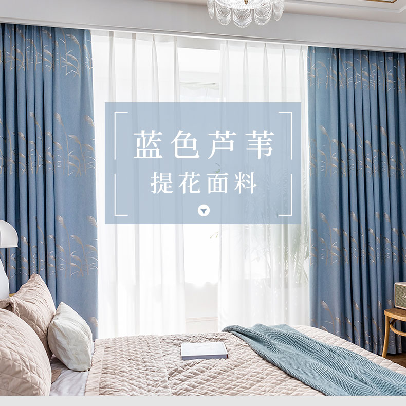 Noro curtains customized blue jacquard simple modern balcony living room bedroom floor-to-ceiling windows bay windows finished light blocking reed blue cloth ordinary hook style 2 meters wide * 2 meters high / 1 piece