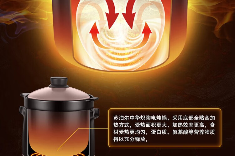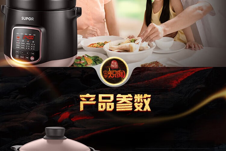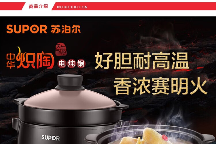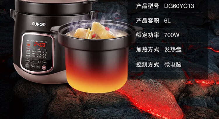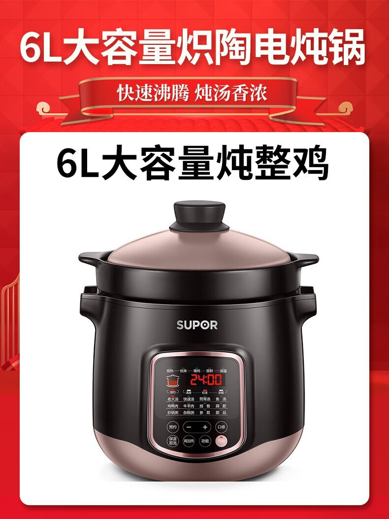 SUPOR household electric stew pot 6L large capacity fully automatic electric casserole soup pot Chinese ceramic old fire soup restores open fire cooking twelve major features intelligent appointment timing 6 liters large capacity ordinary express 6L