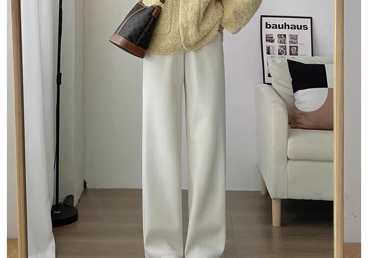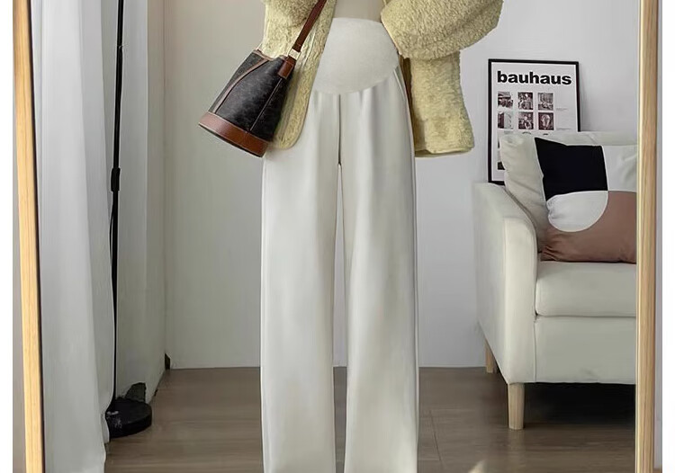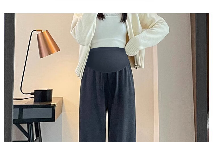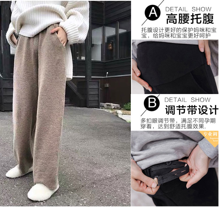 Nanding Yage maternity pants autumn and winter wide-leg pants new outer wear plus velvet straight floor-length trousers with drapey belly support pants autumn and winter oatmeal color plus velvet XXL 140-170Jin Jin is equal to 0.5 kg