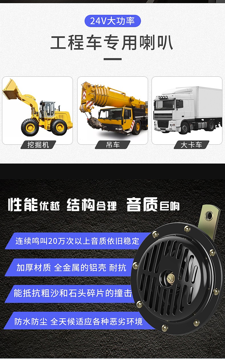 Car basin type horn waterproof super loud 24V electric horn passenger car large truck engineering vehicle universal whistle horn 24V single horn