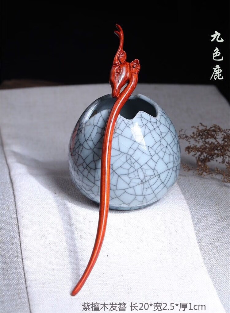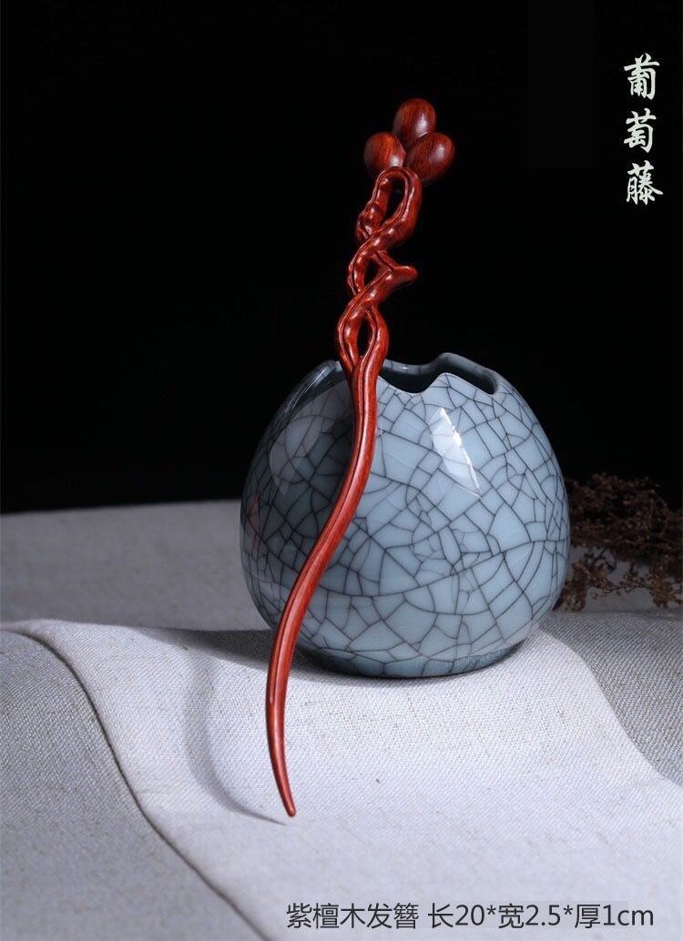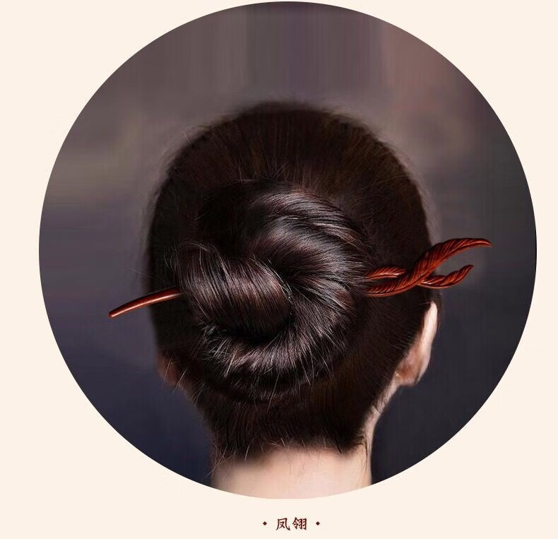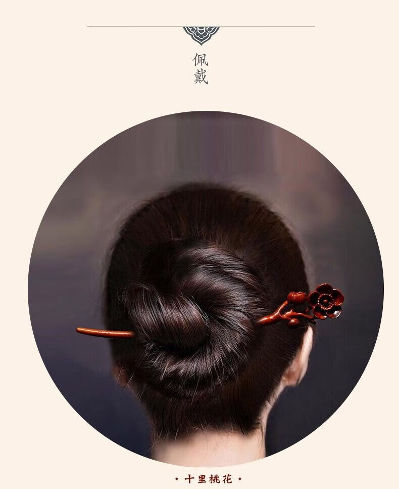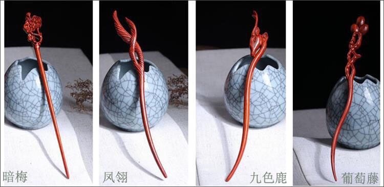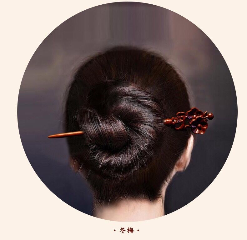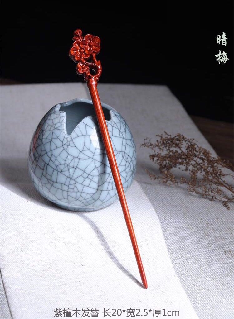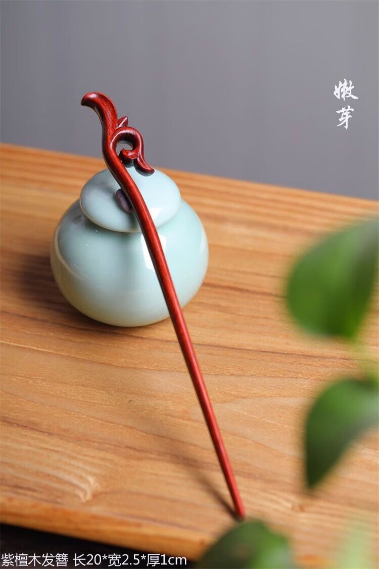 Mengyi ancient style long hairpin extended red sandalwood hairpin advanced Hanfu modern wooden hairpin dark plum
