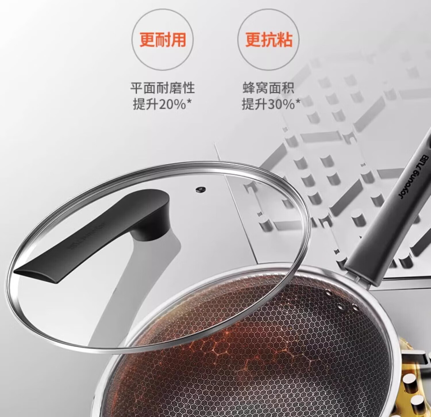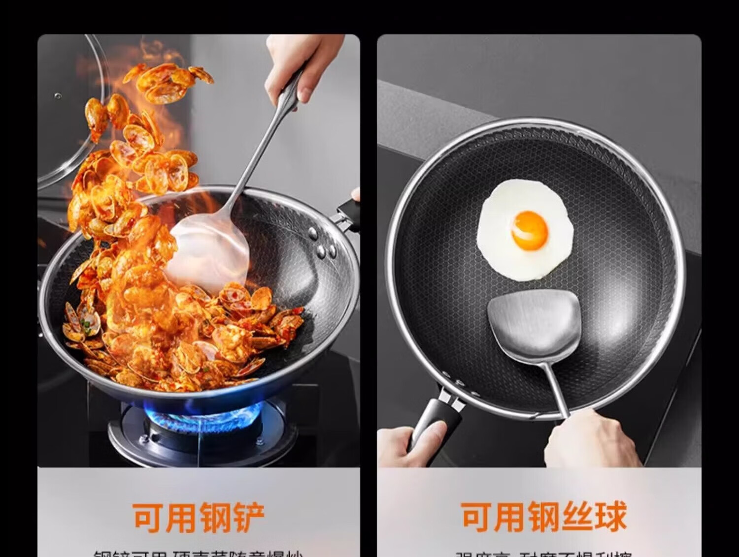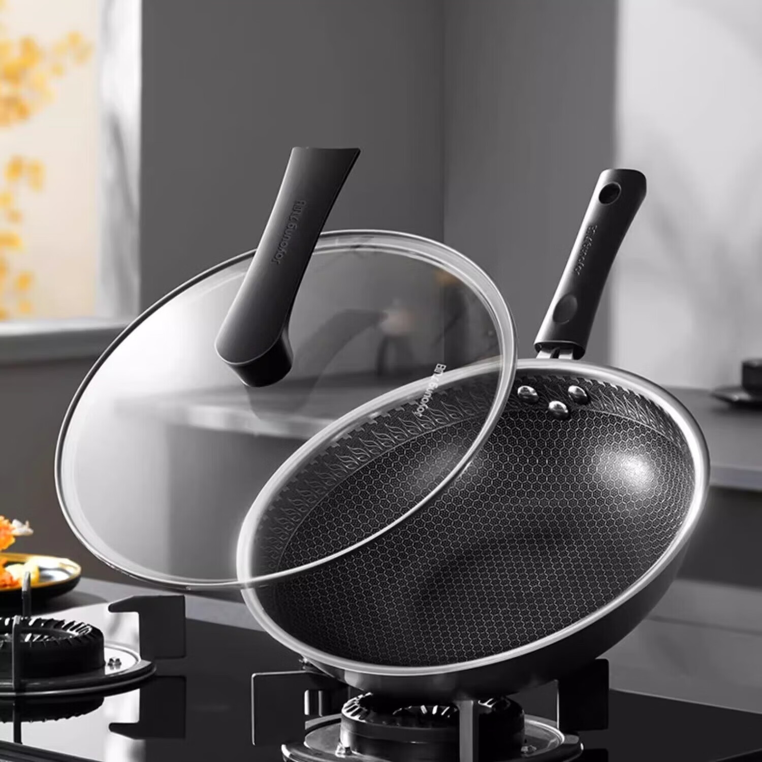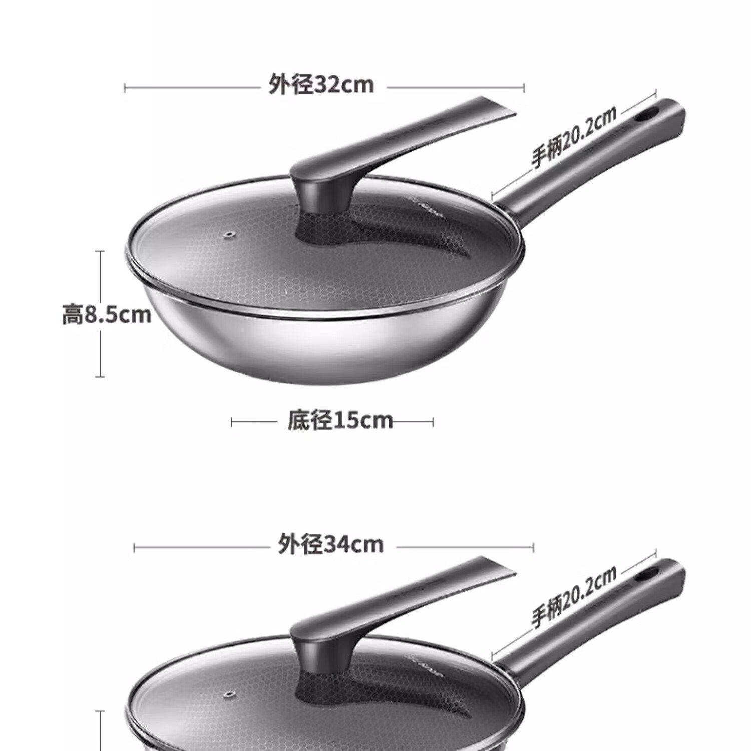 Joyoung non-stick wok household stainless steel wok low smoke flat bottom induction cooker gas stove universal pot cookware full screen outer diameter 34CM 3-6 people 34cm