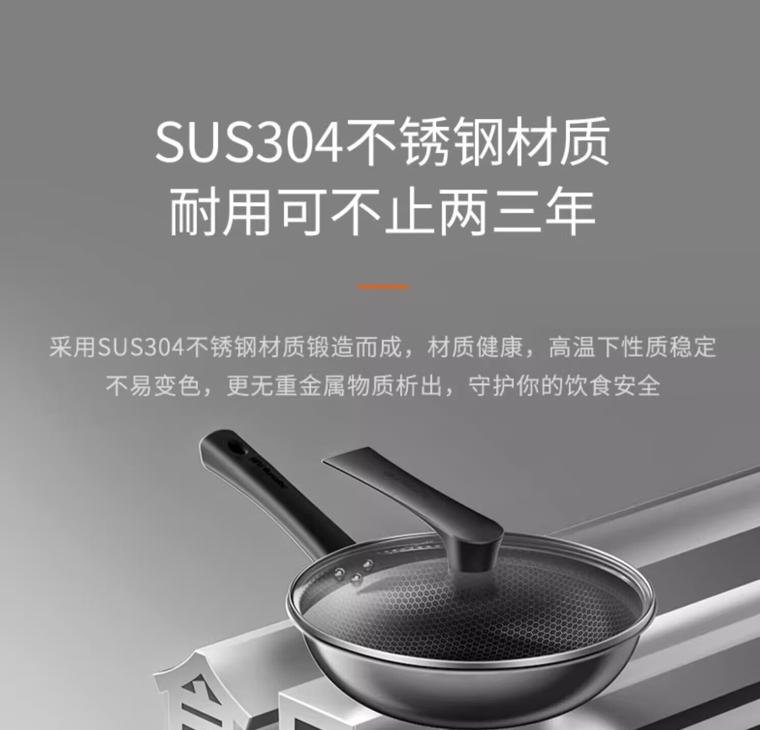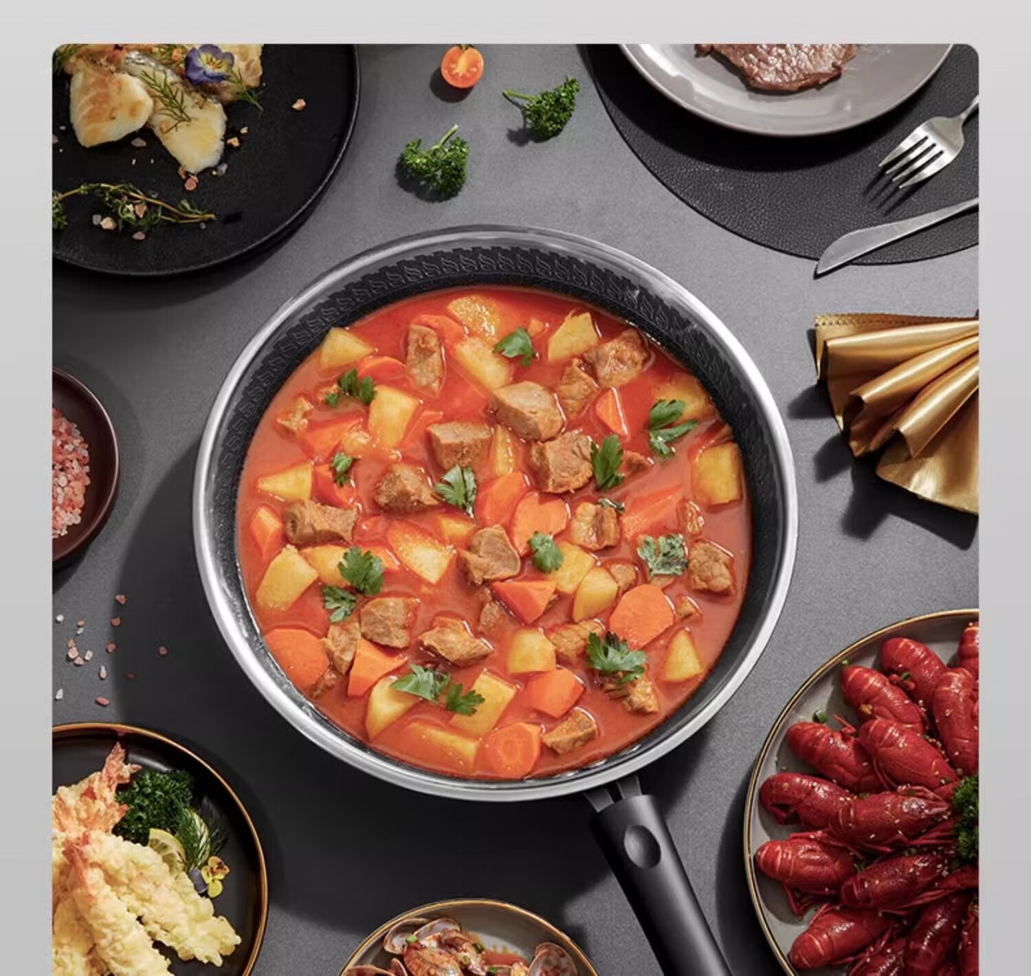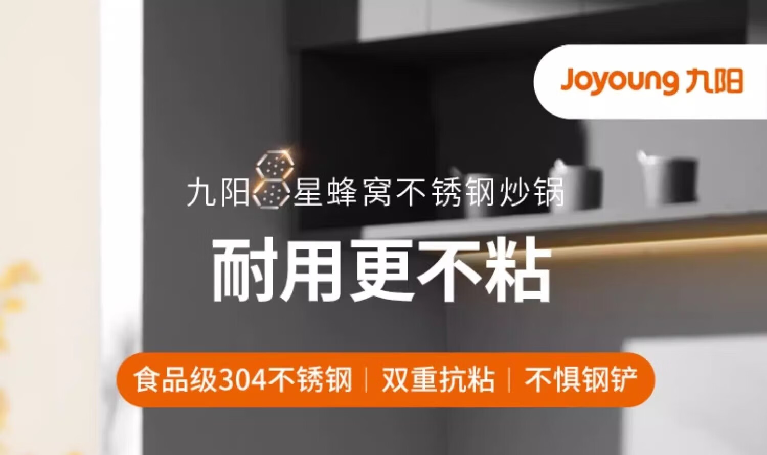 Joyoung non-stick wok household stainless steel wok low smoke flat bottom induction cooker gas stove universal pot cookware full screen outer diameter 34CM 3-6 people 34cm