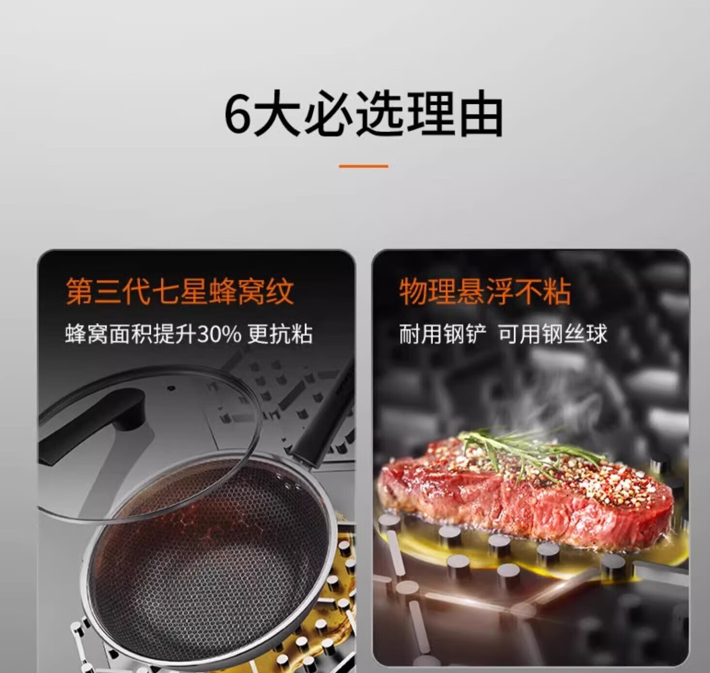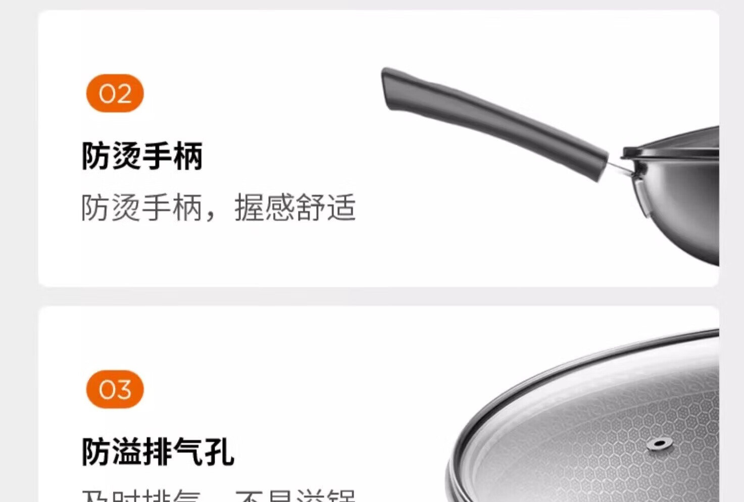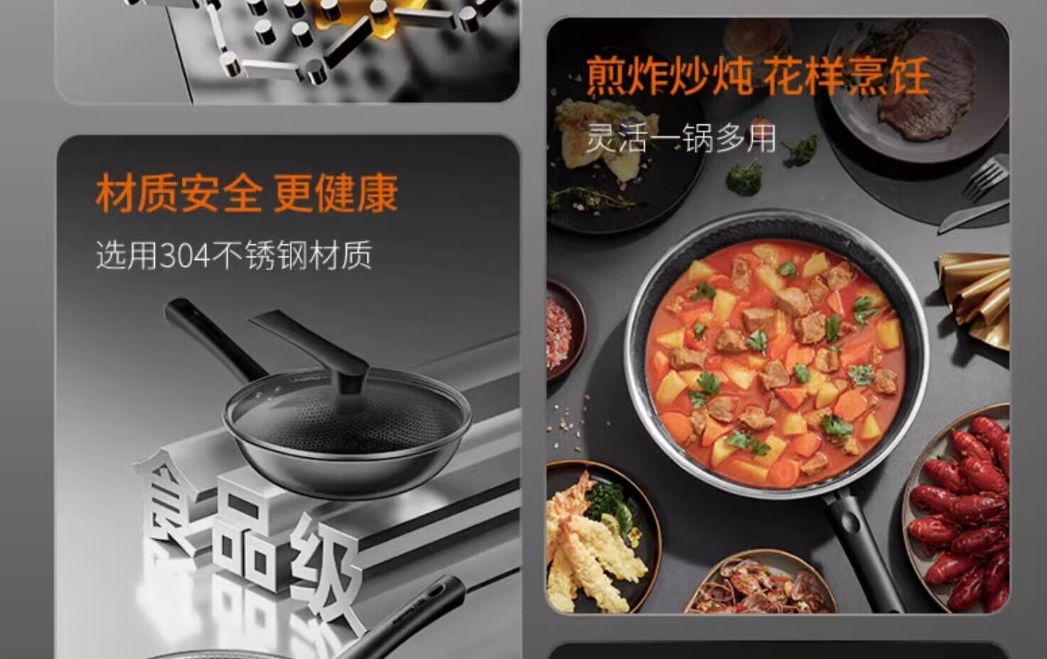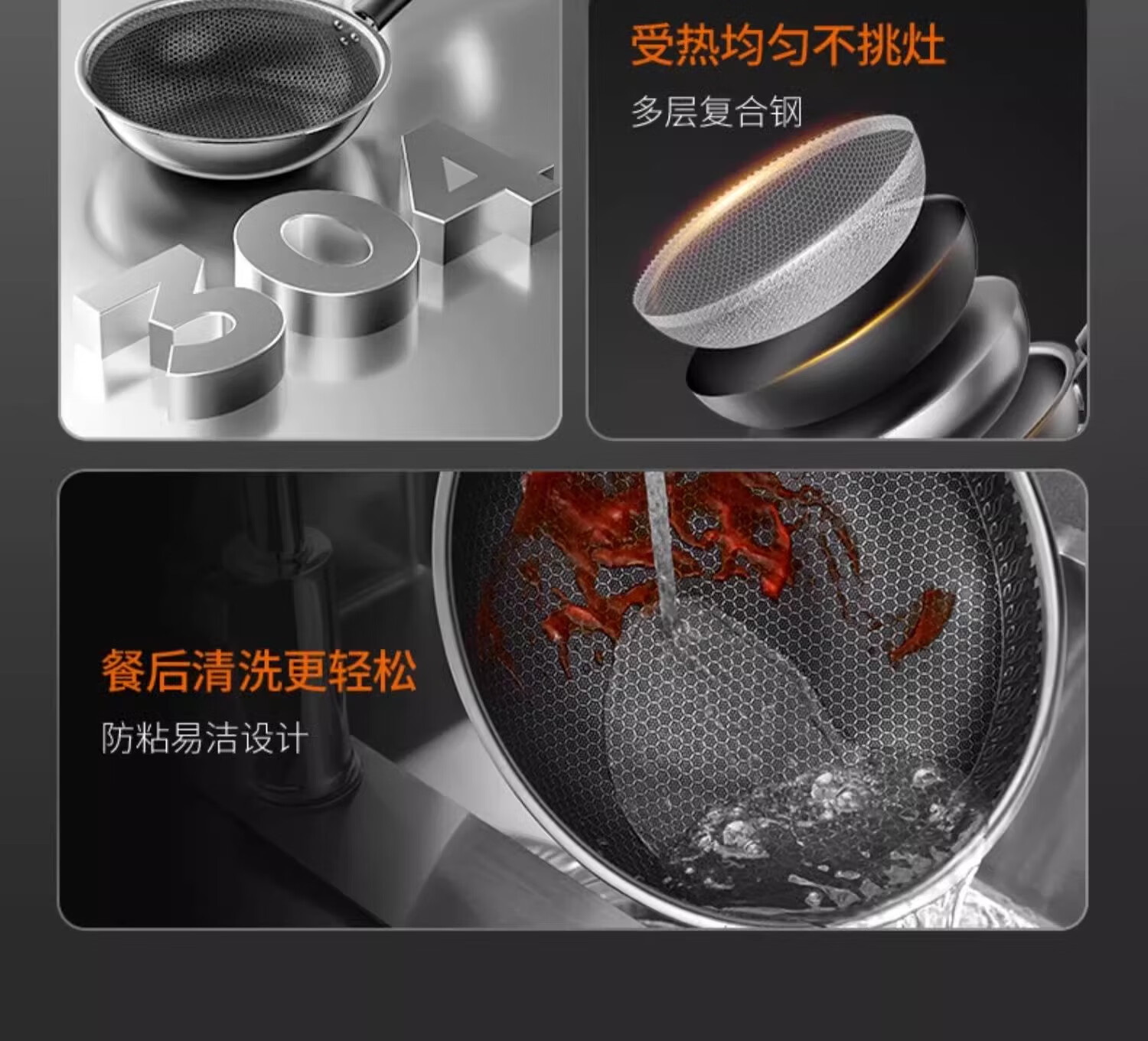 Joyoung non-stick wok household stainless steel wok low smoke flat bottom induction cooker gas stove universal pot cookware full screen outer diameter 34CM 3-6 people 34cm