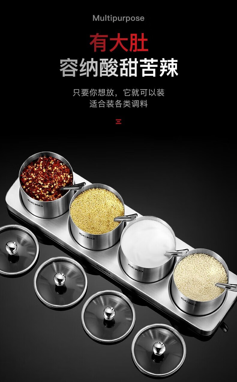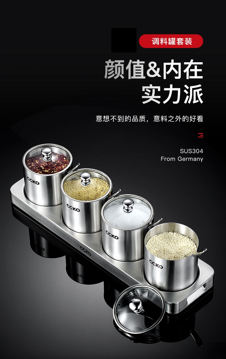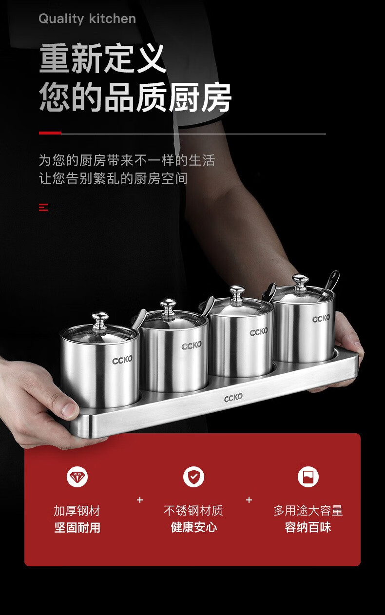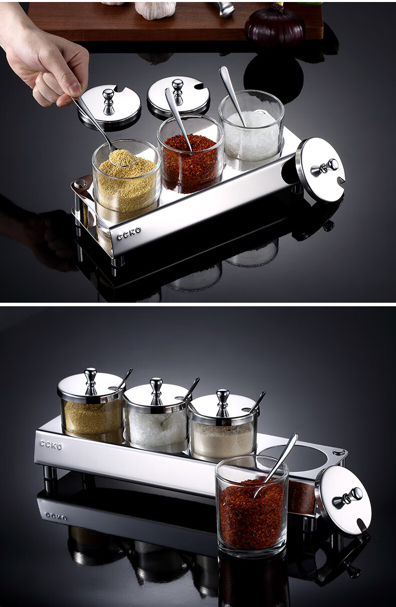 CCKO seasoning box kitchen seasoning jar seasoning box 304 stainless steel salt shaker storage rack seasoning jar seasoning bottle storage box 304 stainless steel single flavor seasoning jar