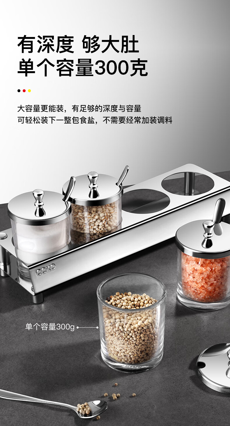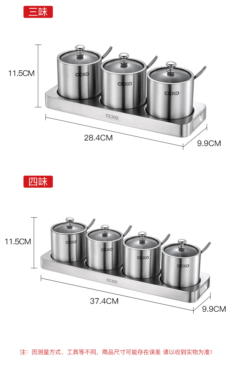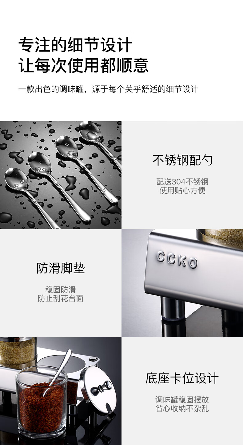 CCKO seasoning box kitchen seasoning jar seasoning box 304 stainless steel salt shaker storage rack seasoning jar seasoning bottle storage box 304 stainless steel single flavor seasoning jar