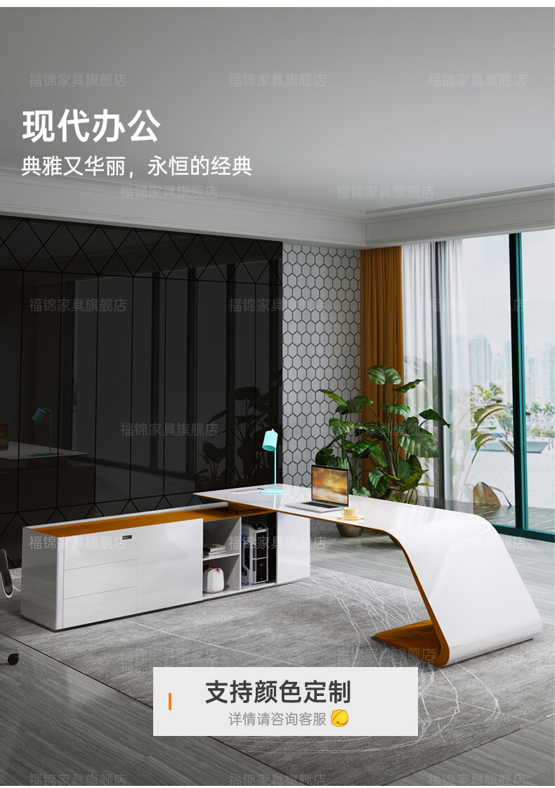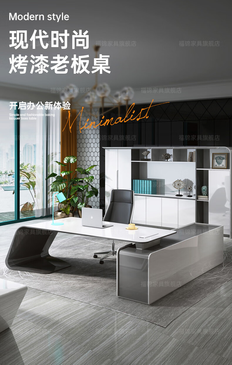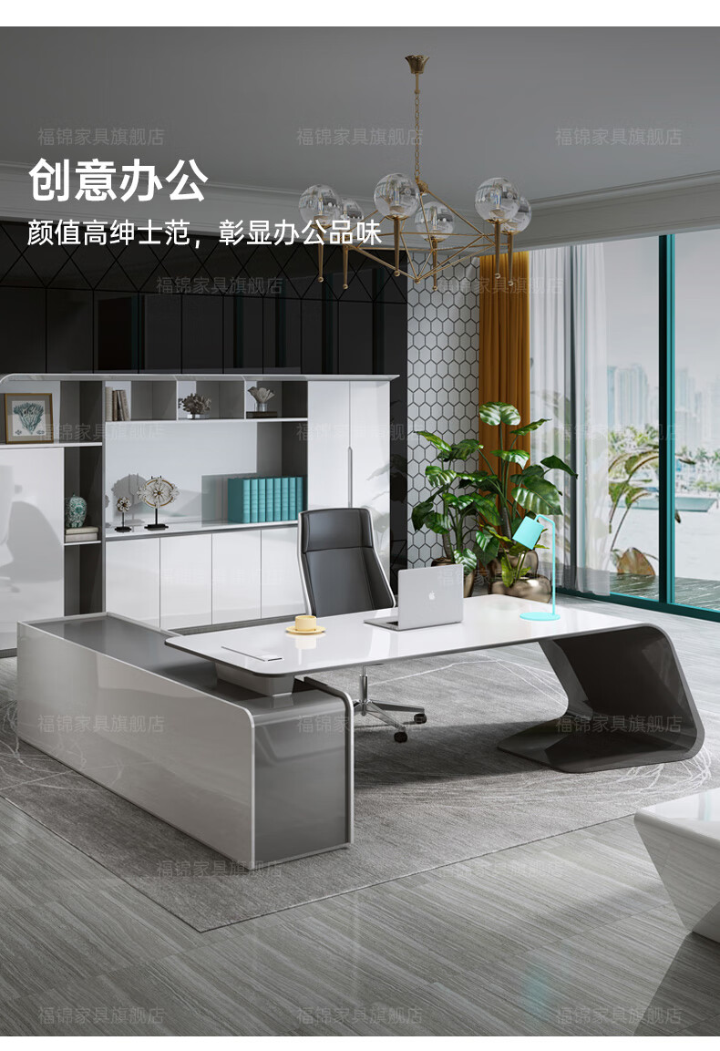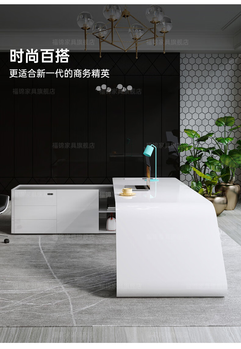 FUJIN boss desk white painted executive desk high-end office desk modern manager desk fashionable supervisor desk boss desk and chair 1.6 meters left side cabinet