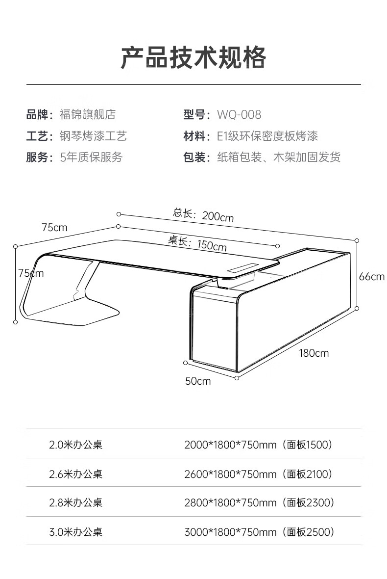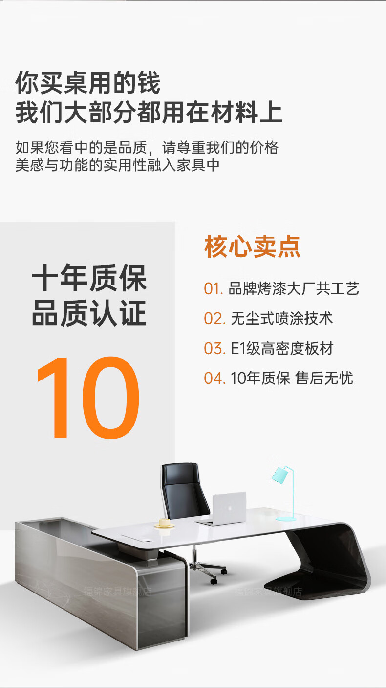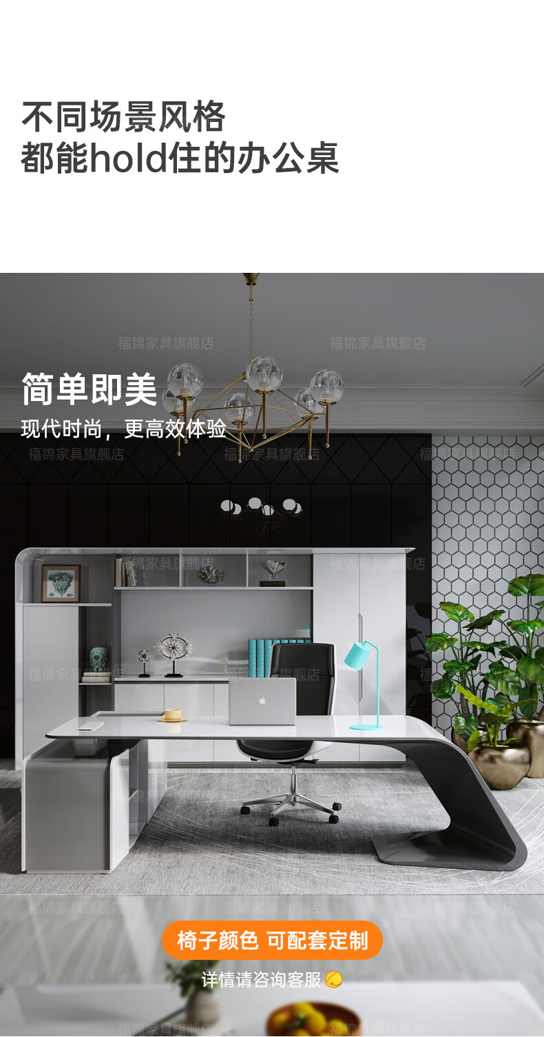 FUJIN boss desk white painted executive desk high-end office desk modern manager desk fashionable supervisor desk boss desk and chair 1.6 meters left side cabinet