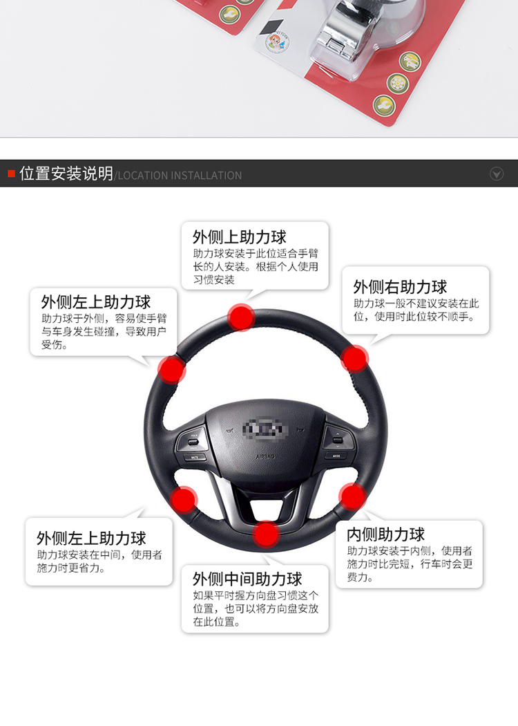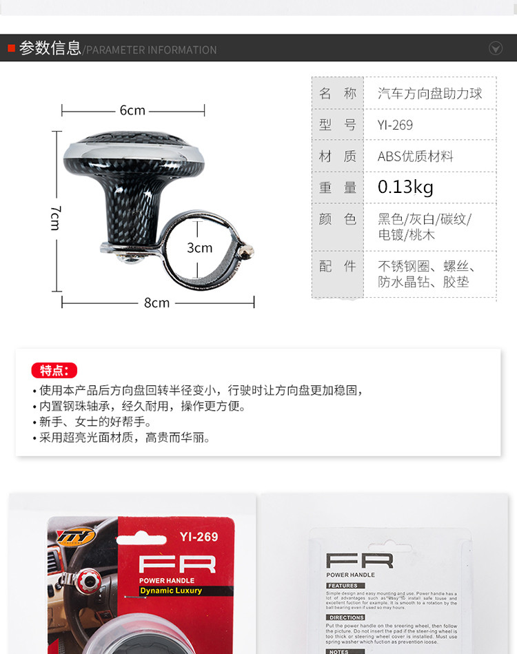 Car steering wheel power ball with bearing metal steering gear truck handle steering wheel assistor labor saver YI-269 black