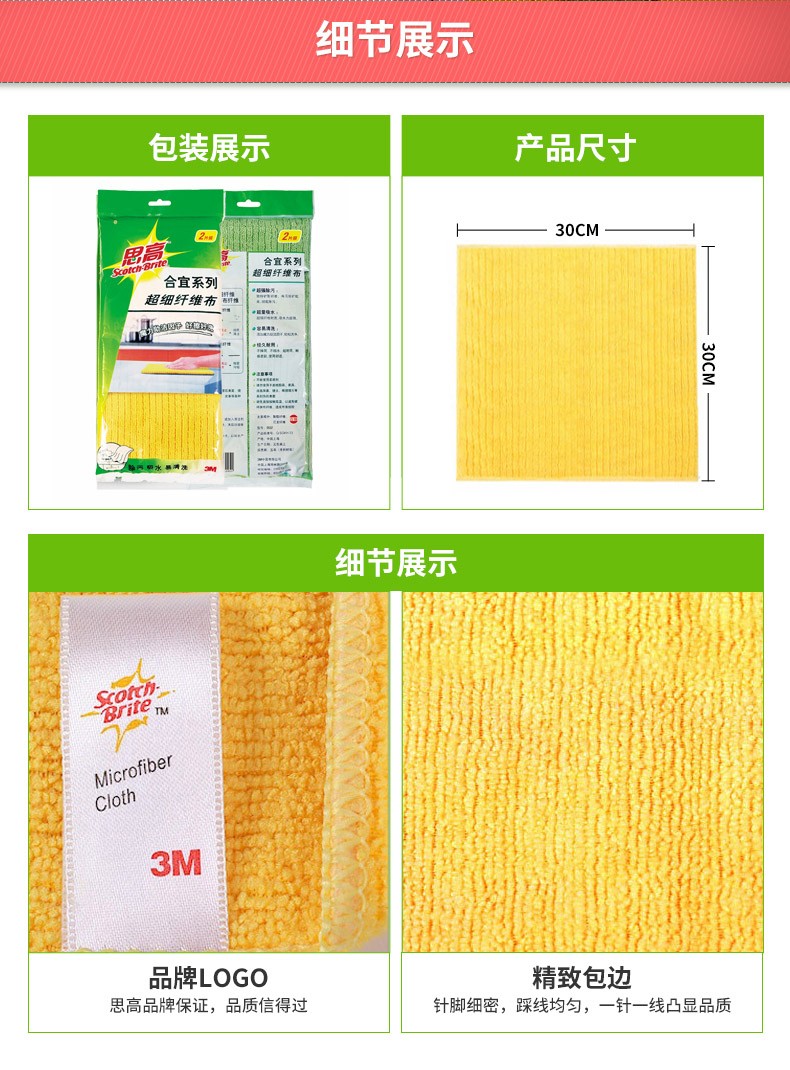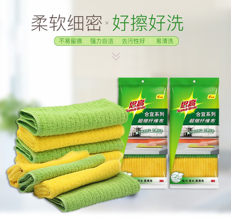 3M Scotch Heyi series microfiber cloth absorbent rag scouring pad pot washing dish cloth cleaning cloth 4 pieces 4 pieces * 5 pack