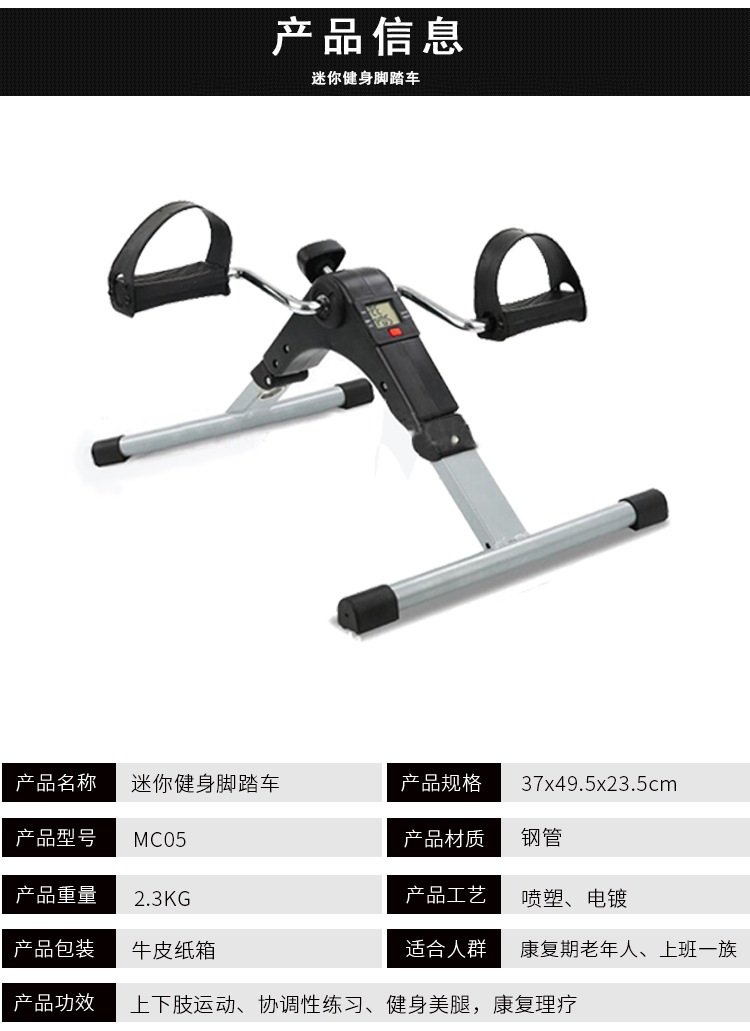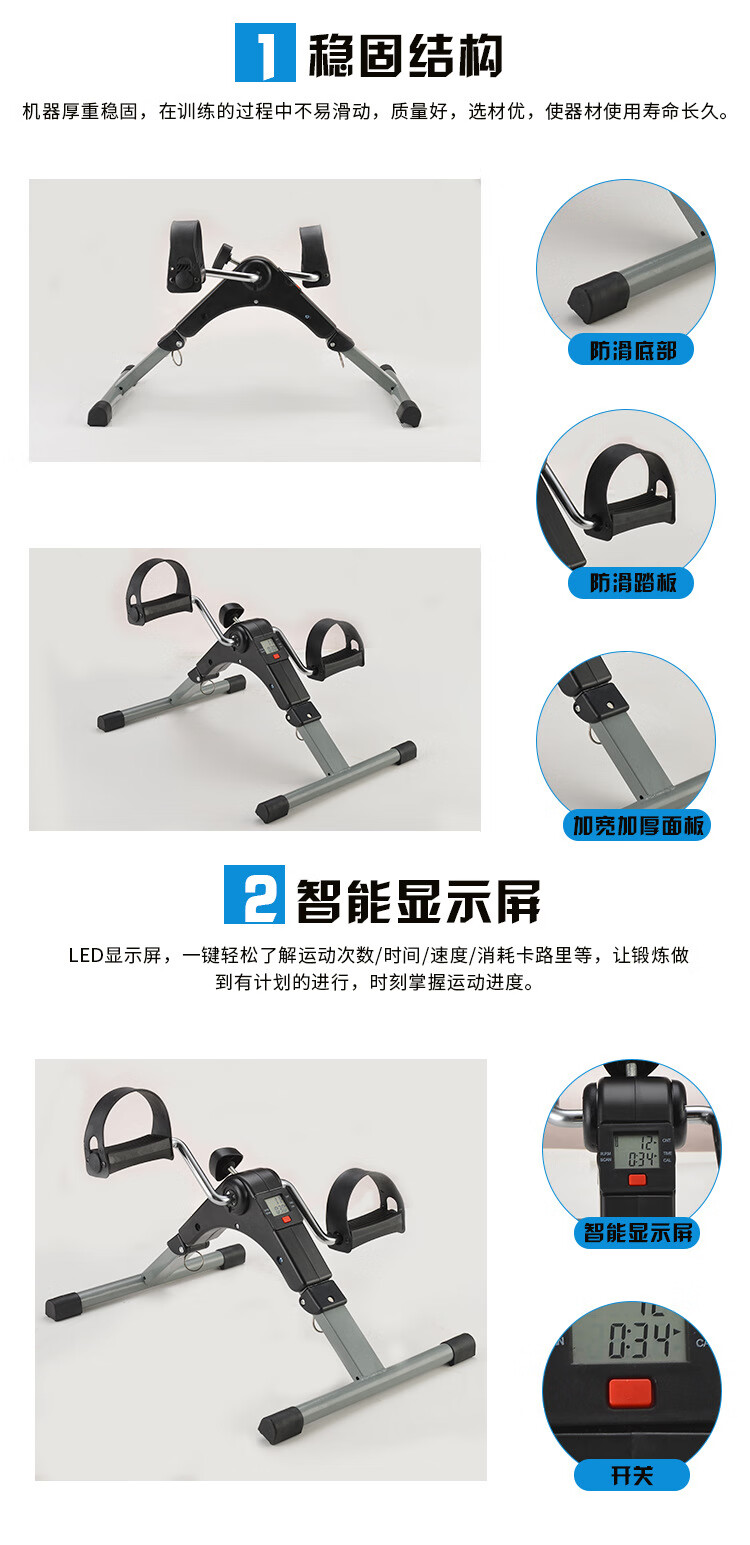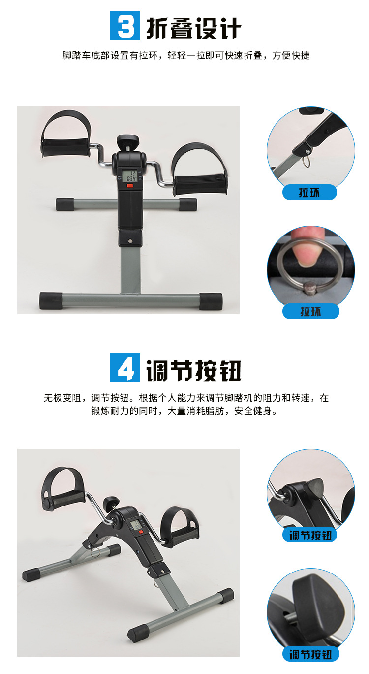 Mini exercise bike folding bed rehabilitation training bicycle elderly people's sports rehabilitation vehicle lower limb power vehicle indoor rehabilitation machine exercise bike gray