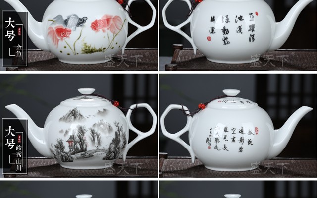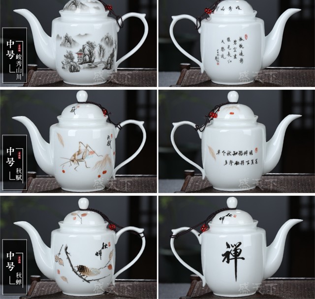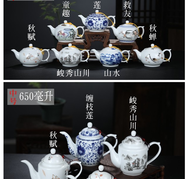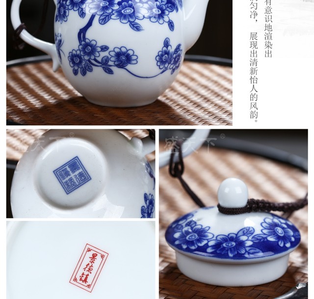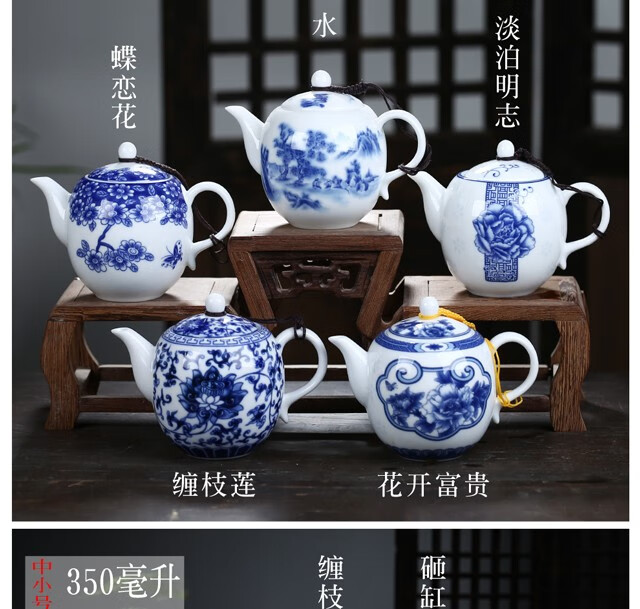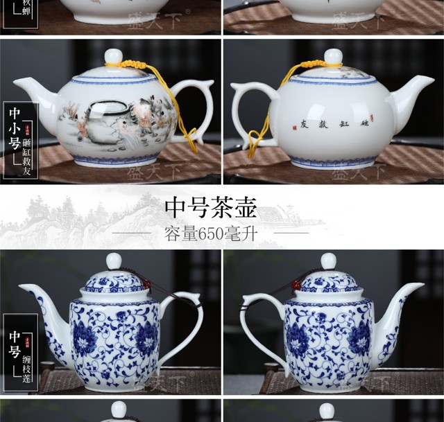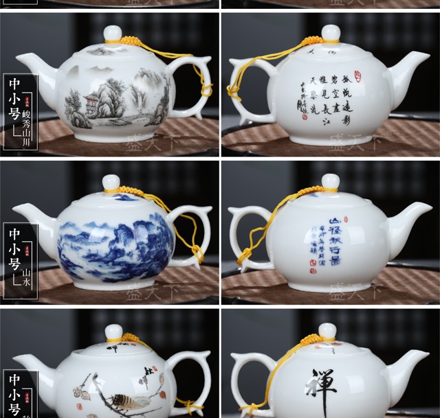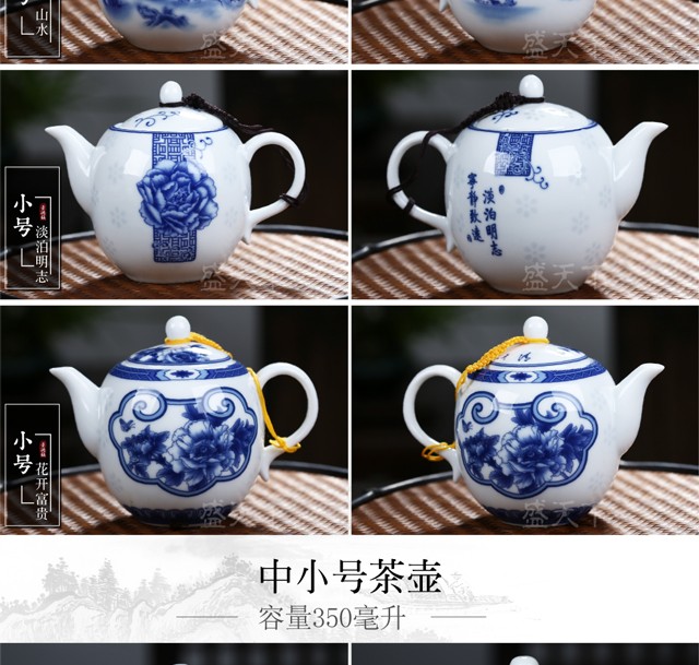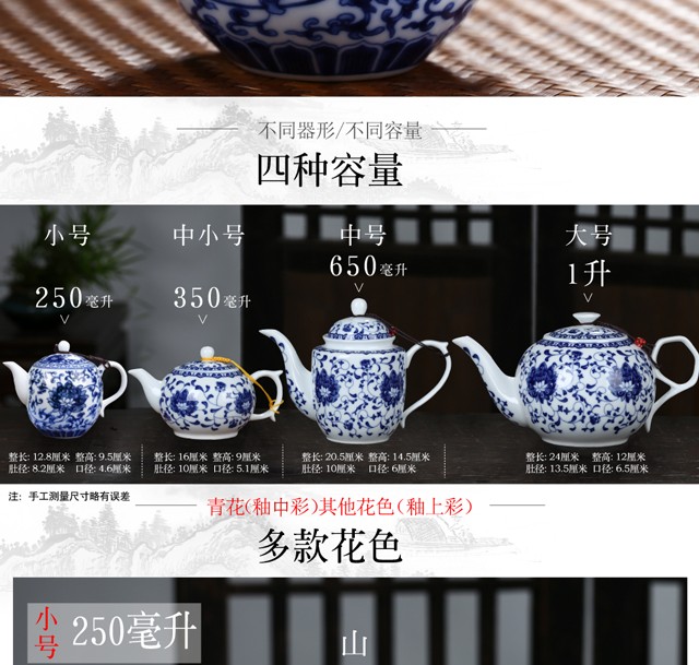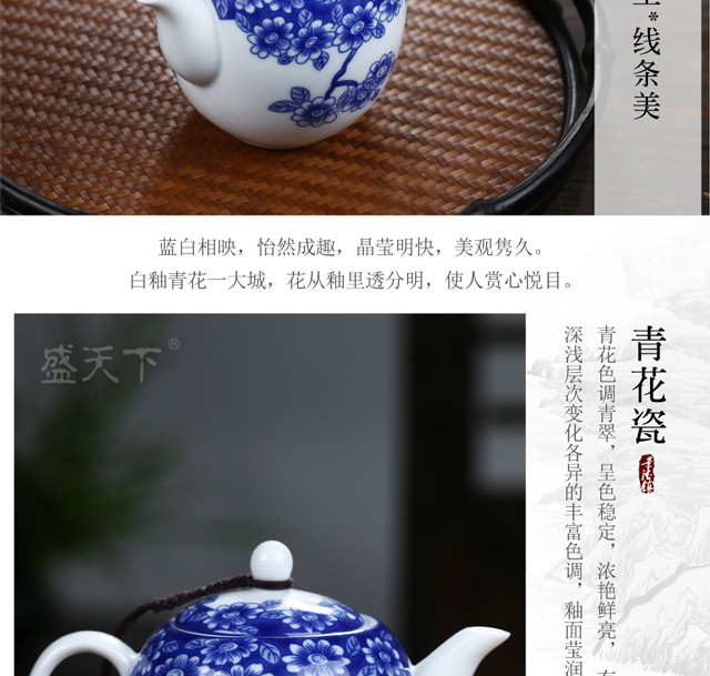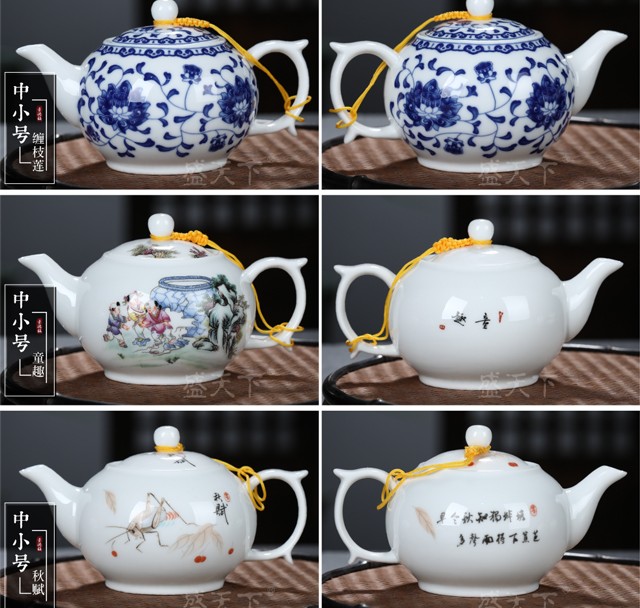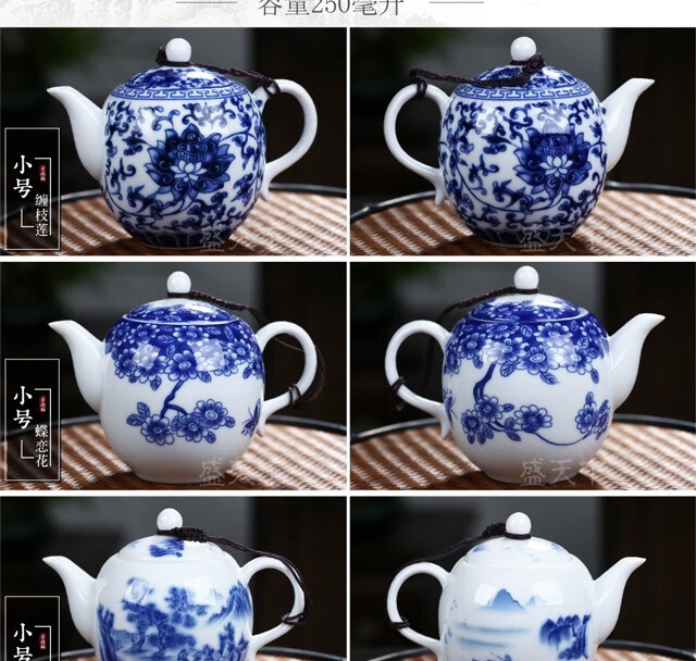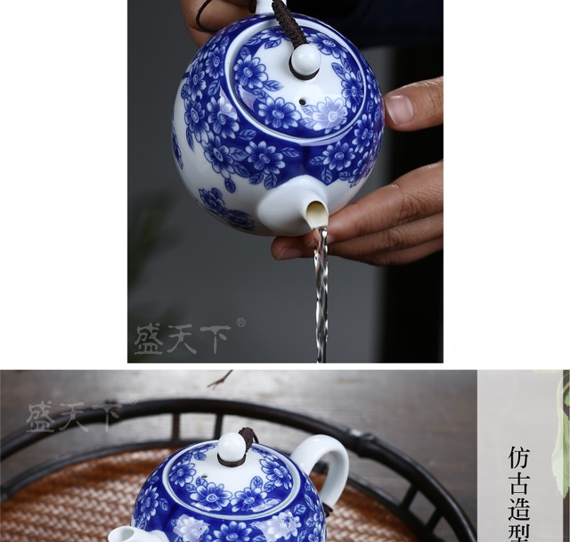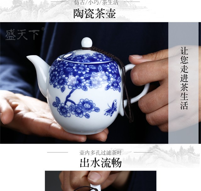 Shengtianxia Jingdezhen Ceramic Blue and White Porcelain Small Teapot Glazed Color Filter Tea Single Pot Small Kung Fu Tea Set Hand-held Pot Panzhilian-320ML