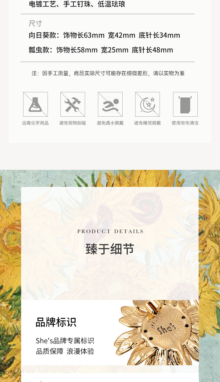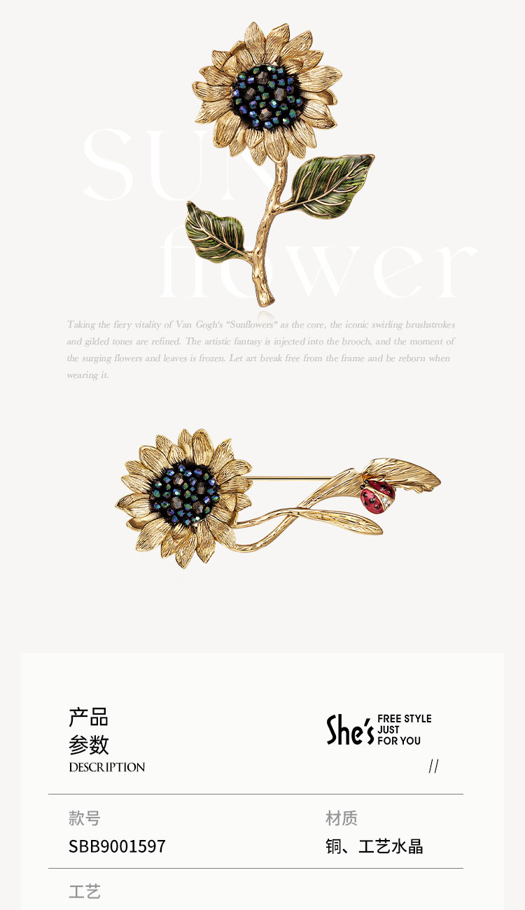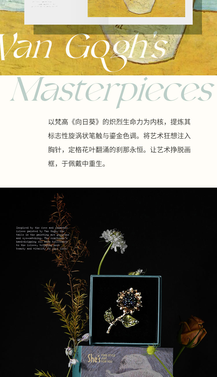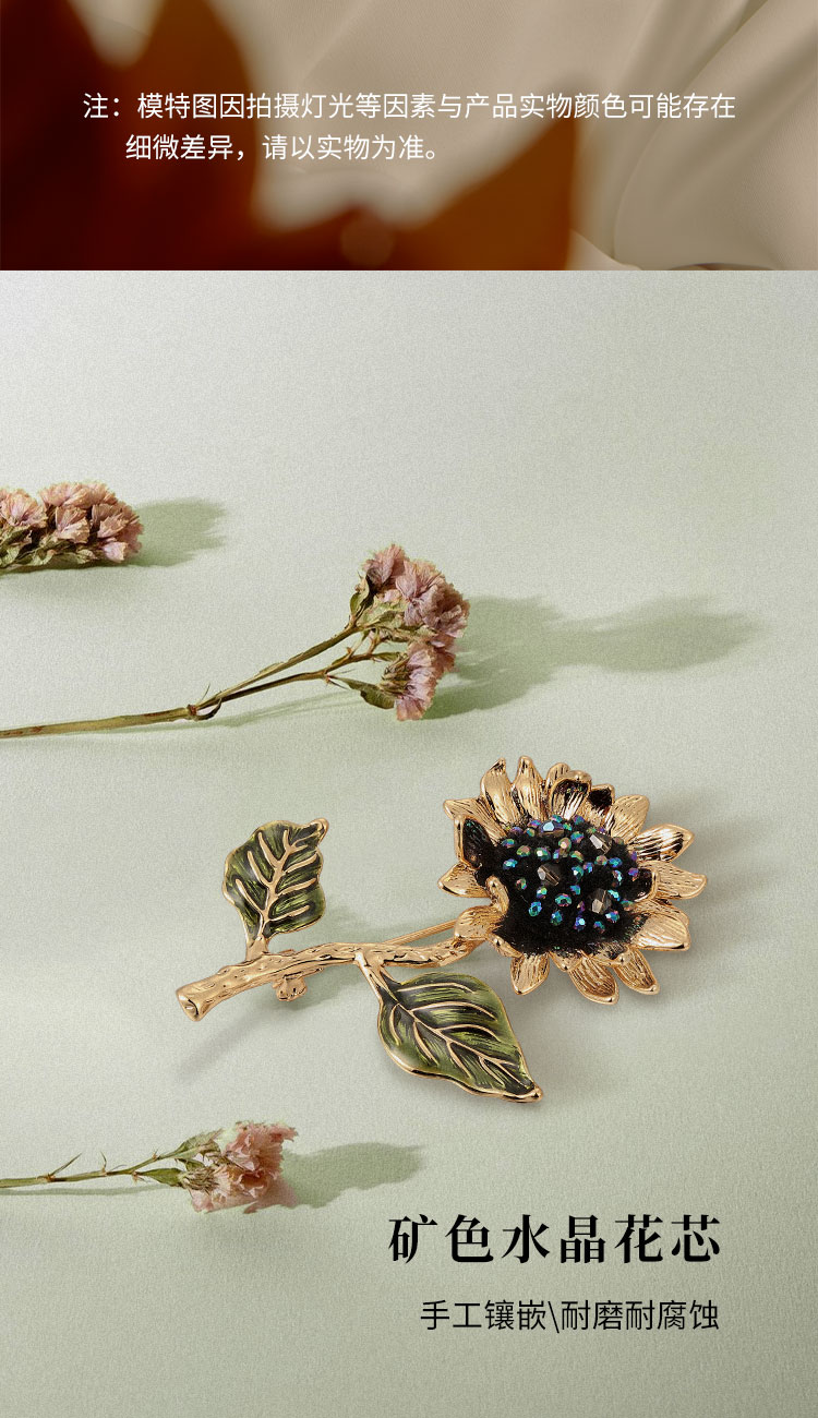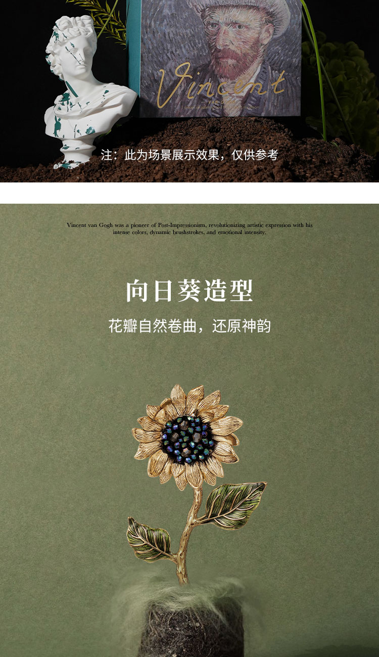 She s Akiko Van Gogh Sunflower Original Handmade Beaded Crystal Brooch High-End Exquisite Corsage Pin Birthday Gift for Women Golden Sunflower D0