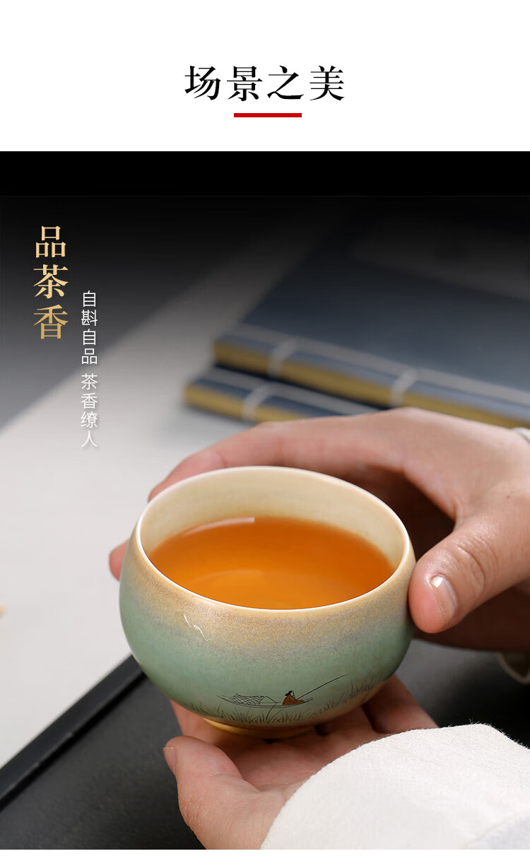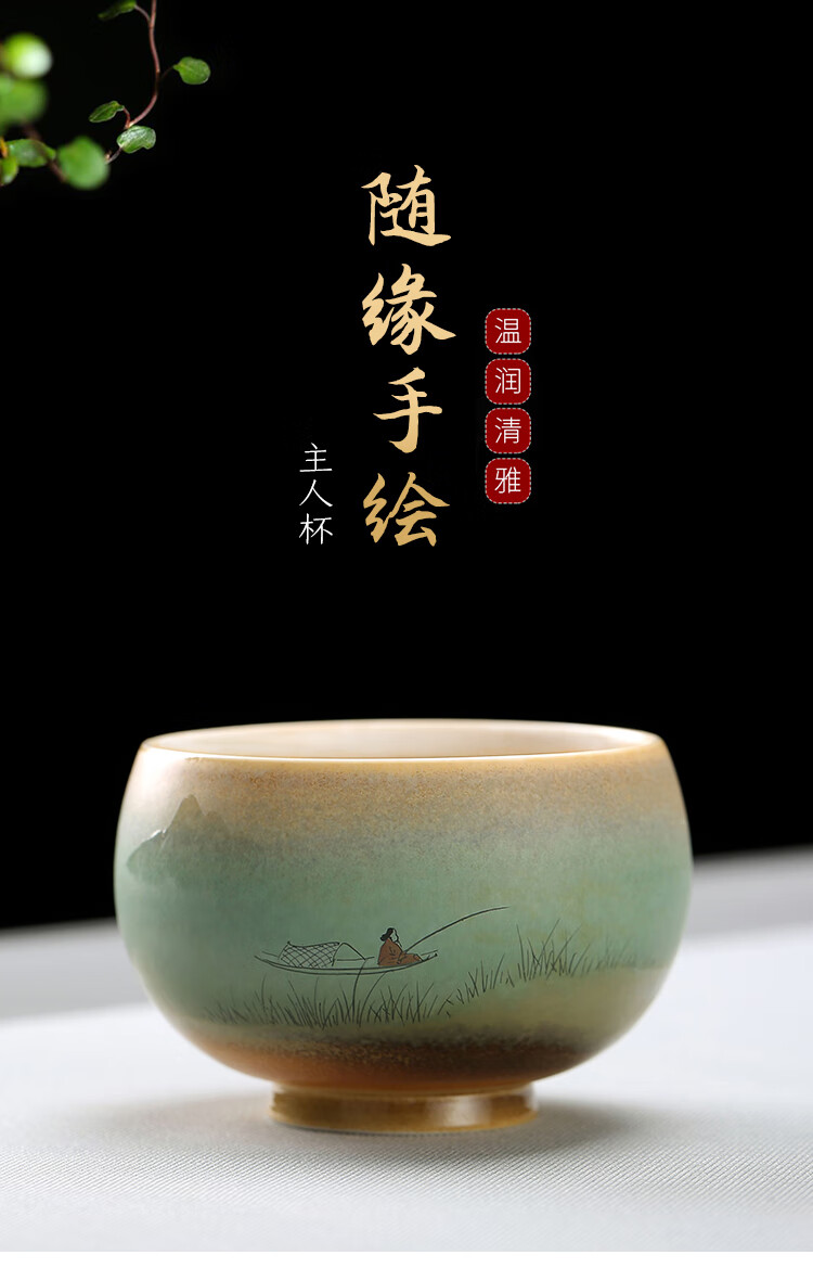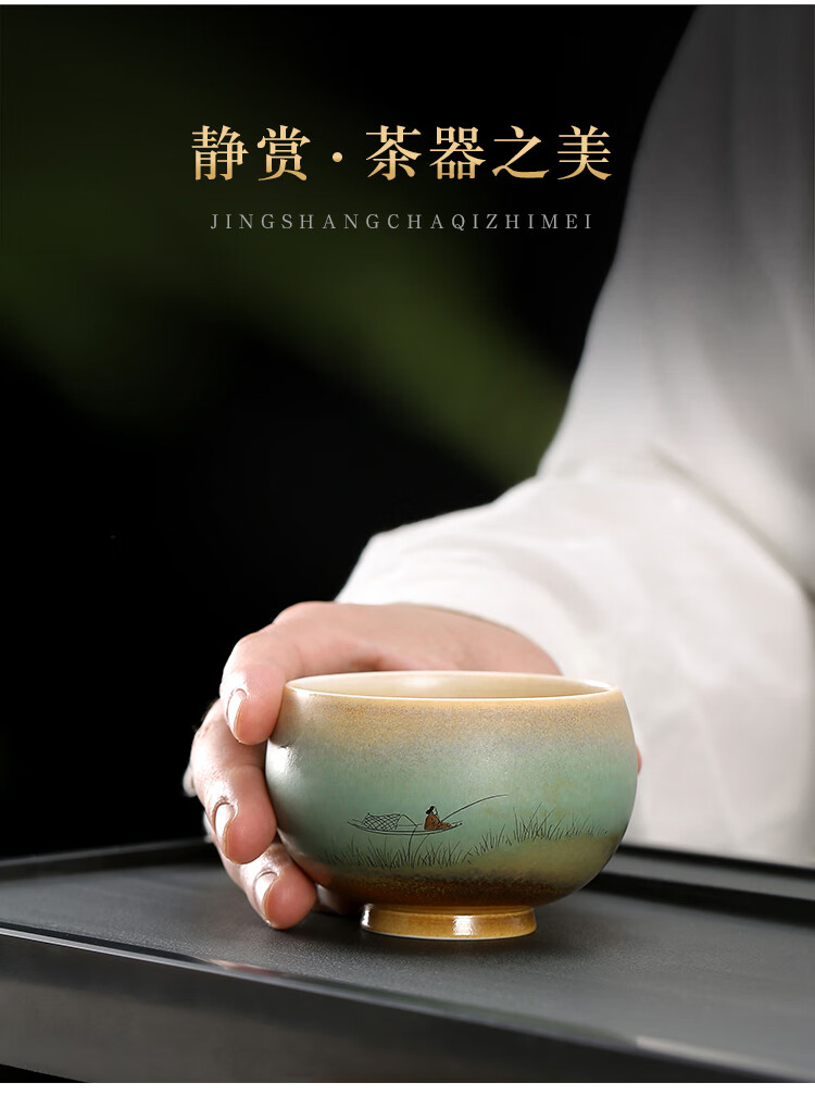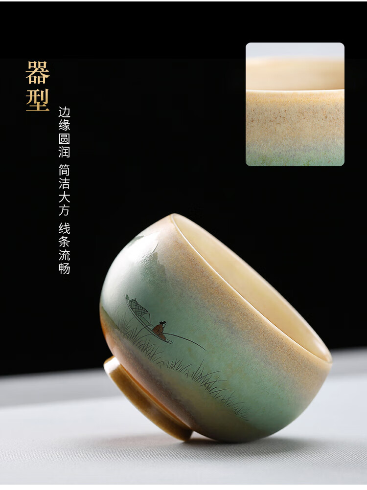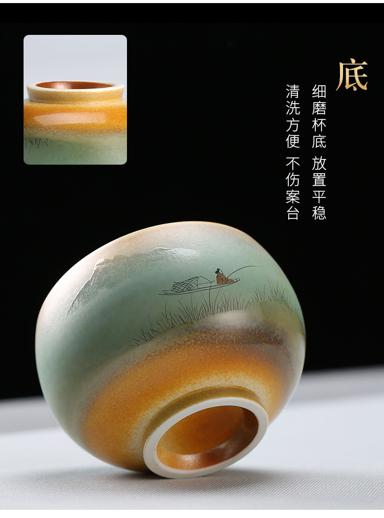 Gold inlaid jade hand-painted tea cup, ceramic kiln-turned single cup small water cup master cup Kung Fu tea set gift box 100ML random hand-painted cup