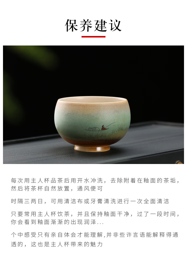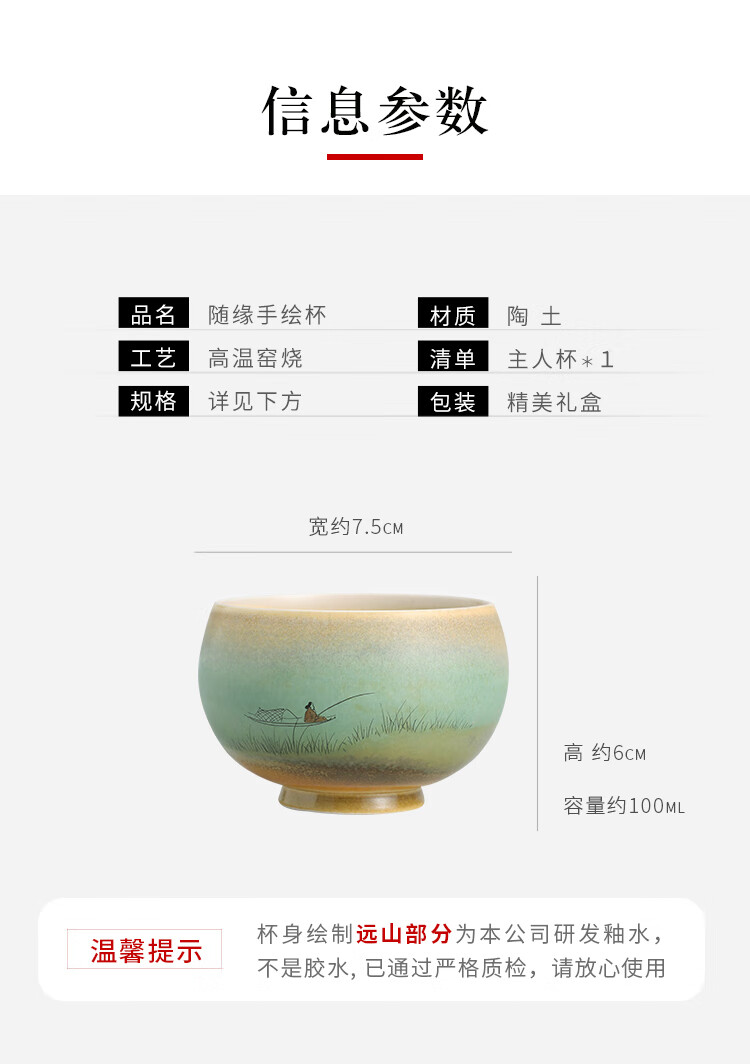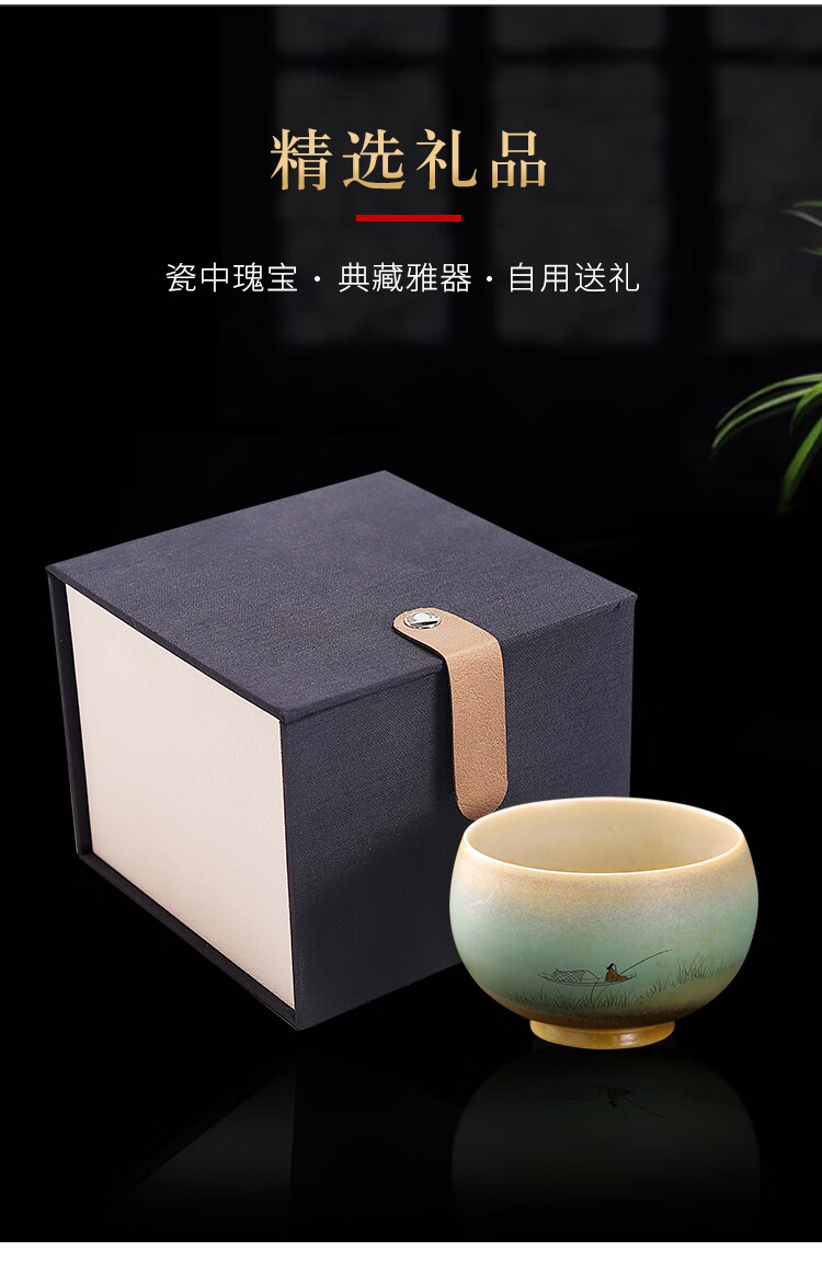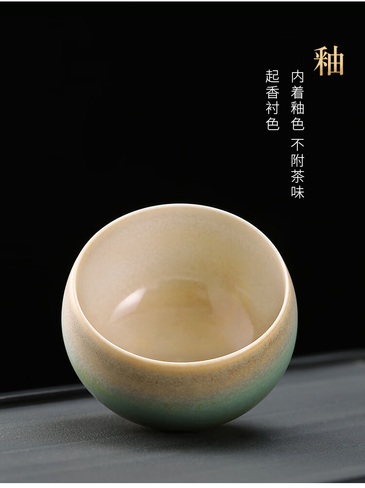Gold inlaid jade hand-painted tea cup, ceramic kiln-turned single cup small water cup master cup Kung Fu tea set gift box 100ML random hand-painted cup