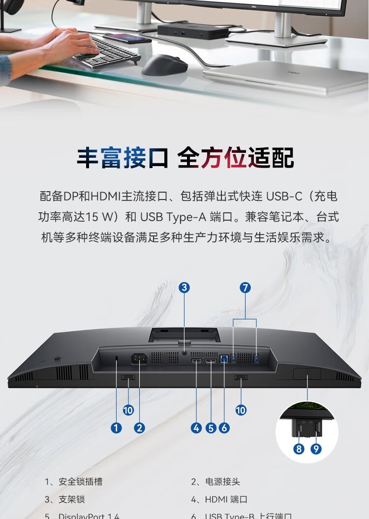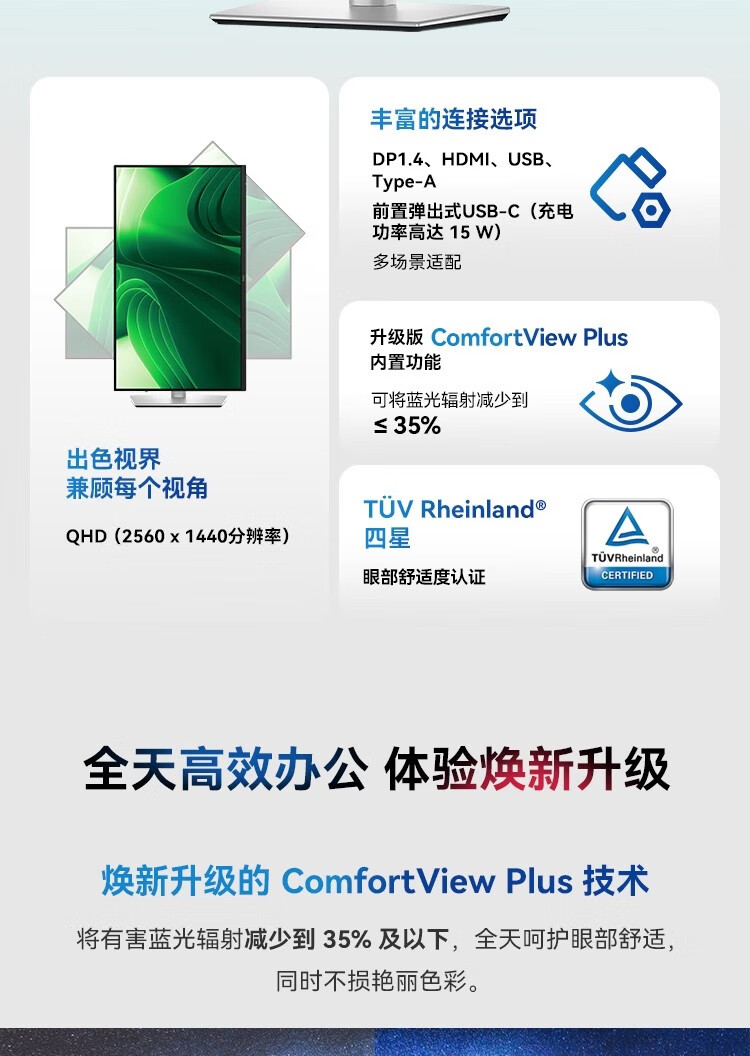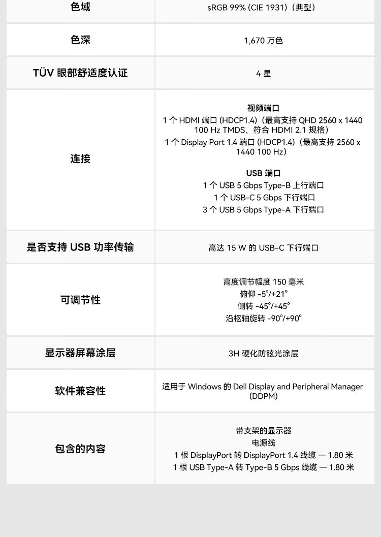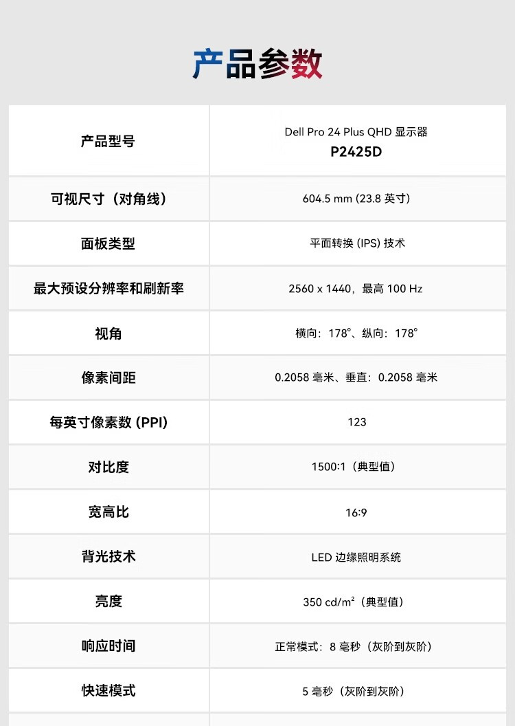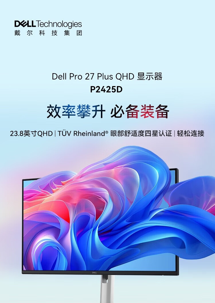 Dell (DELL) P2425D 23.8-inch 2K high-definition display IPS screen 100HZ Hardware anti-blue light Rotate and lift without screen flicker Support wall-mounted P2423D upgraded version P2425D 100HZ (HDMI+dp) 3-year warranty