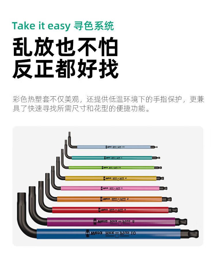 WERA German hexagonal wrench single 950 imported extended plum blossom 6-corner screwdriver six-sided hexagonal L-shaped wrench 2.0 (05022602001)