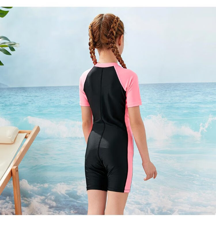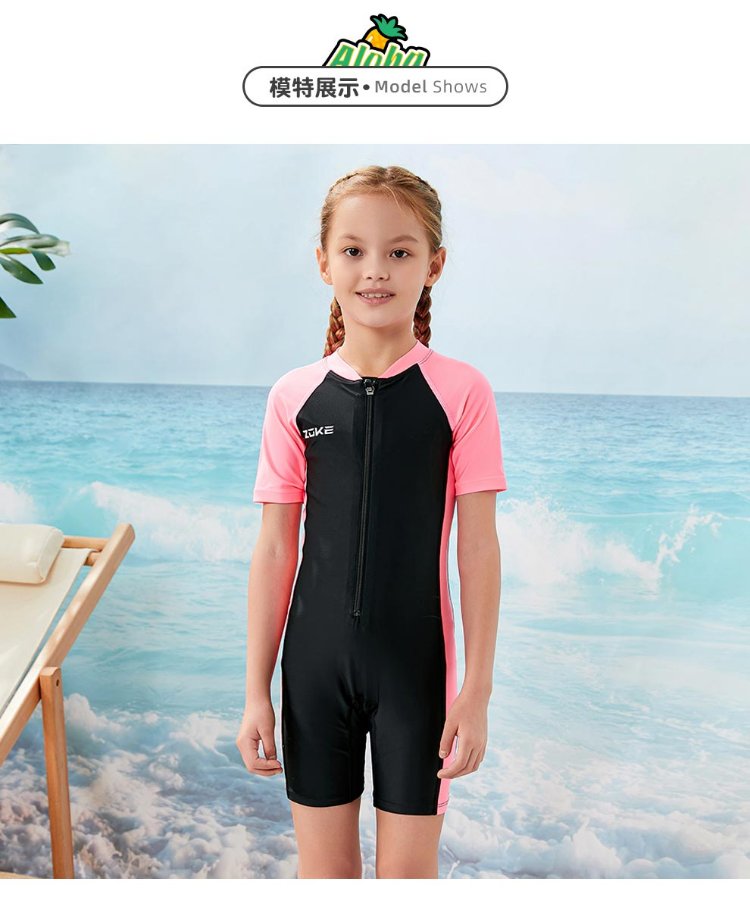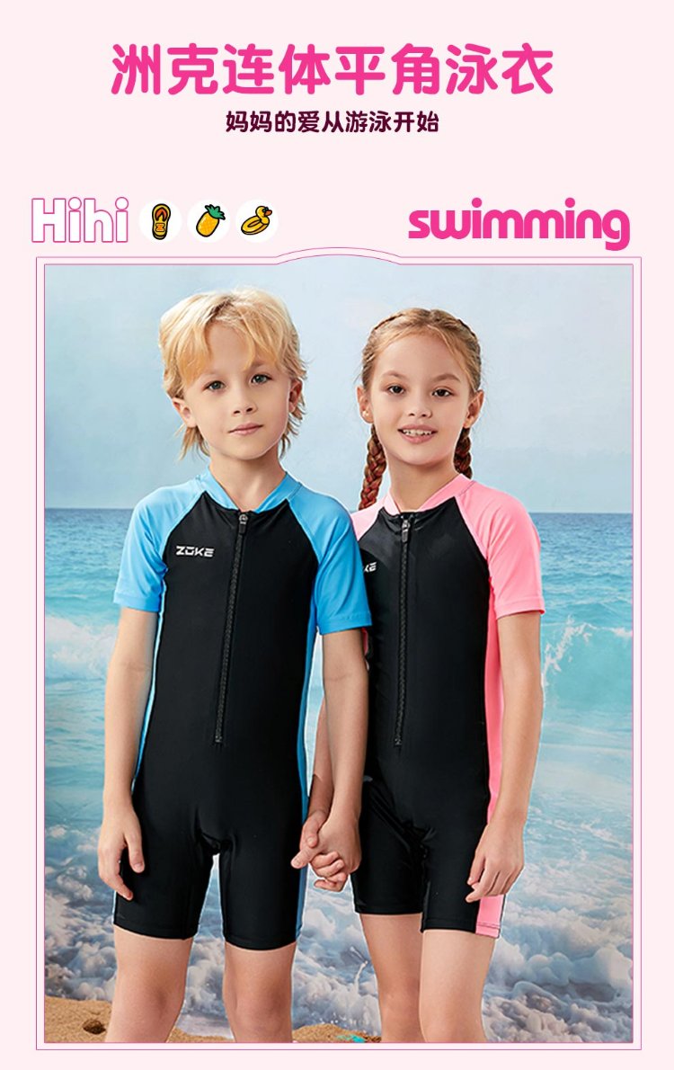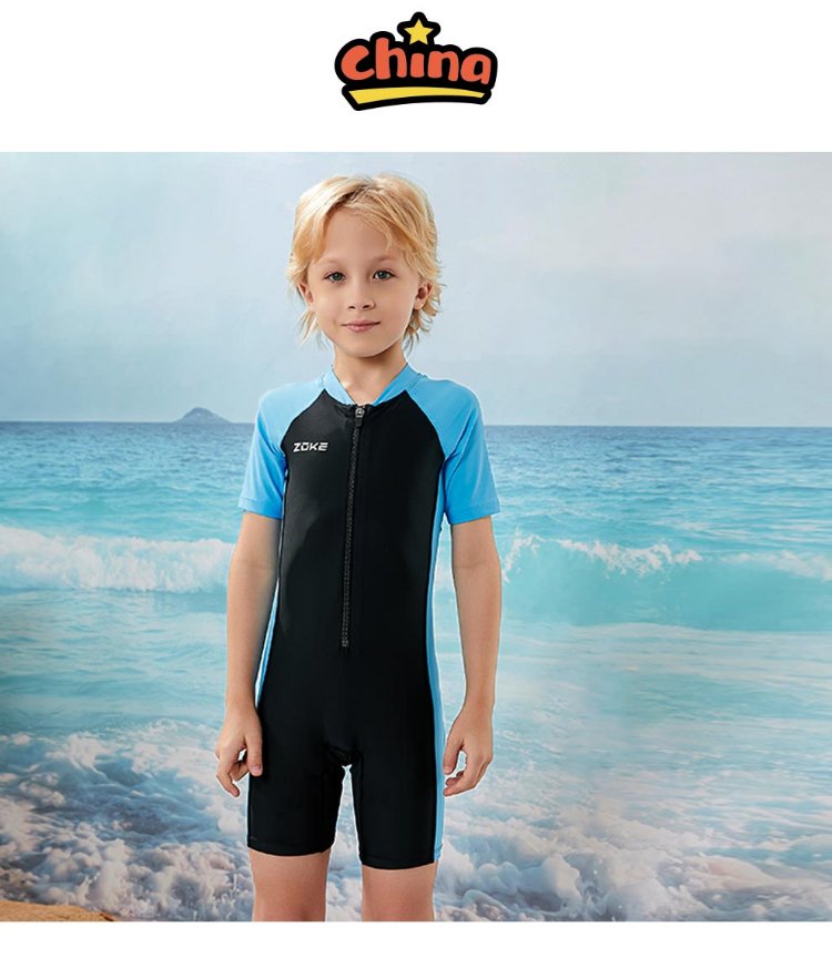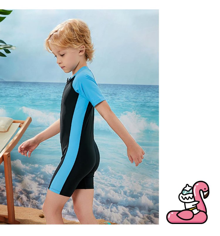 ZOKE children's swimsuit one-piece boys and girls boxer short-sleeved training swimsuit 115604419 black/light blue 14