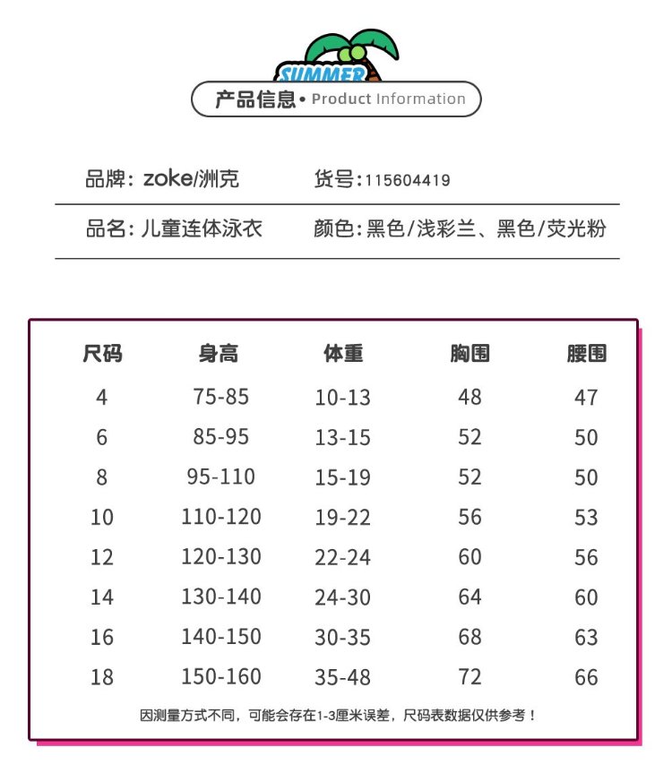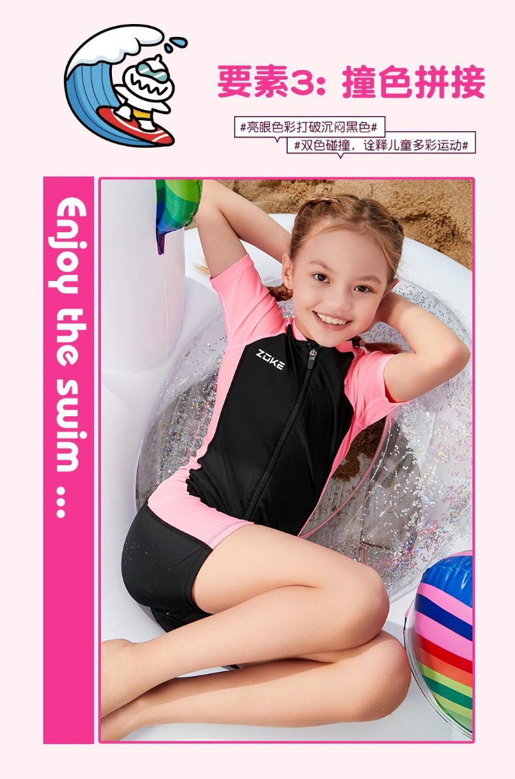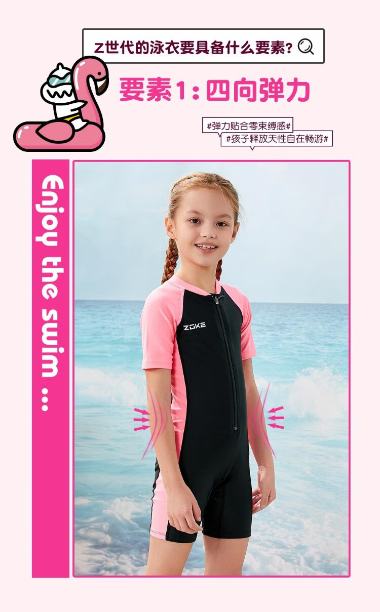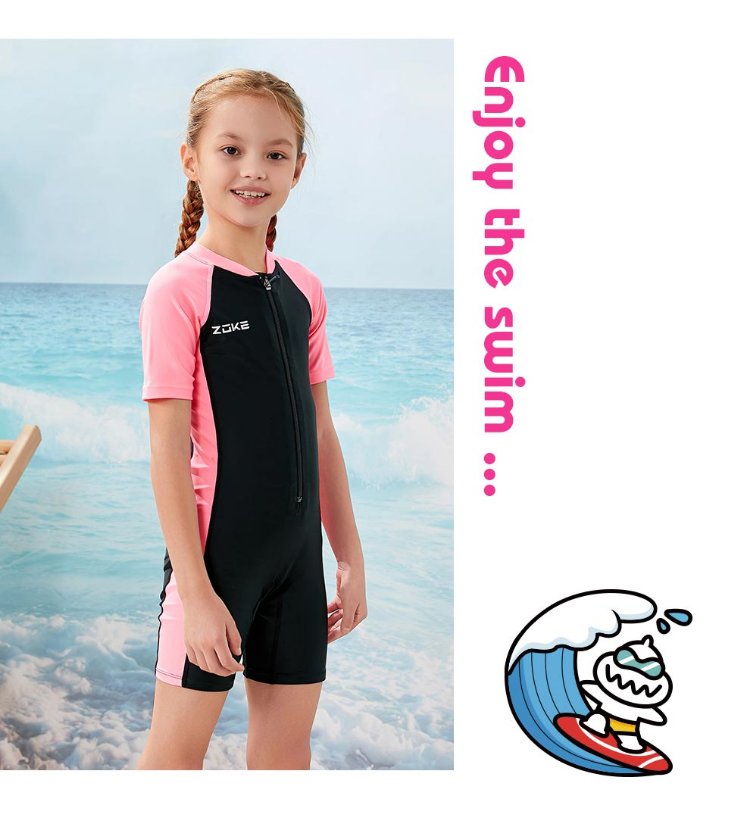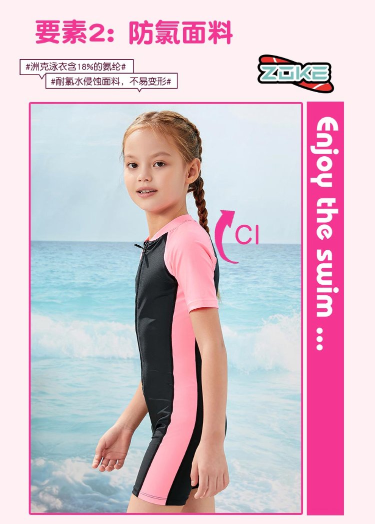 ZOKE children's swimsuit one-piece boys and girls boxer short-sleeved training swimsuit 115604419 black/light blue 14