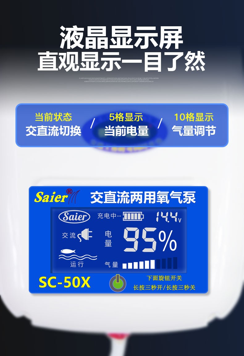 Saier Liba Oxygen Pump Aerator AC and DC dual-use fish charging oxygen pump outdoor fishing power outage oxygen 88X color screen model + 12 holes for air outlet - 400Jin Jin is equal to 0.5 kg fish