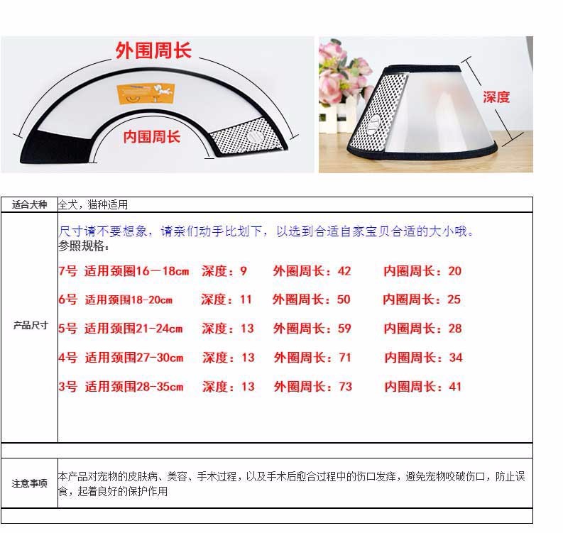 Moe's Elizabeth Circle Cat Shame Circle Dog Collar Anti-licking Headgear Pet Skin Neck Hood Hood No. 1 Neck Circumference 43~48cm