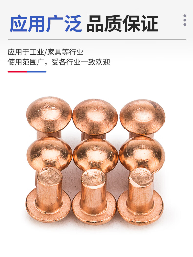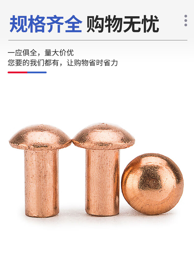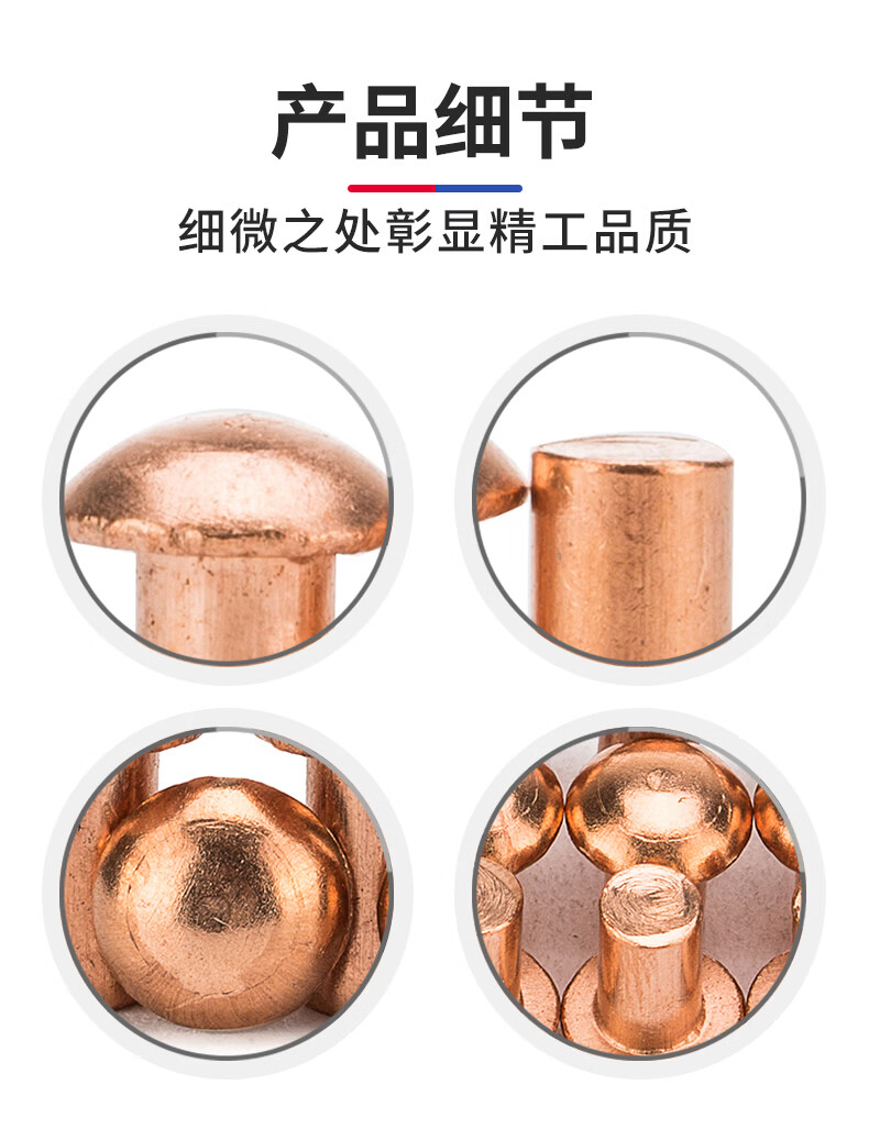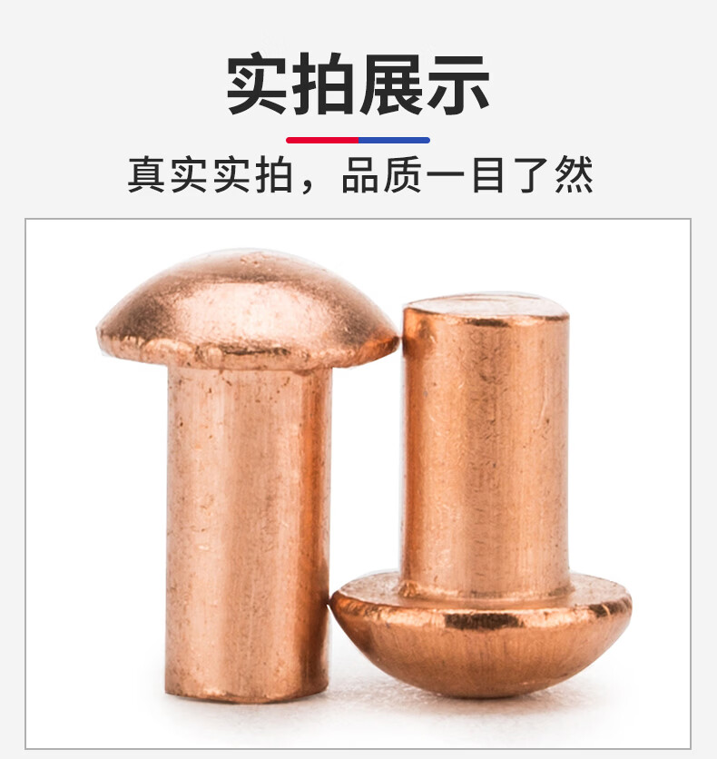 Jinggong copper rivets semi-round head solid rivets round head rivets copper solid copper rivets M2.5M3M4M5M6 3*5 (200 pieces)