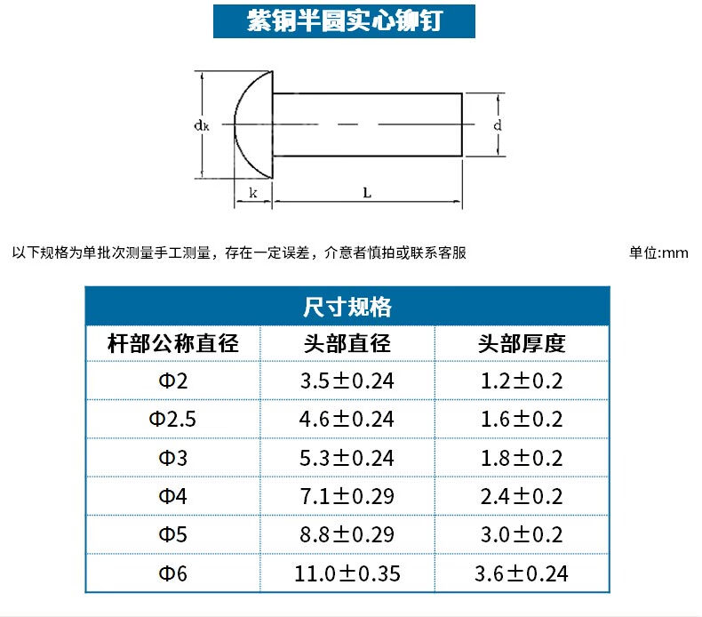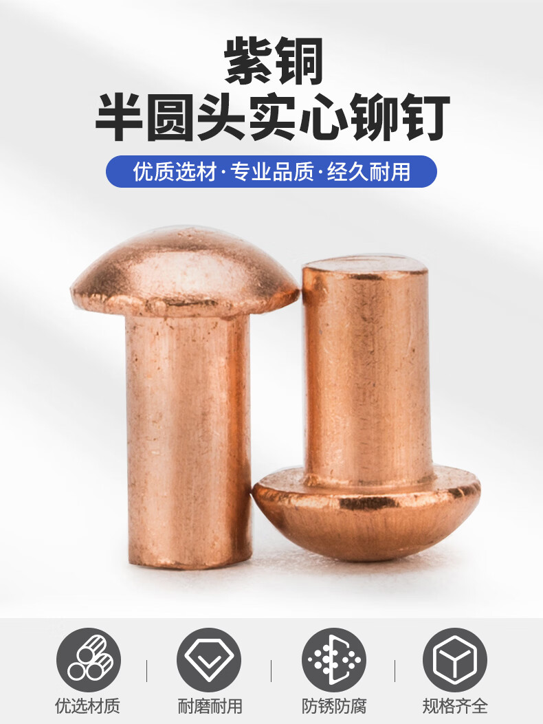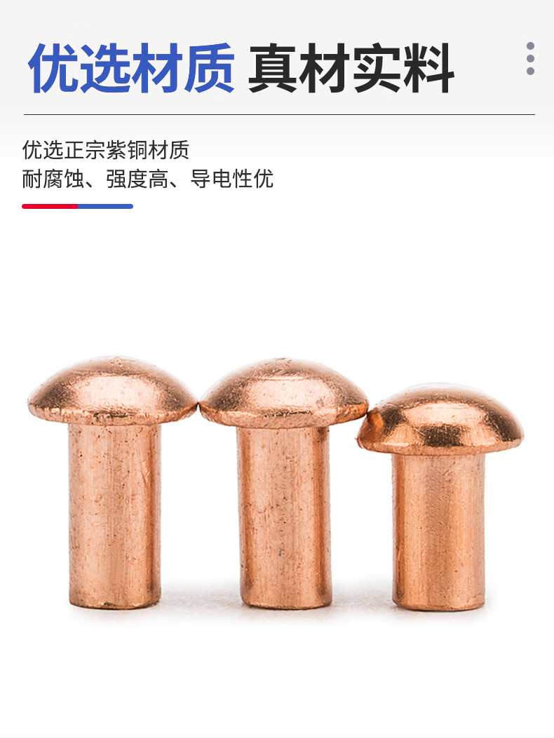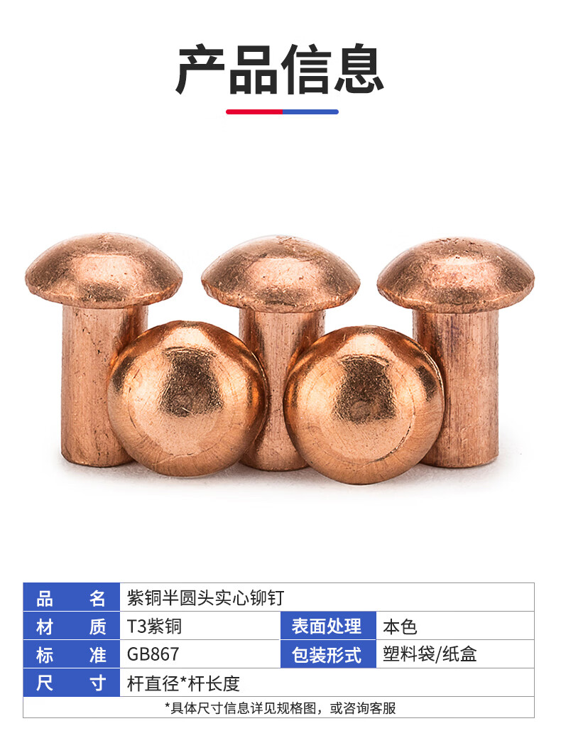 Jinggong copper rivets semi-round head solid rivets round head rivets copper solid copper rivets M2.5M3M4M5M6 3*5 (200 pieces)