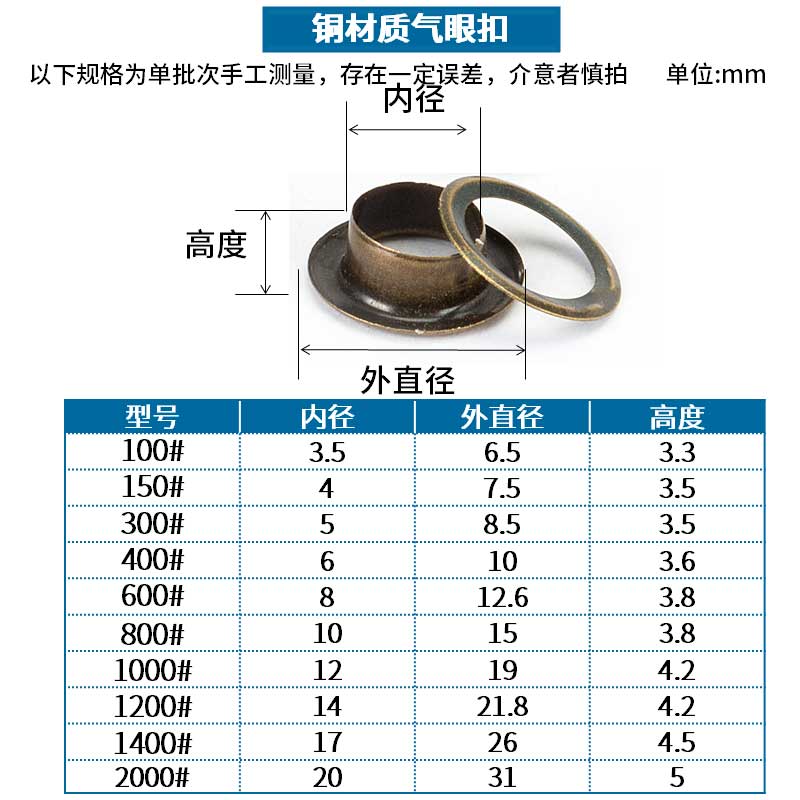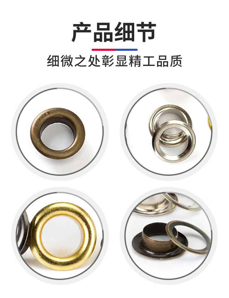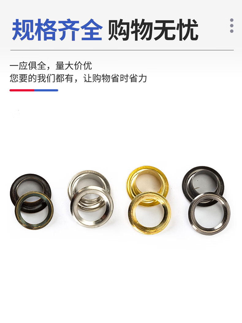 Jinggong copper material eyelet button hollow rivet hollow nail air eye buttonhole shoe eye button eyelet nail hollow rivet buttonhole silver 8mm 100 sets