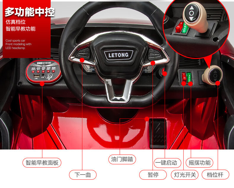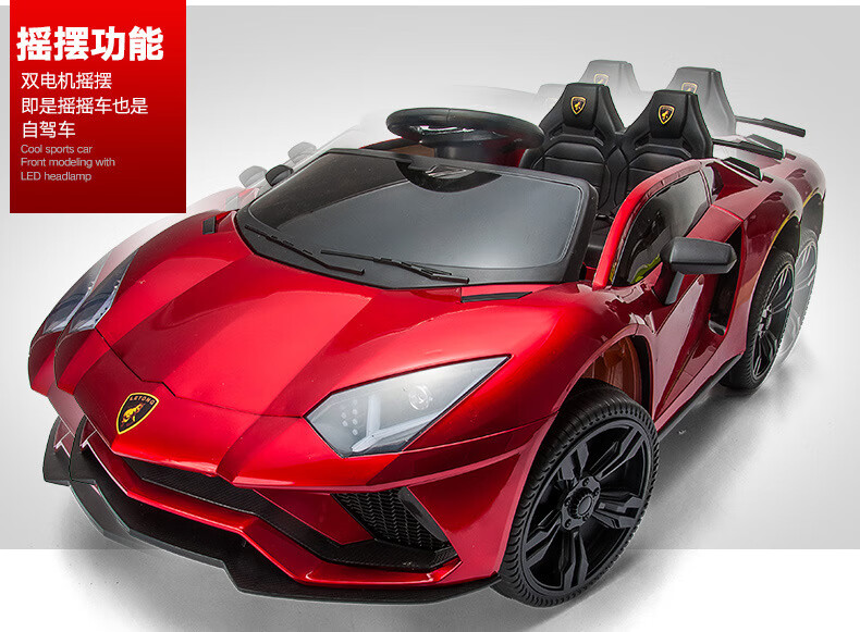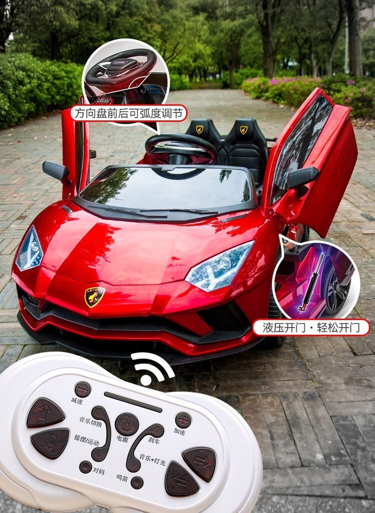 Shanghaojia children's remote control electric car can sit on four-wheel swing toy car and can drive battery-powered baby car for men and women. The top is painted red. Upgraded four-wheel drive + 12V large battery + leather seat + full function