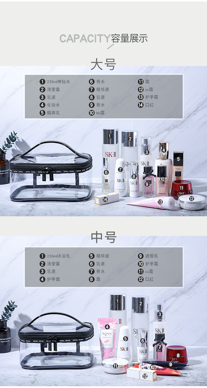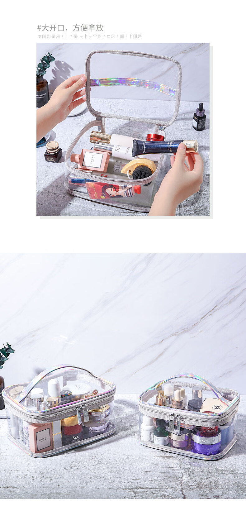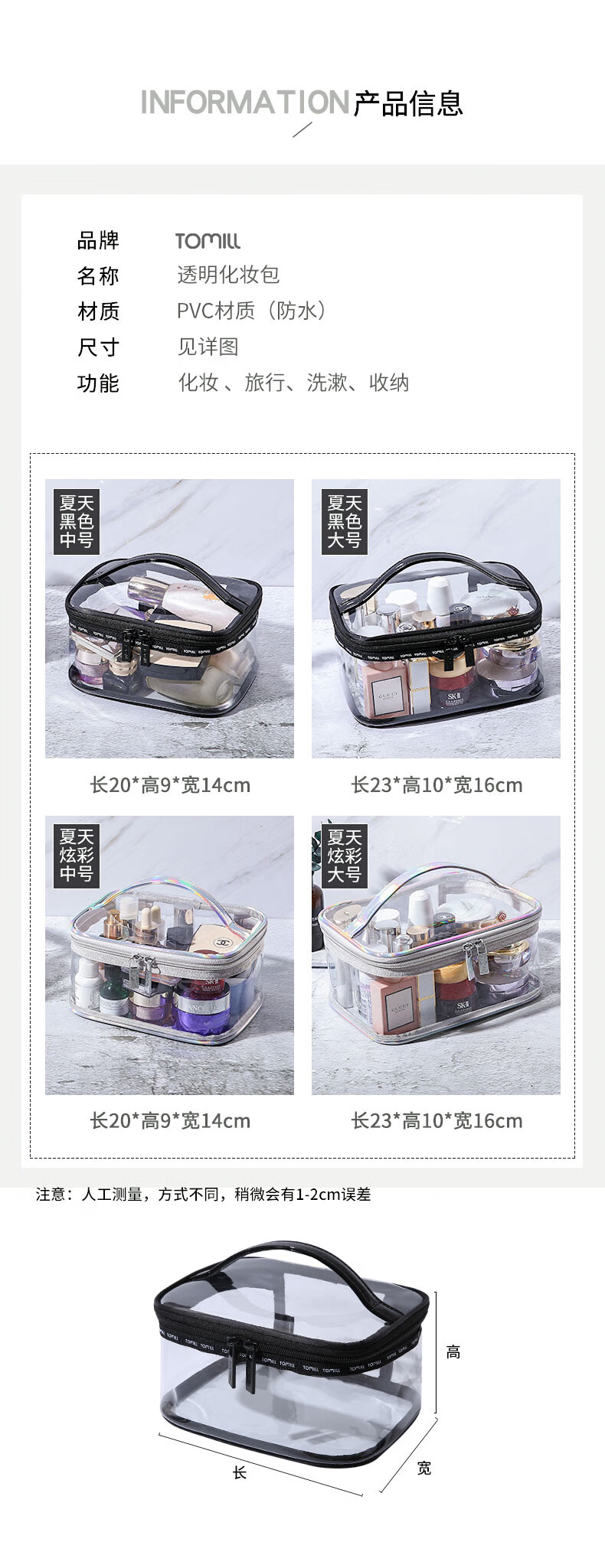 ToMill Transparent Cosmetic Bag Women's Waterproof Toiletries Bag Portable Travel Large Capacity Cosmetic Storage Bag Skin Care Product Storage Bag Summer-Colorful-Large Size