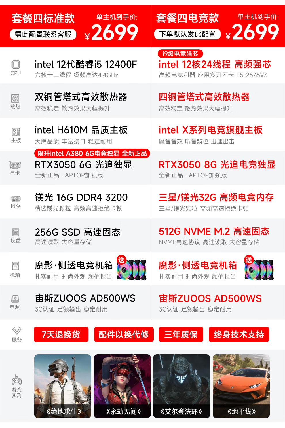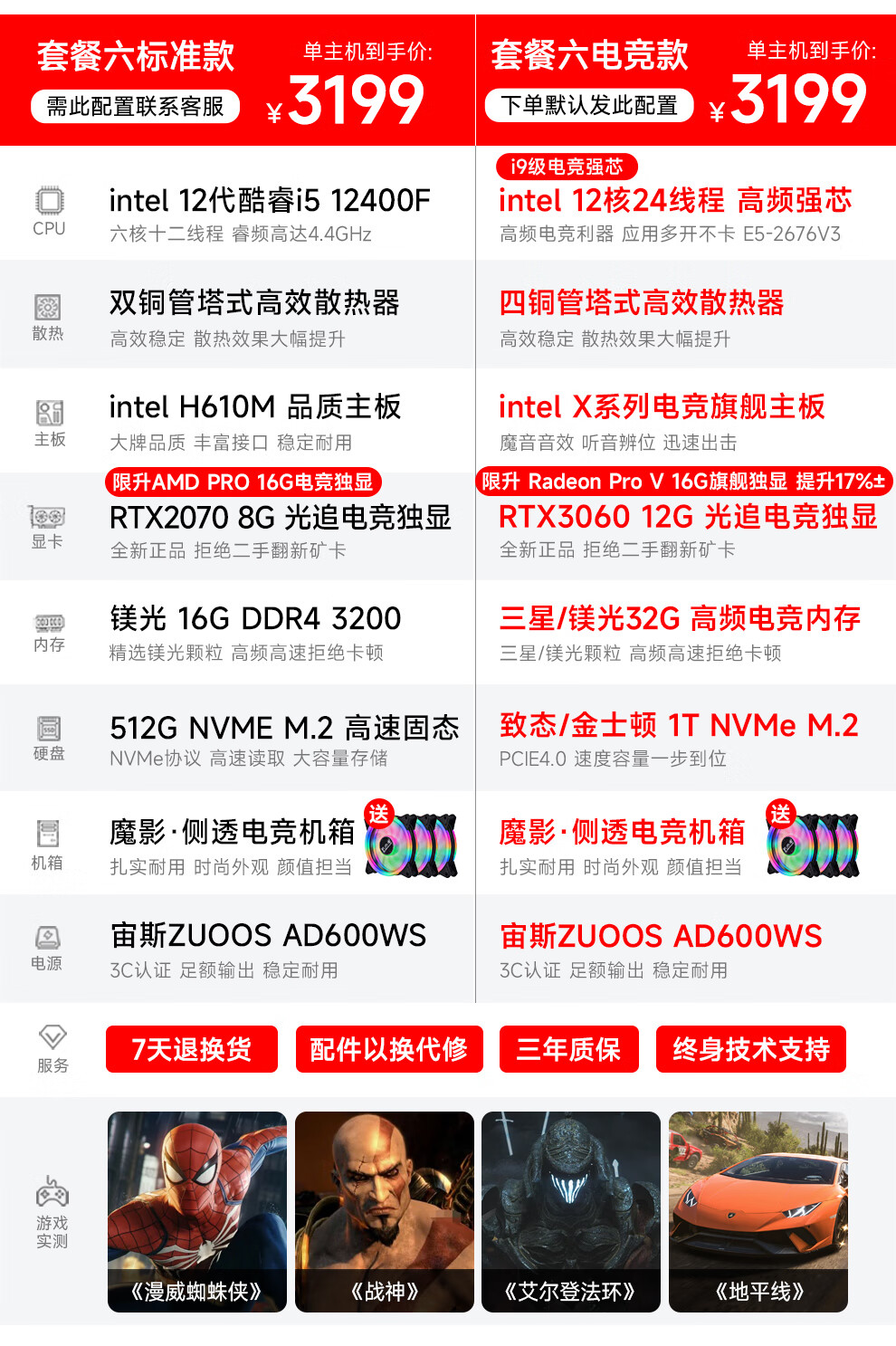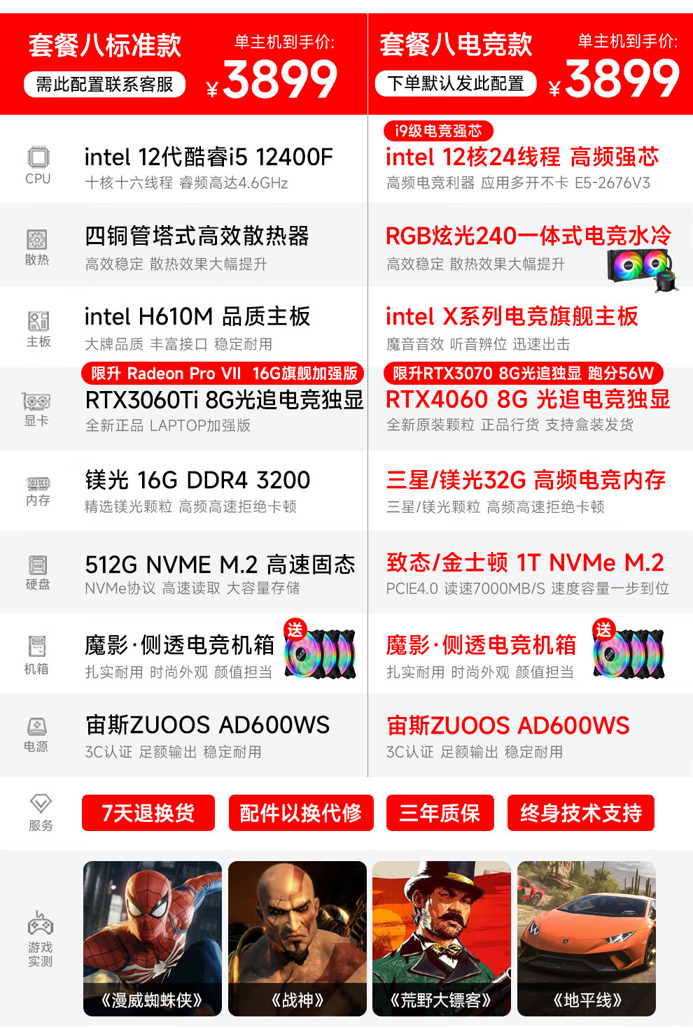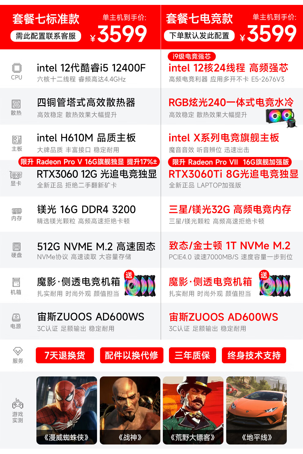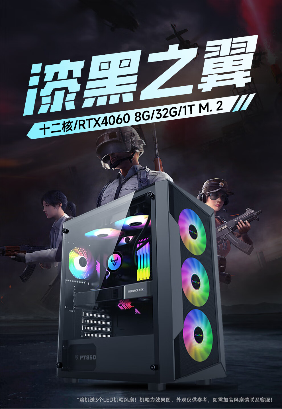 Huacheng 13th generation i5 13400F/12400F/12-core/RTX4060/3060 e-sports gaming computer desktop assembly computer host DIY complete machine complete design rendering 6 water-cooled e-sports model 32G+1T+3060 12G