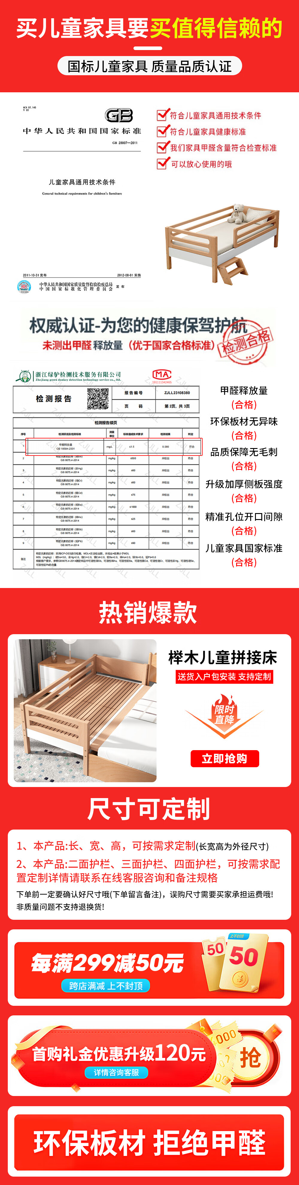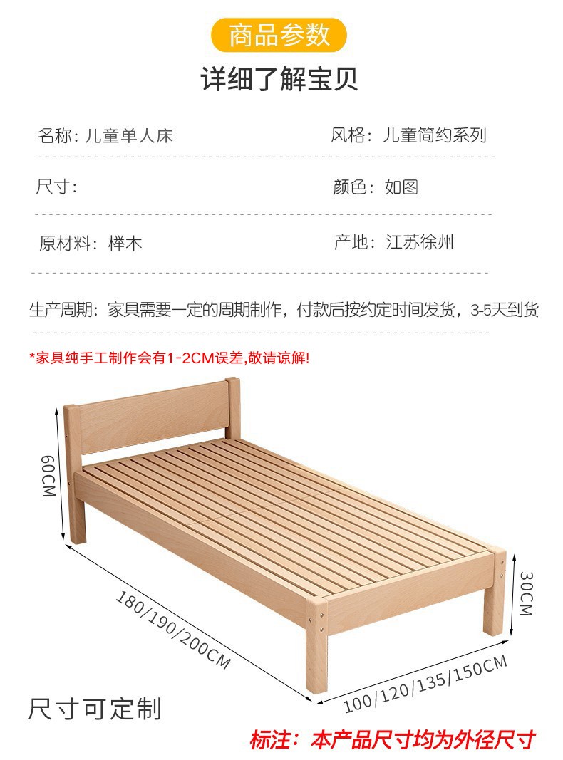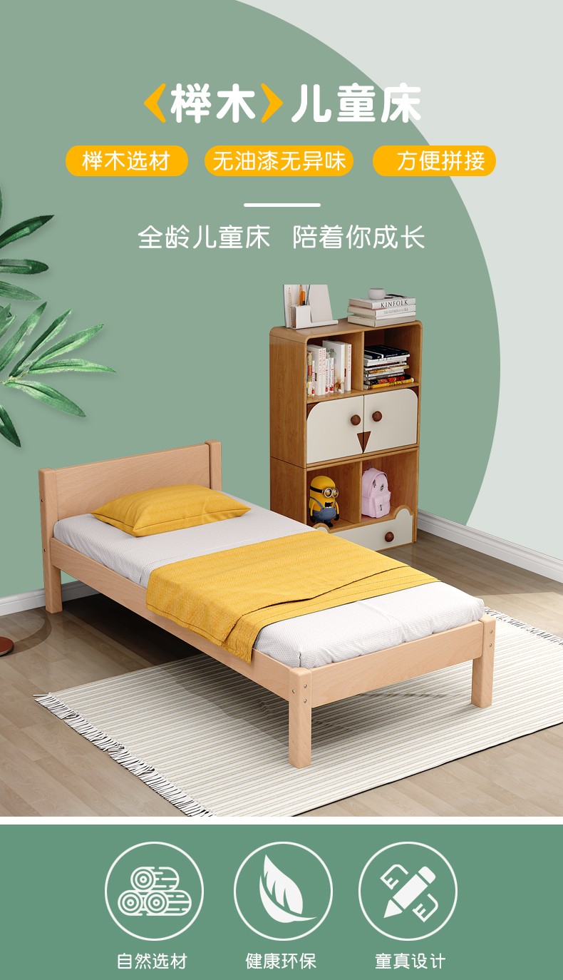 Juelebang children's bed beech single bed crib splicing bed solid wood bed small apartment splicing large bed single bed 1000mm*2000mm