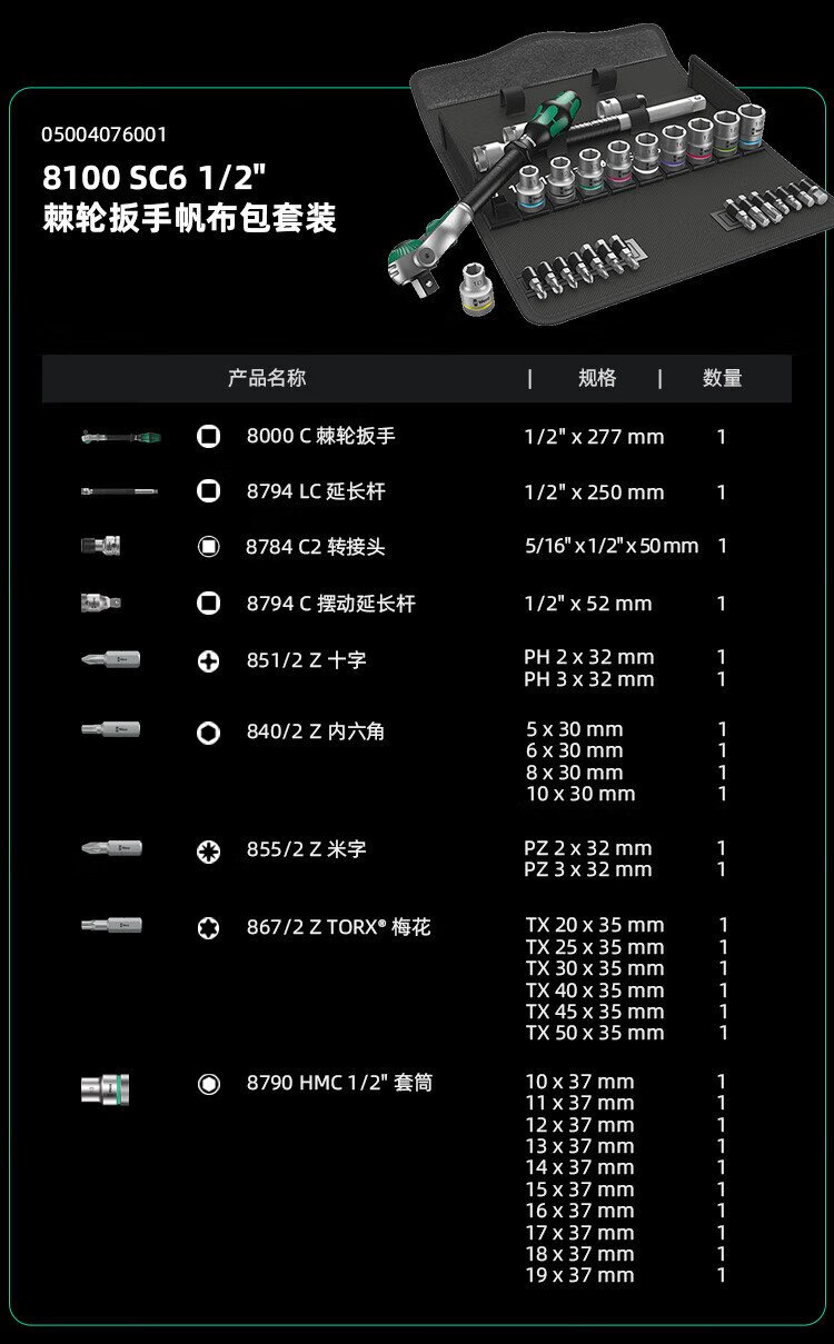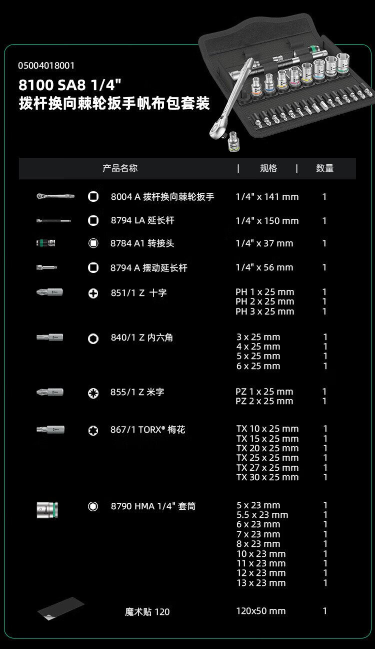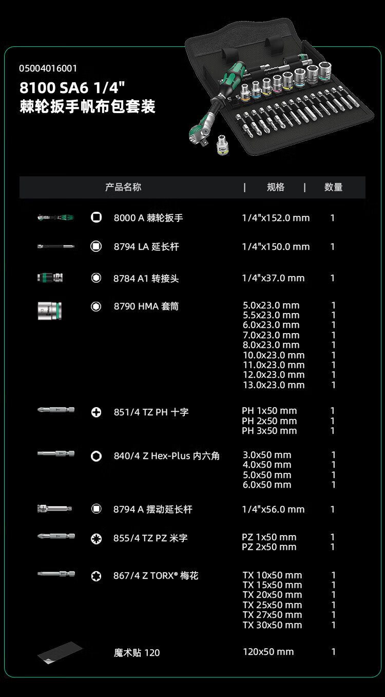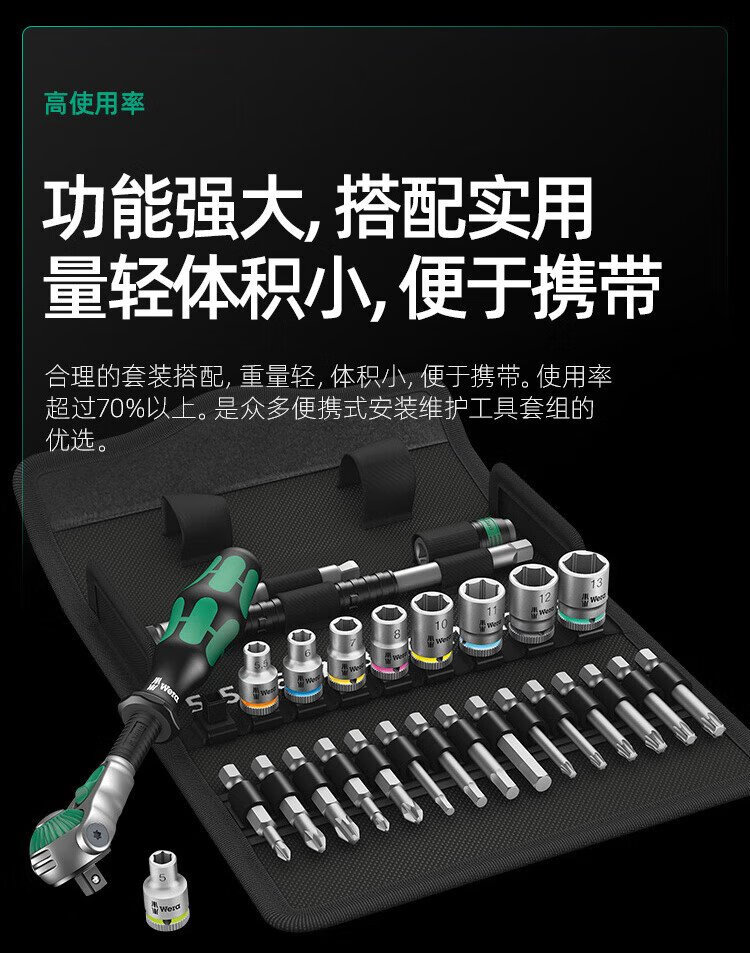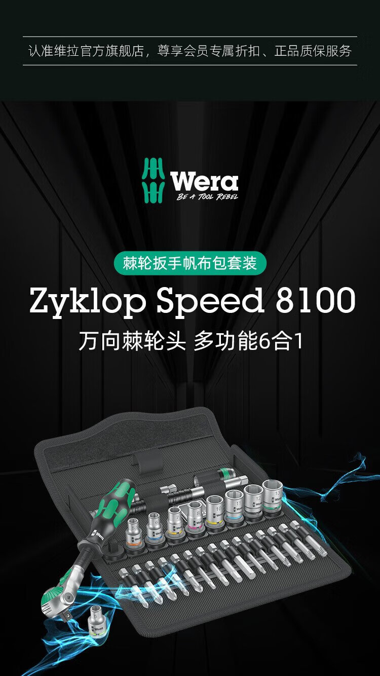 WERA imported ratchet wrench set 8100 German auto repair motorcycle medium and large flying fast wrench sleeve portable bag 1/4 small flying universal ratchet 28 pieces 8100SA6