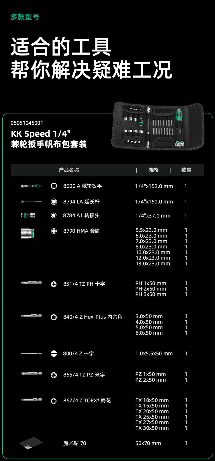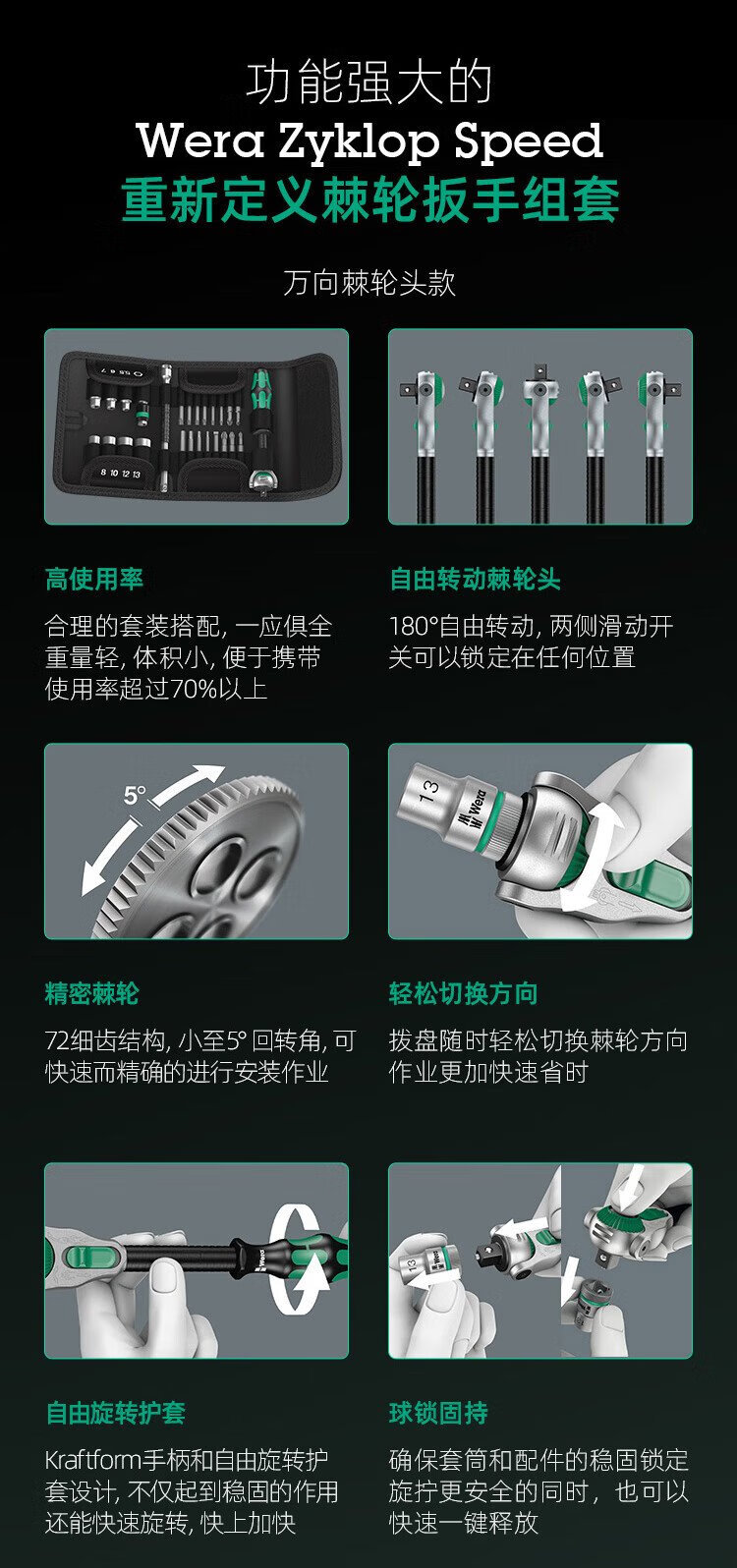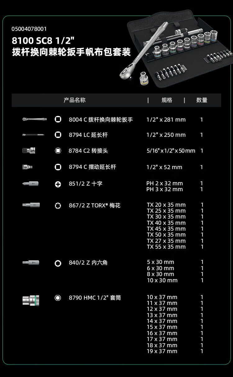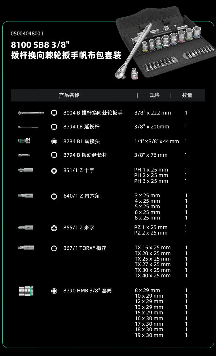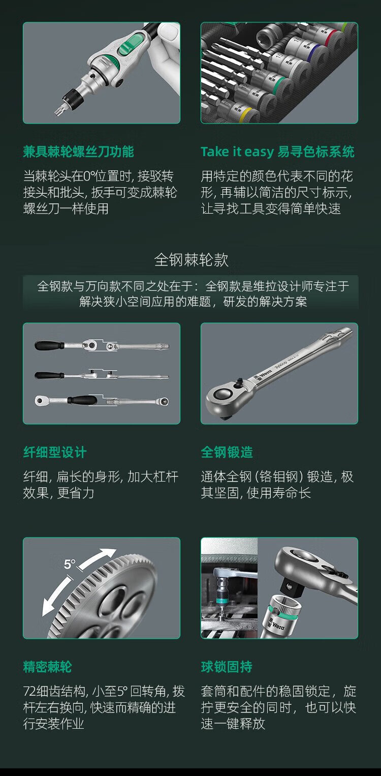 WERA imported ratchet wrench set 8100 German auto repair motorcycle medium and large flying fast wrench sleeve portable bag 1/4 small flying universal ratchet 28 pieces 8100SA6